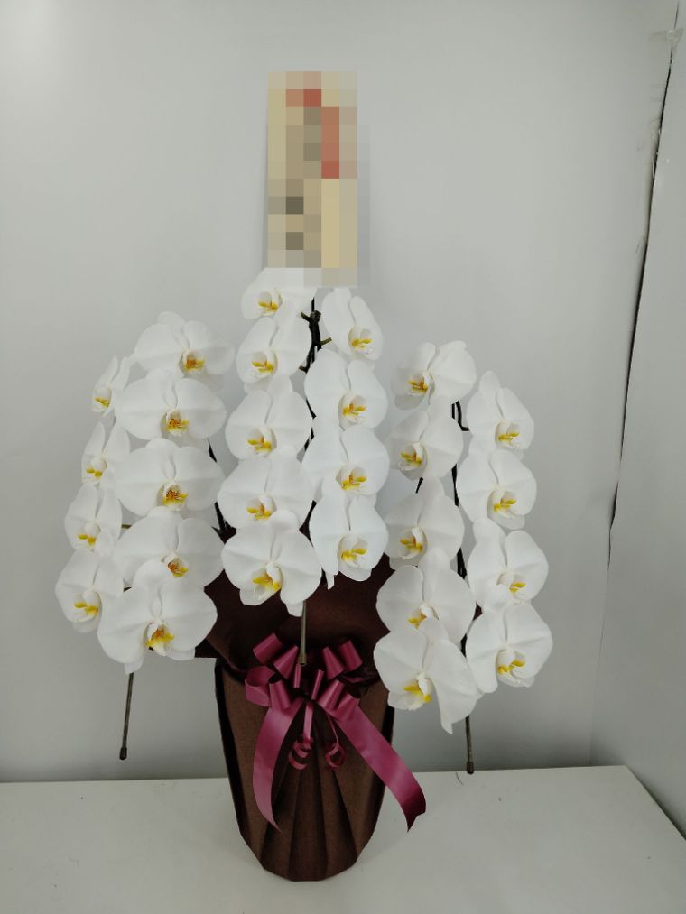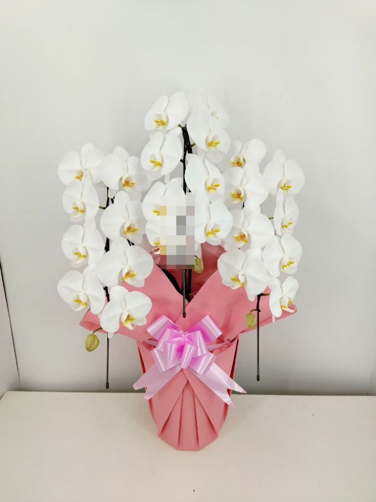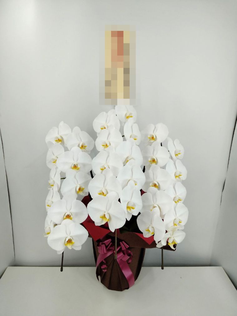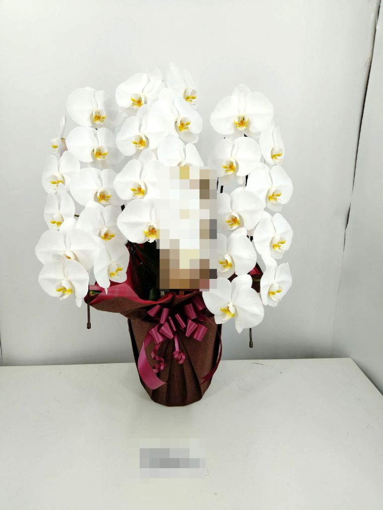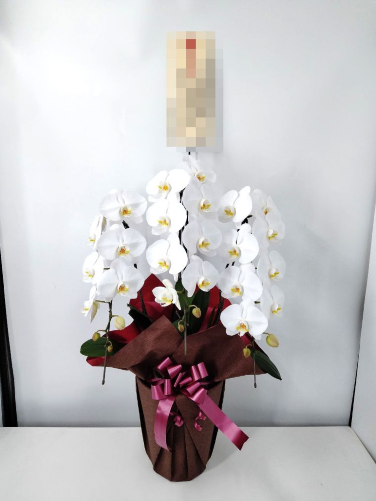 胡蝶蘭の実際にお届けした写真です。花秘書では発送前に写真をメールで送信致しますので安心して大切な顧客や取引様へのギフトにご利用頂けます。
