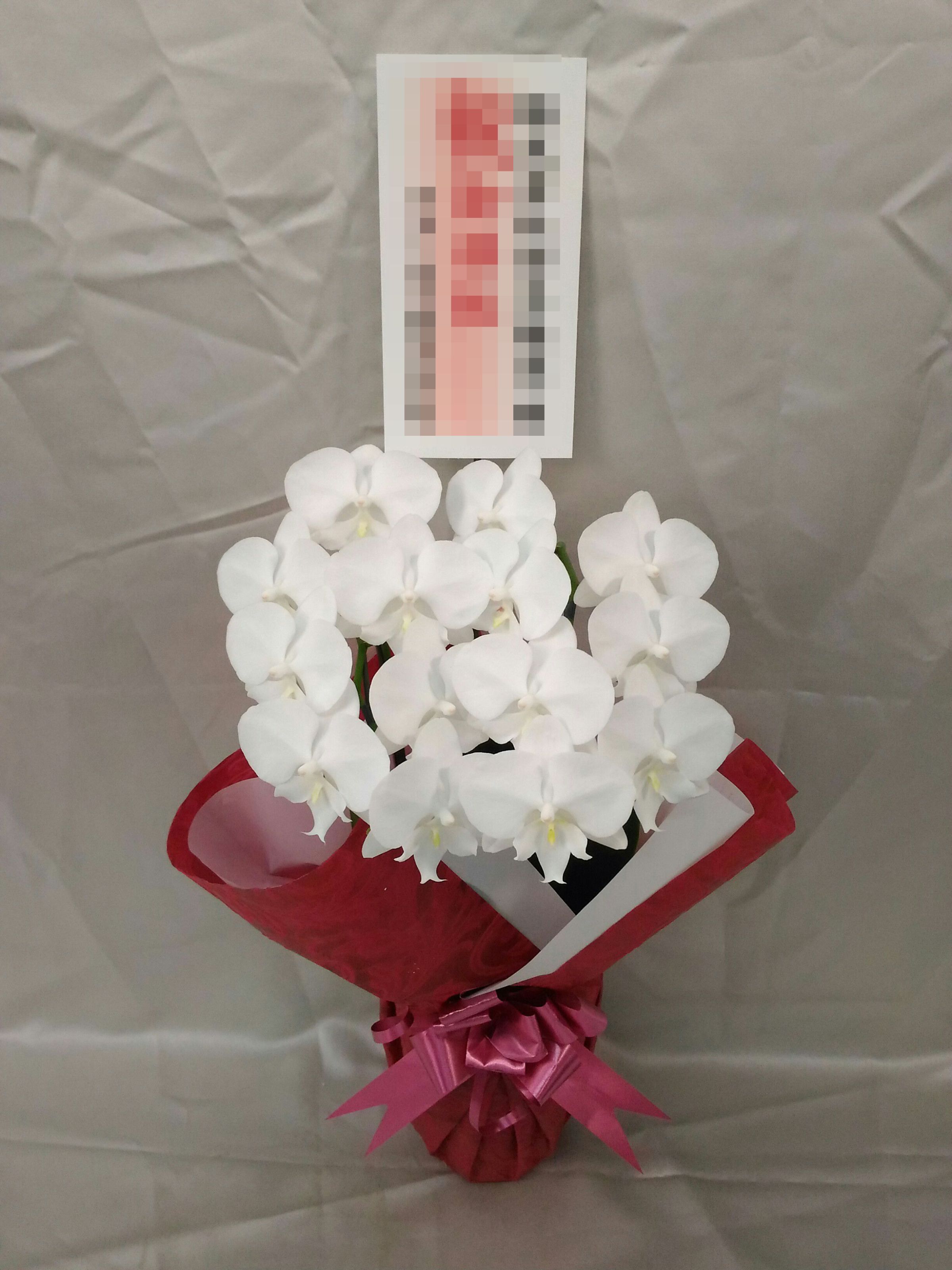 胡蝶蘭の実際にお届けした写真です。花秘書では発送前に写真をメールで送信致しますので安心して大切な顧客や取引様へのギフトにご利用頂けます。