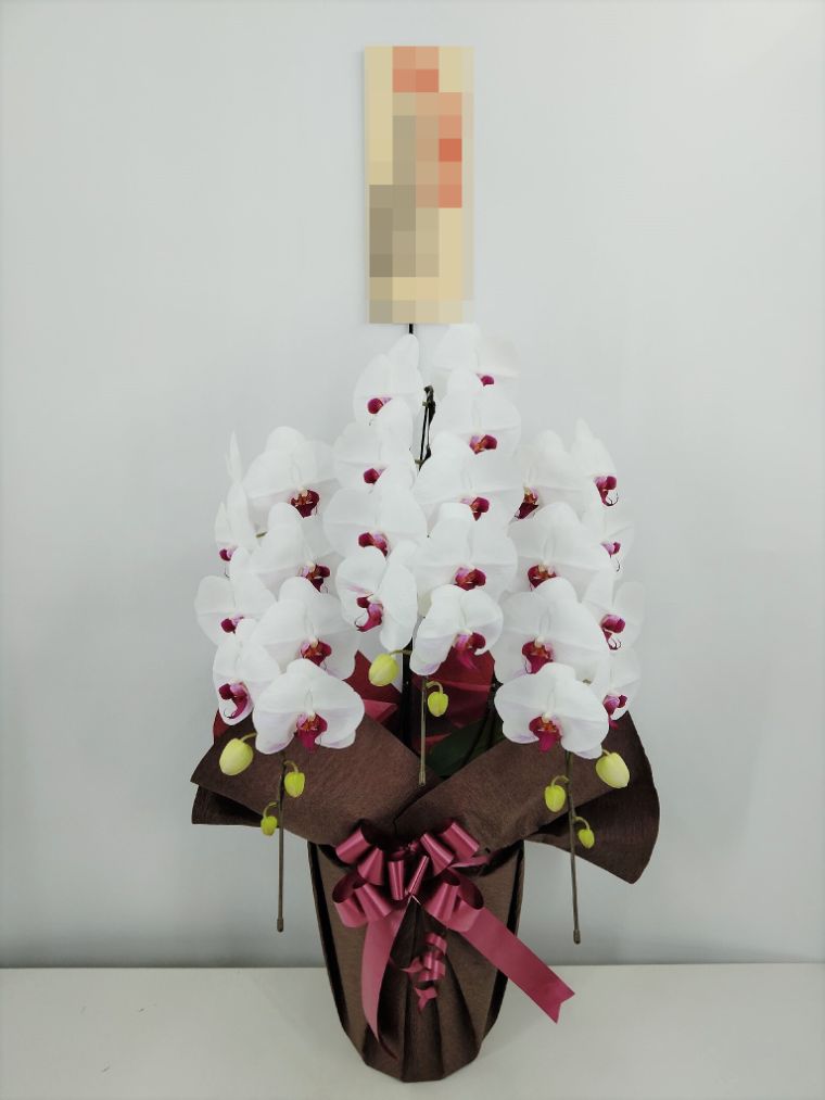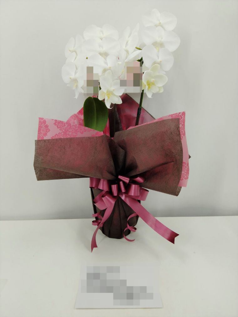 胡蝶蘭の実際にお届けした写真です。花秘書では発送前に写真をメールで送信致しますので安心して大切な顧客や取引様へのギフトにご利用頂けます。