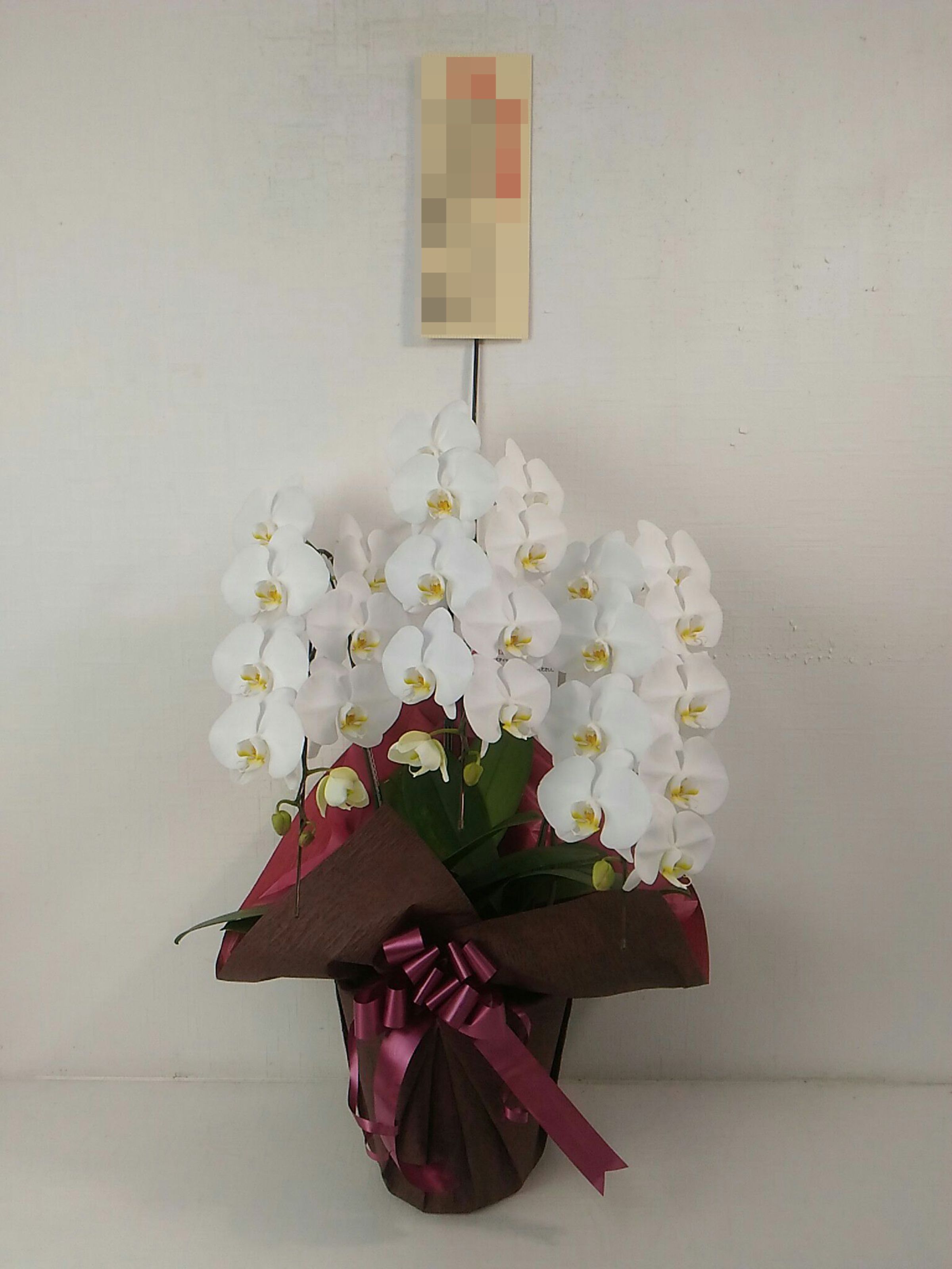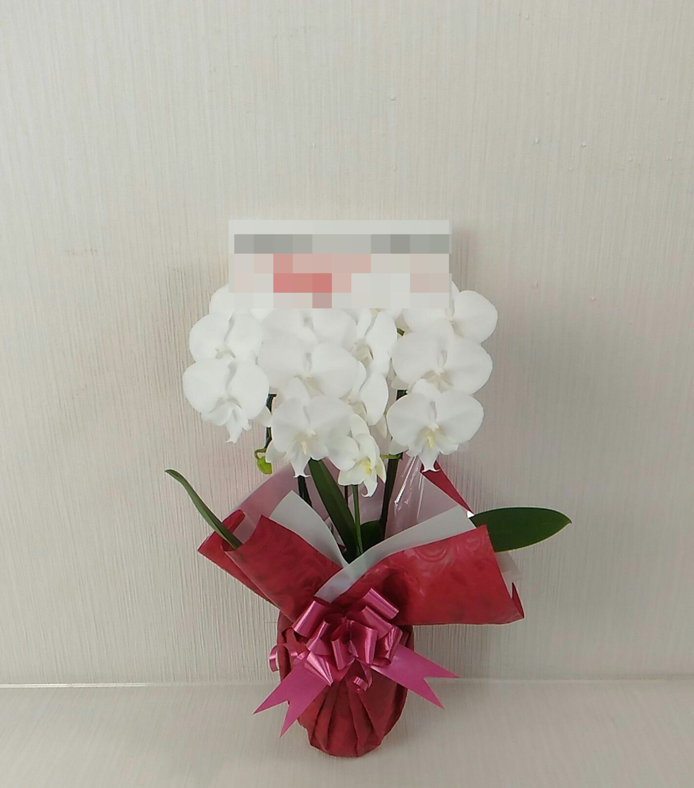 胡蝶蘭の実際にお届けした写真です。花秘書では発送前に写真をメールで送信致しますので安心して大切な顧客や取引様へのギフトにご利用頂けます。