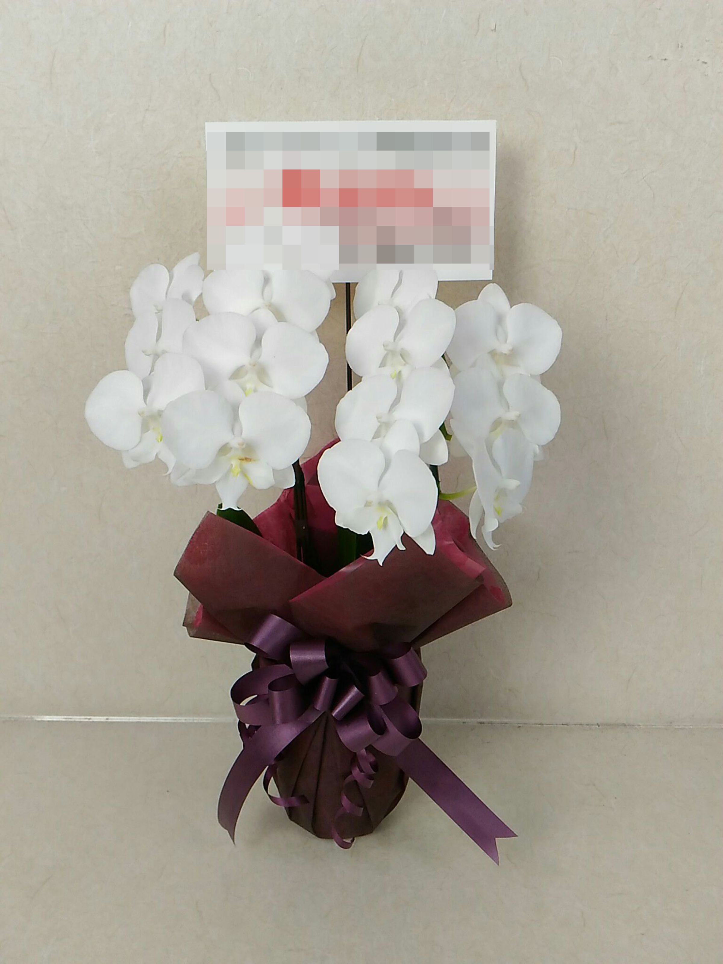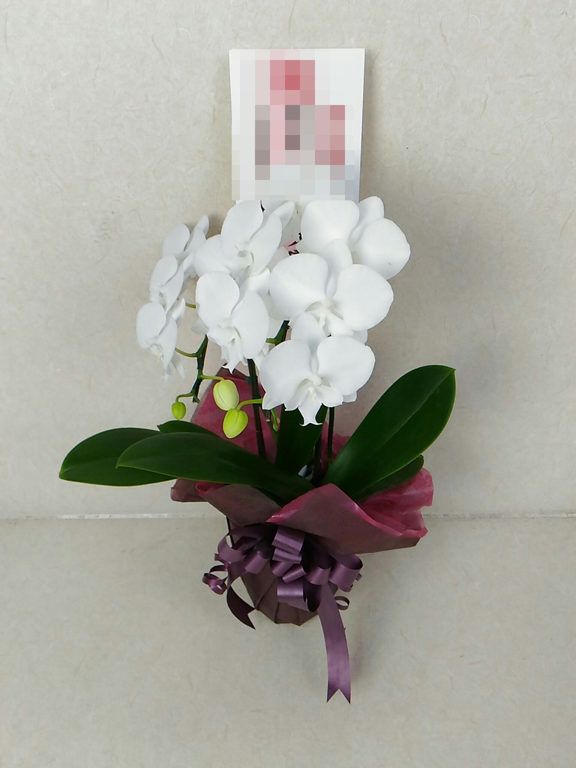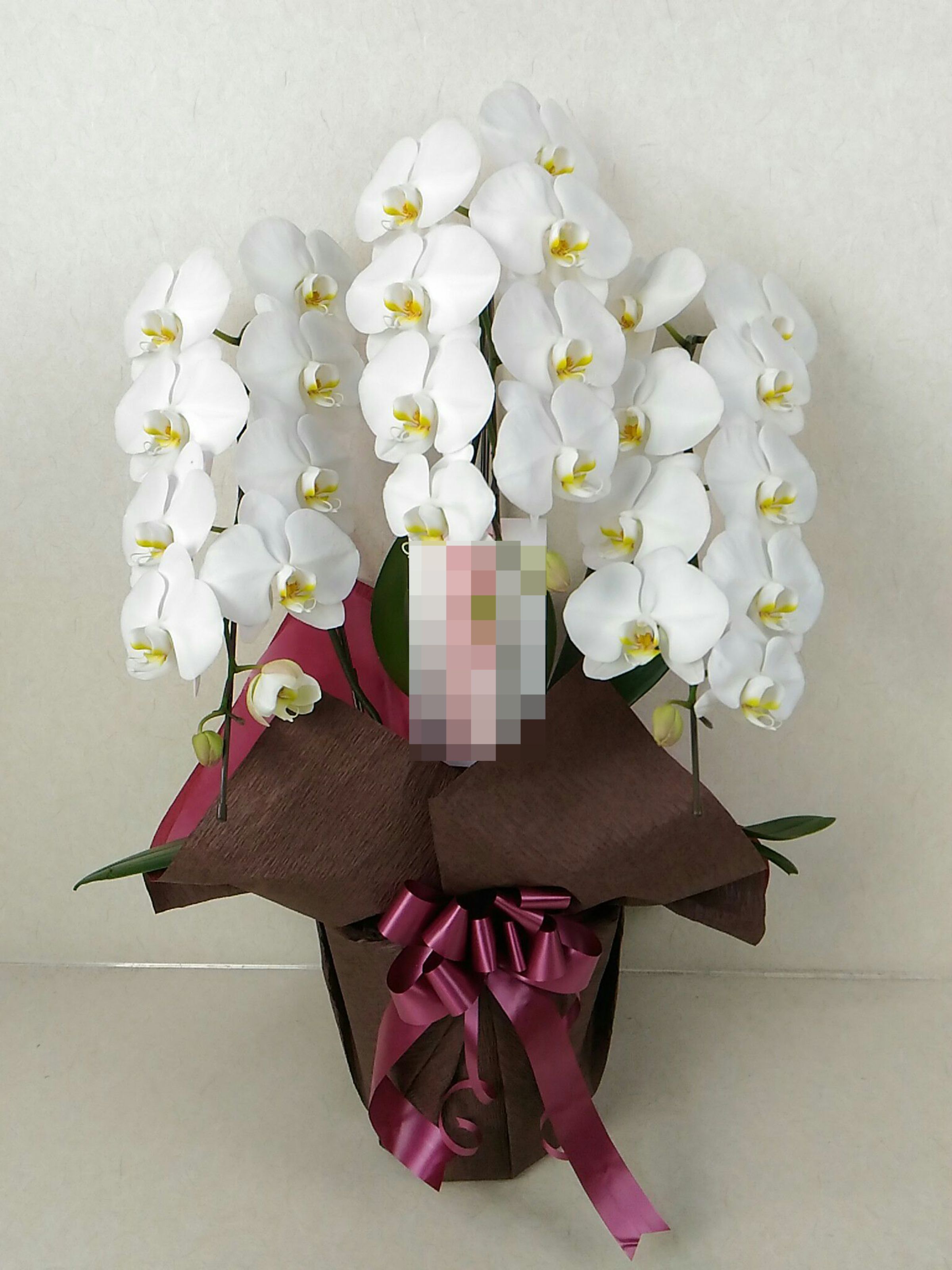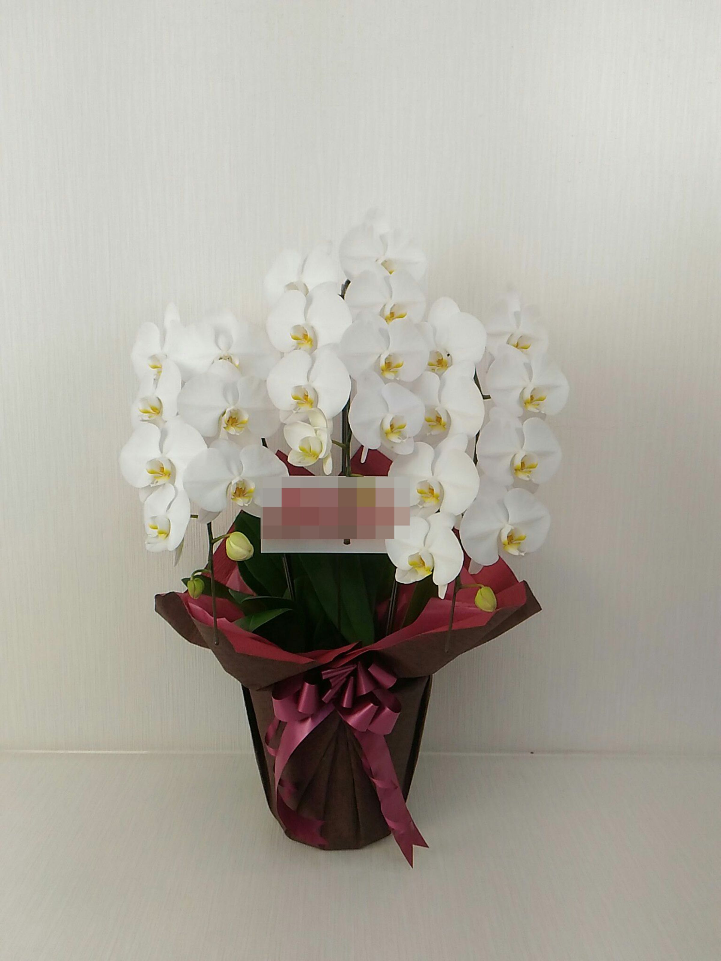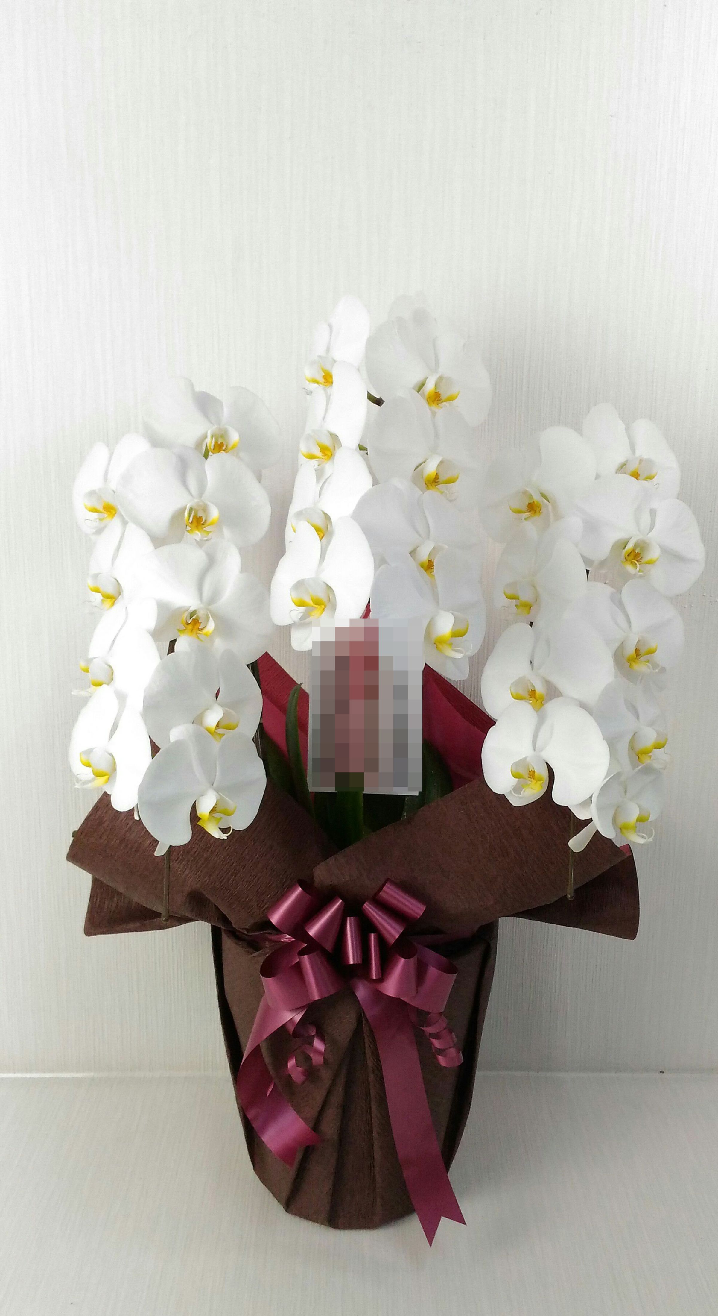 胡蝶蘭の実際にお届けした写真です。花秘書では発送前に写真をメールで送信致しますので安心して大切な顧客や取引様へのギフトにご利用頂けます。