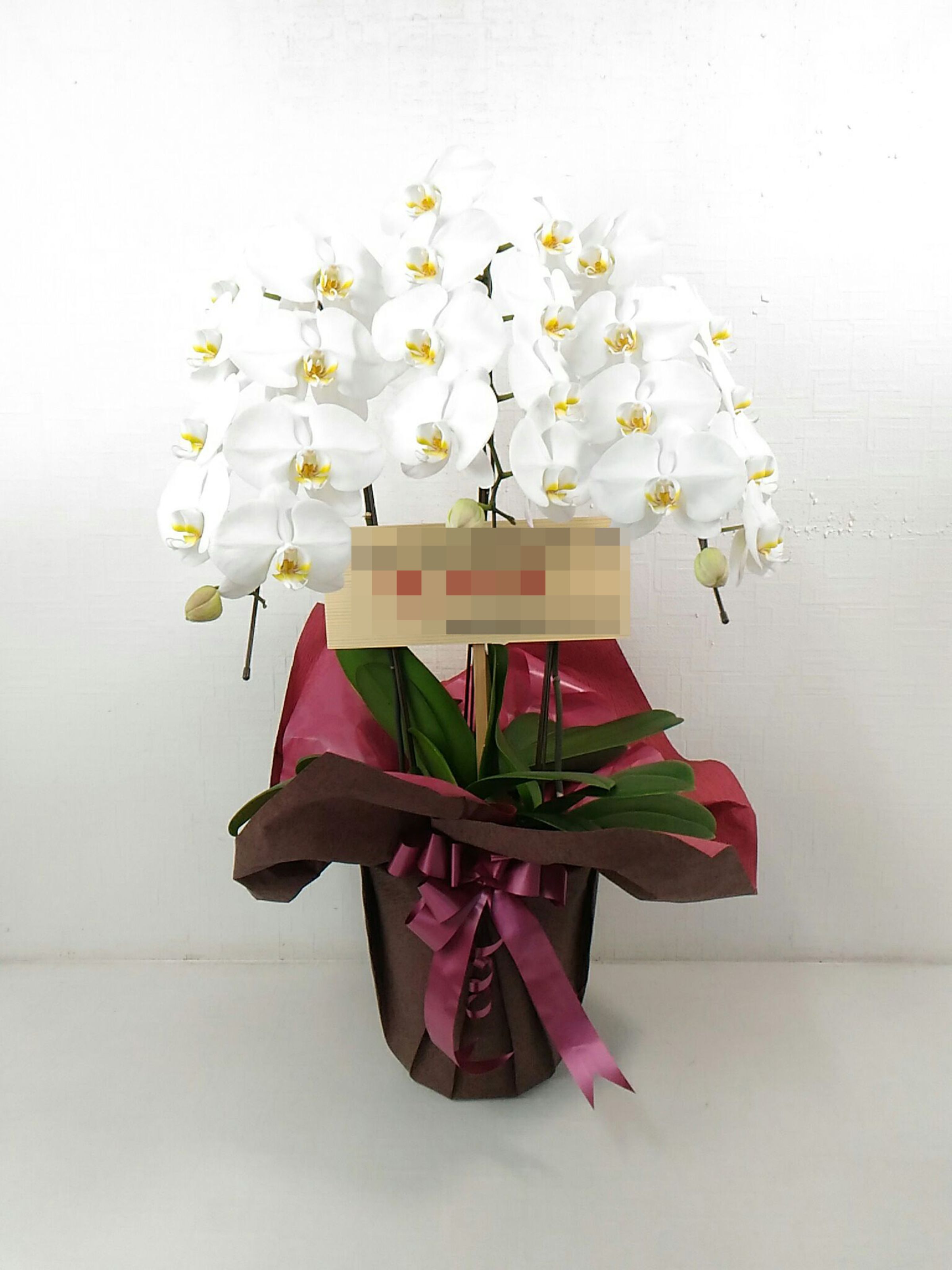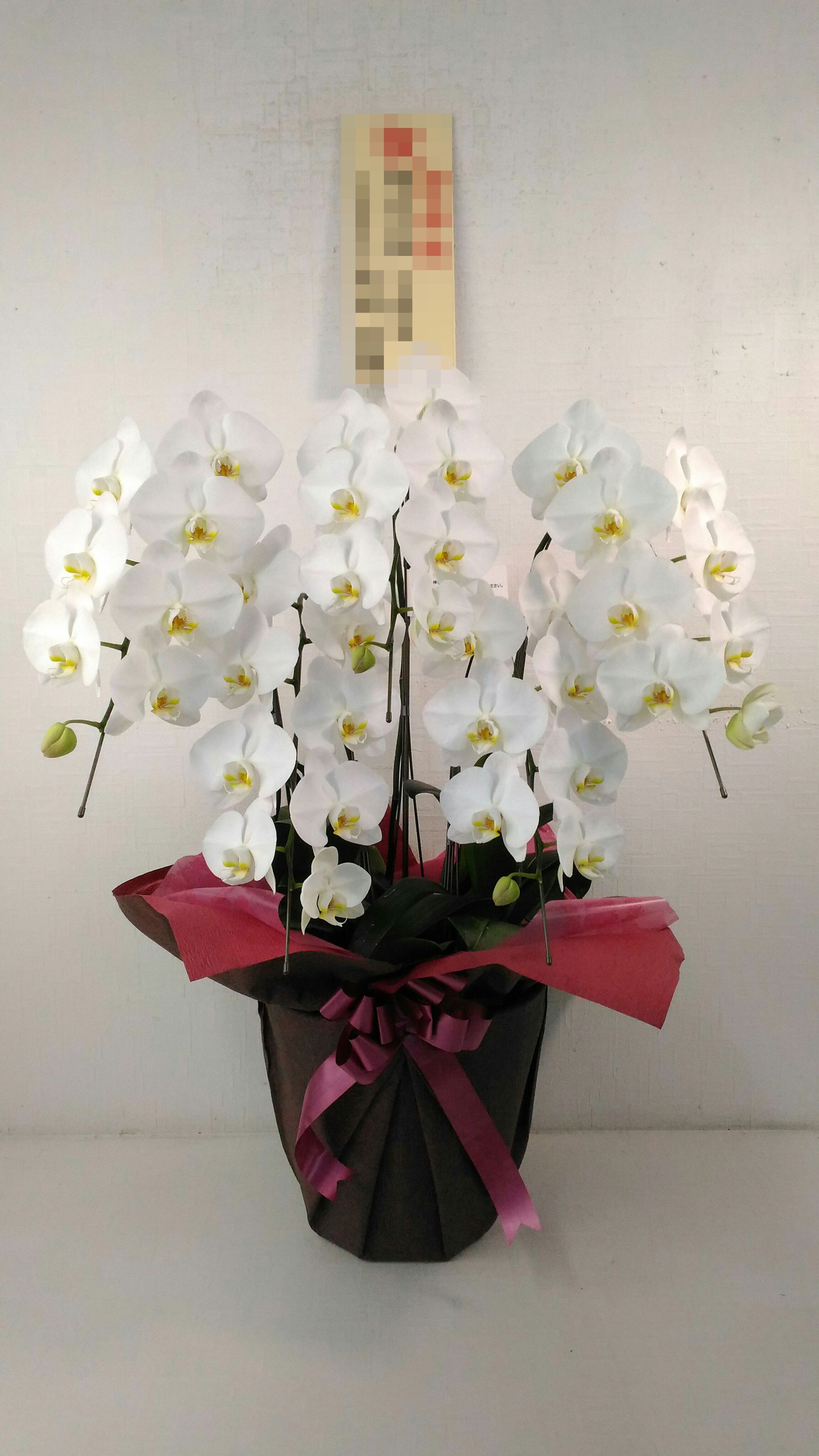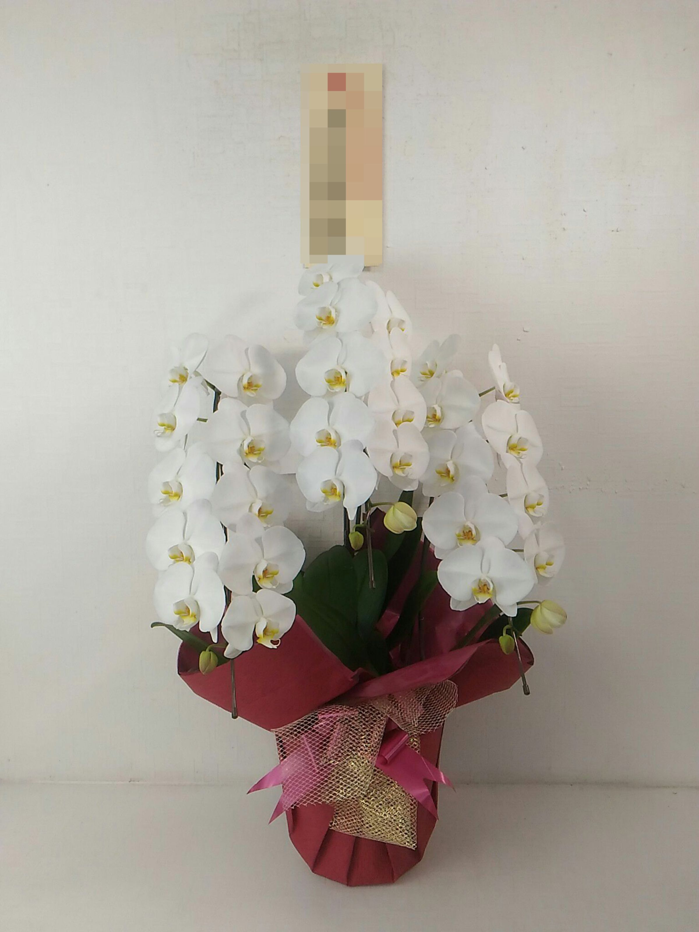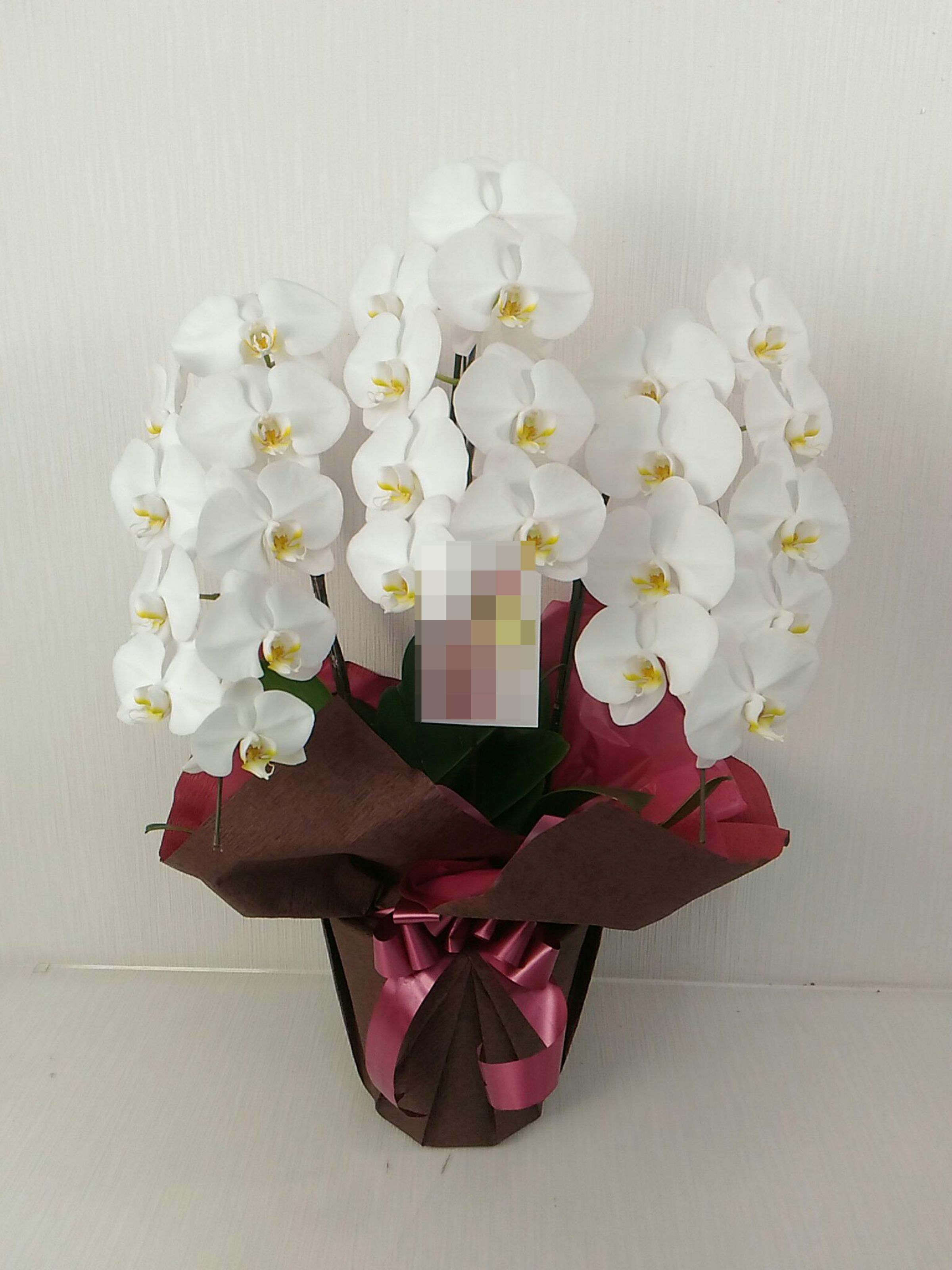胡蝶蘭の実際にお届けした写真です。花秘書では発送前に写真をメールで送信致しますので安心して大切な顧客や取引様へのギフトにご利用頂けます。