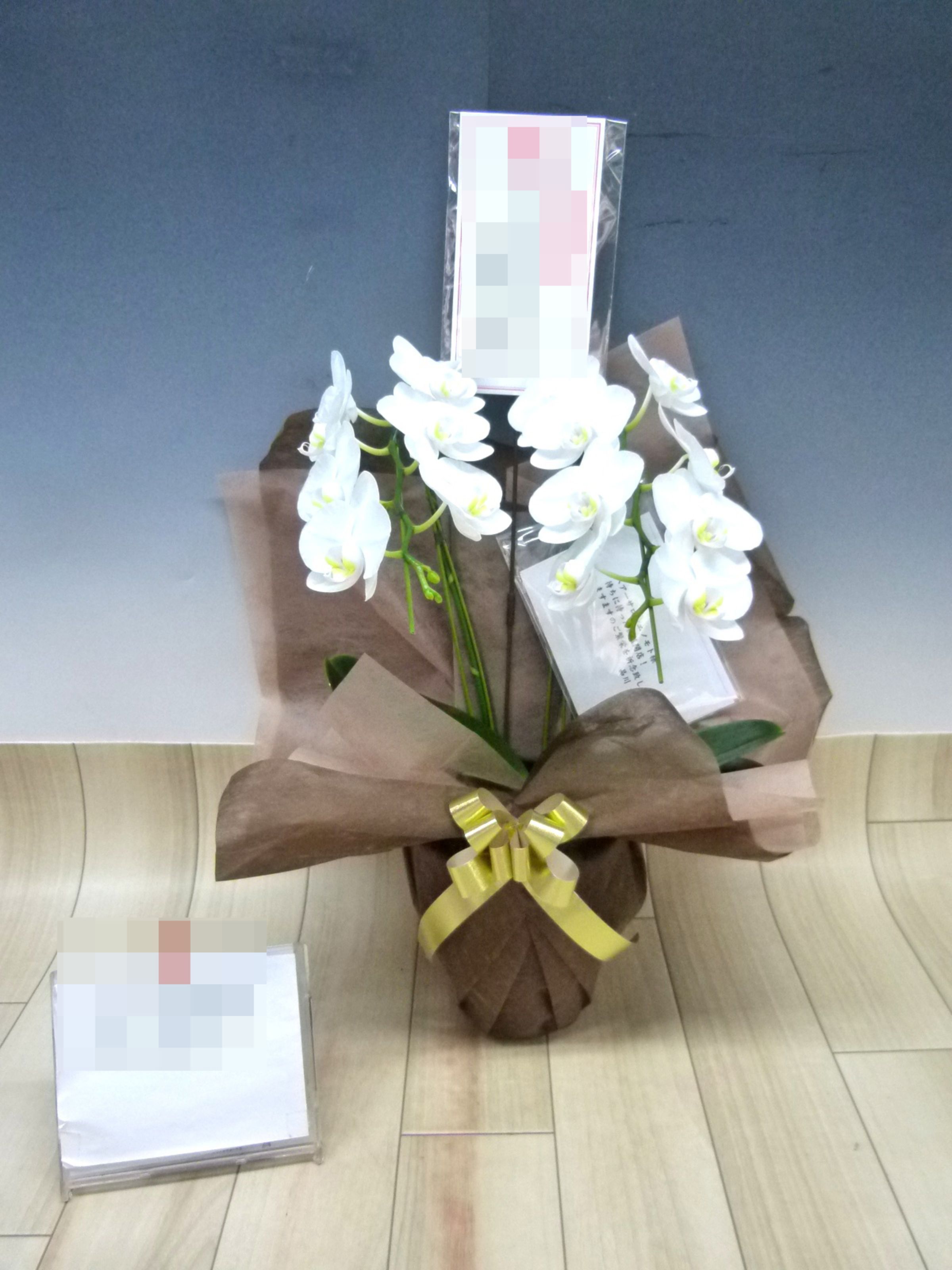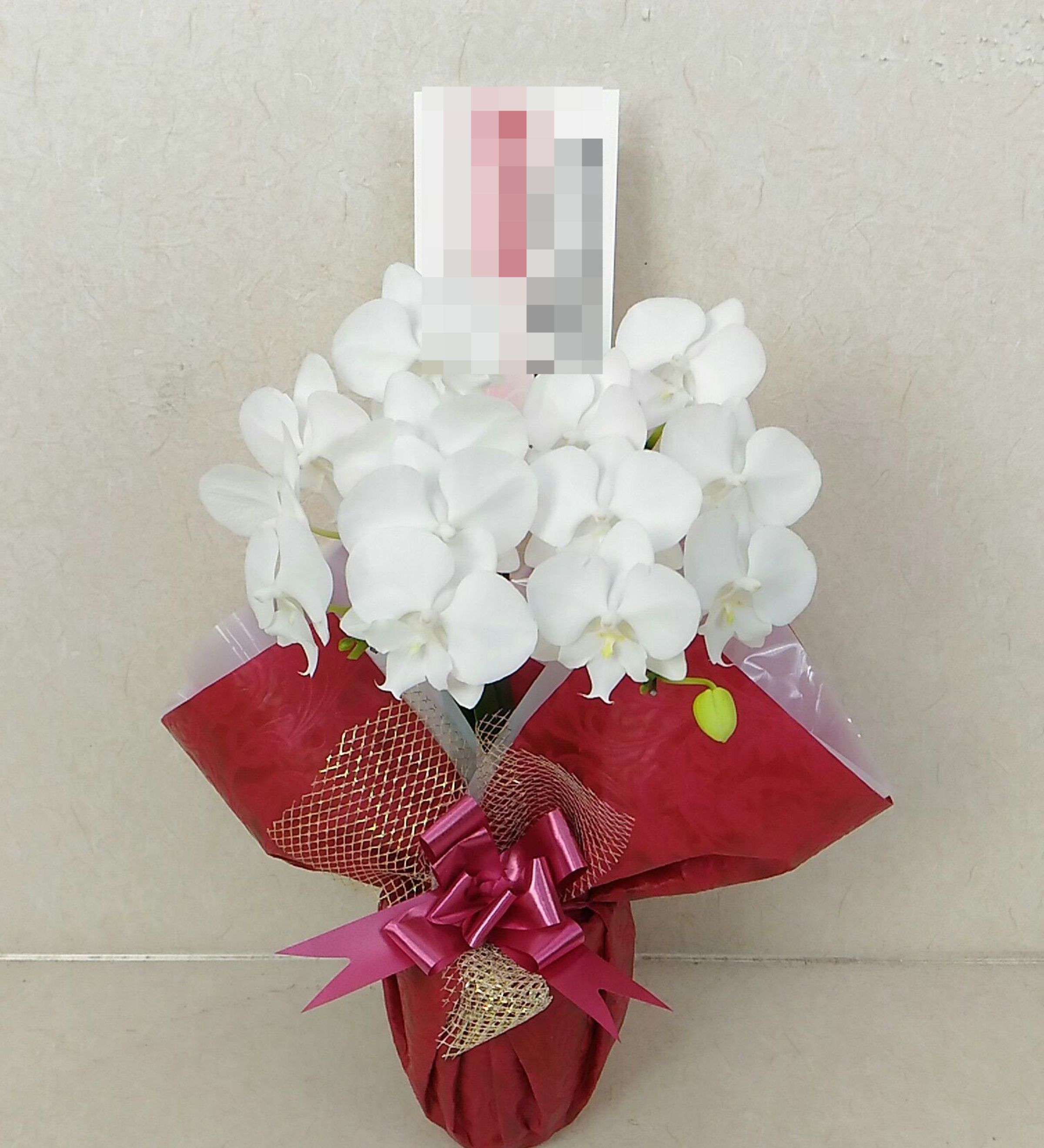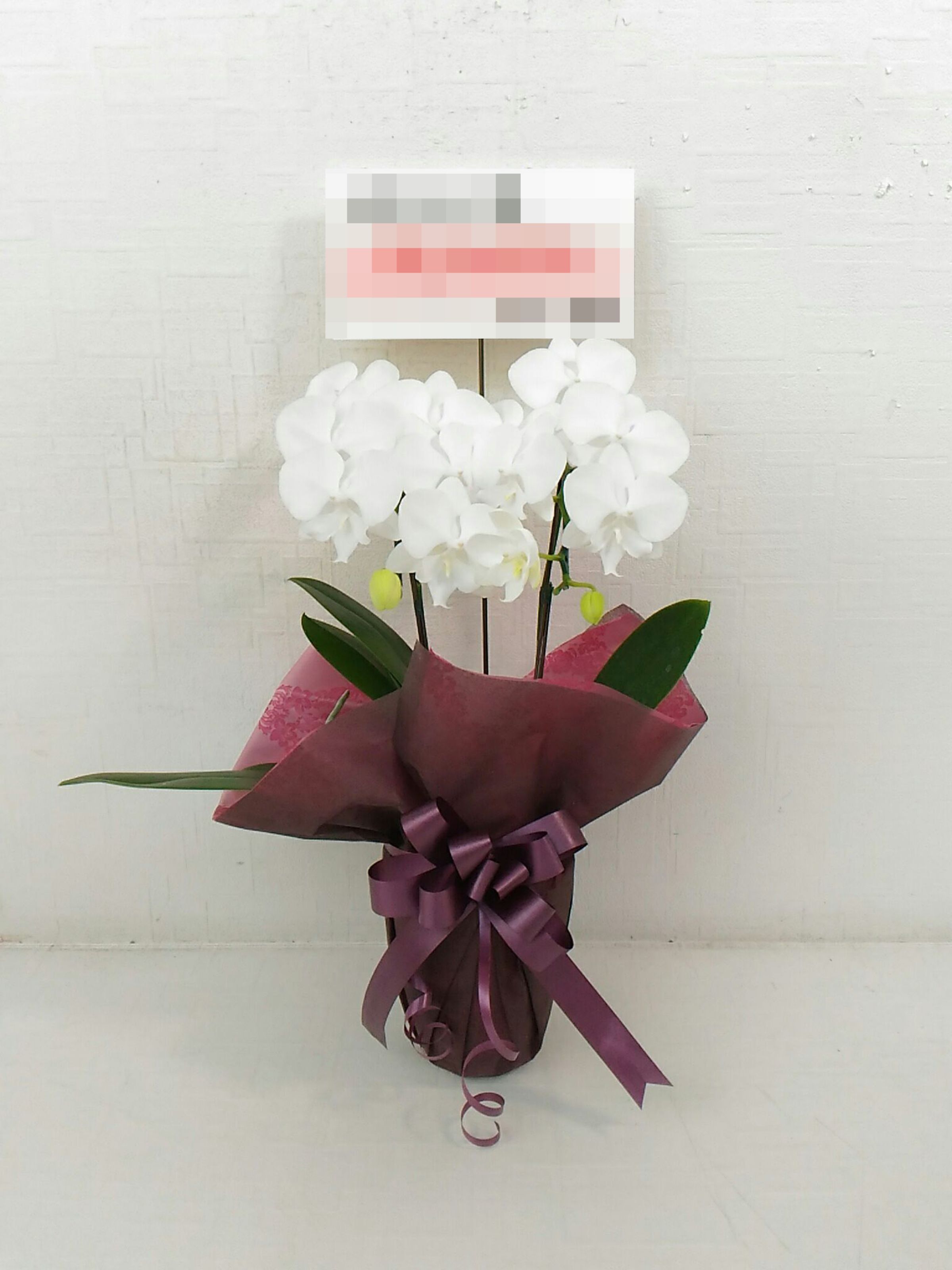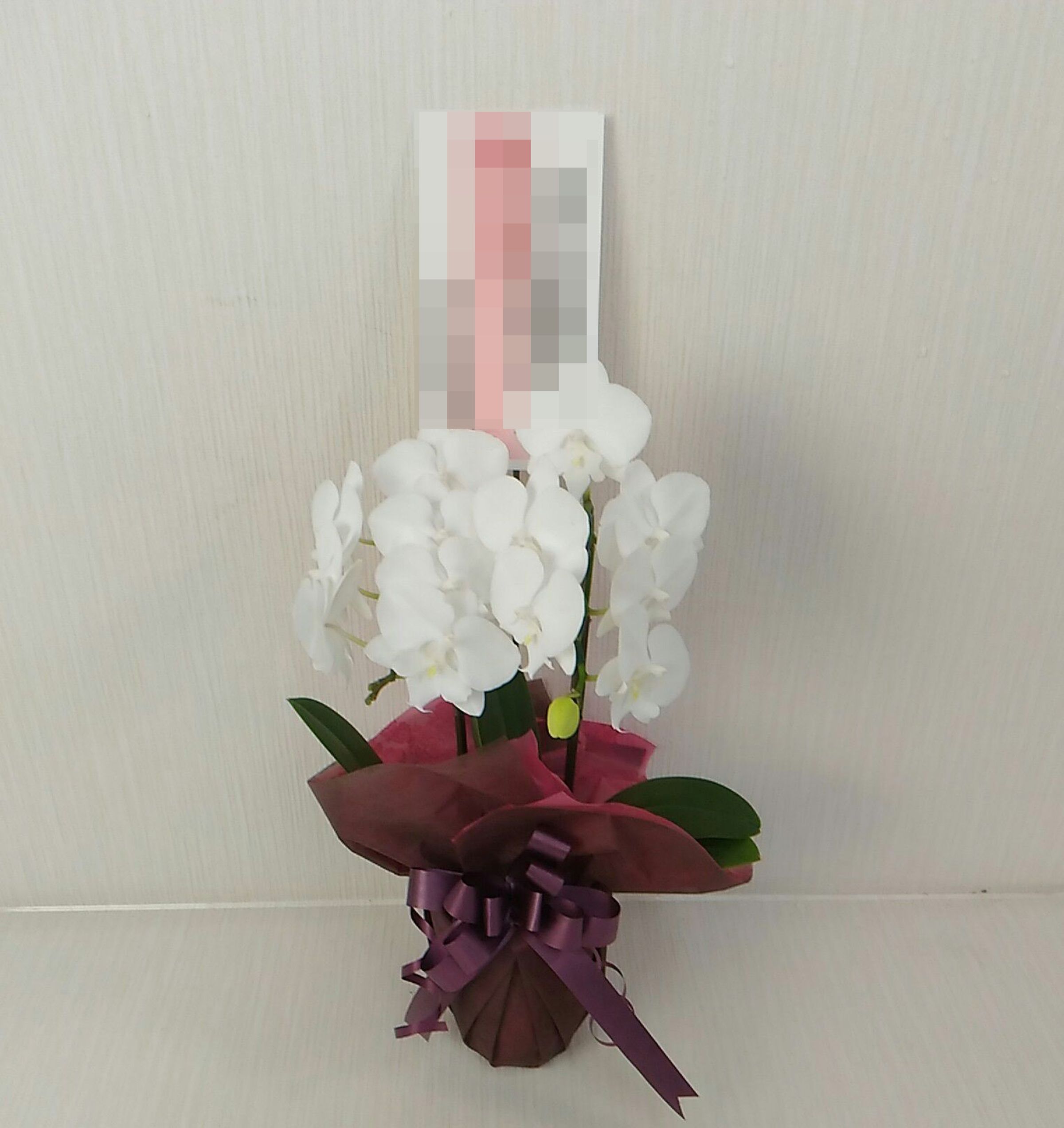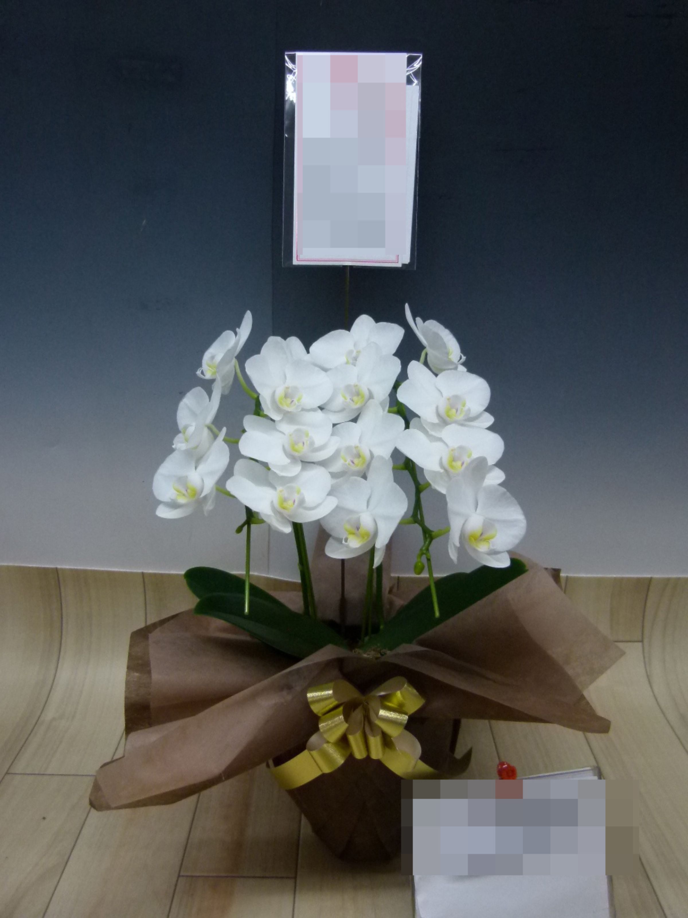 胡蝶蘭の実際にお届けした写真です。花秘書では発送前に写真をメールで送信致しますので安心して大切な顧客や取引様へのギフトにご利用頂けます。