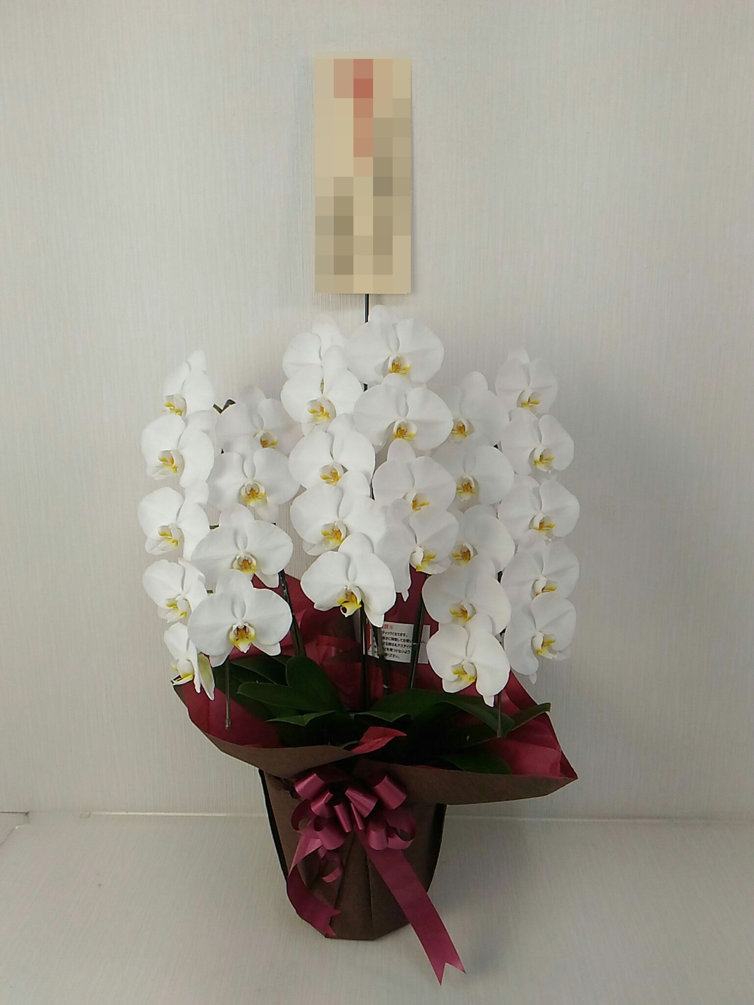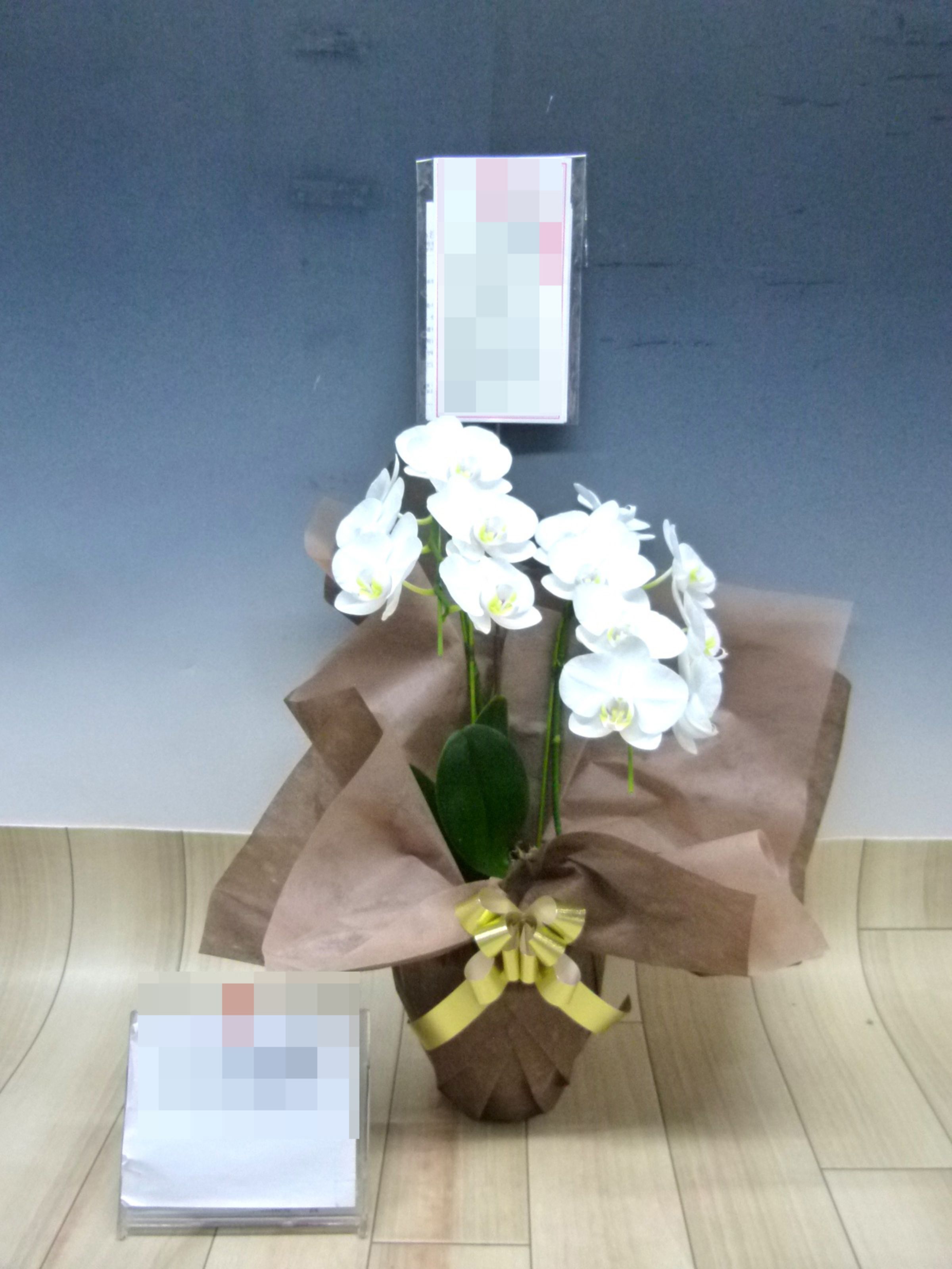 胡蝶蘭の実際にお届けした写真です。花秘書では発送前に写真をメールで送信致しますので安心して大切な顧客や取引様へのギフトにご利用頂けます。