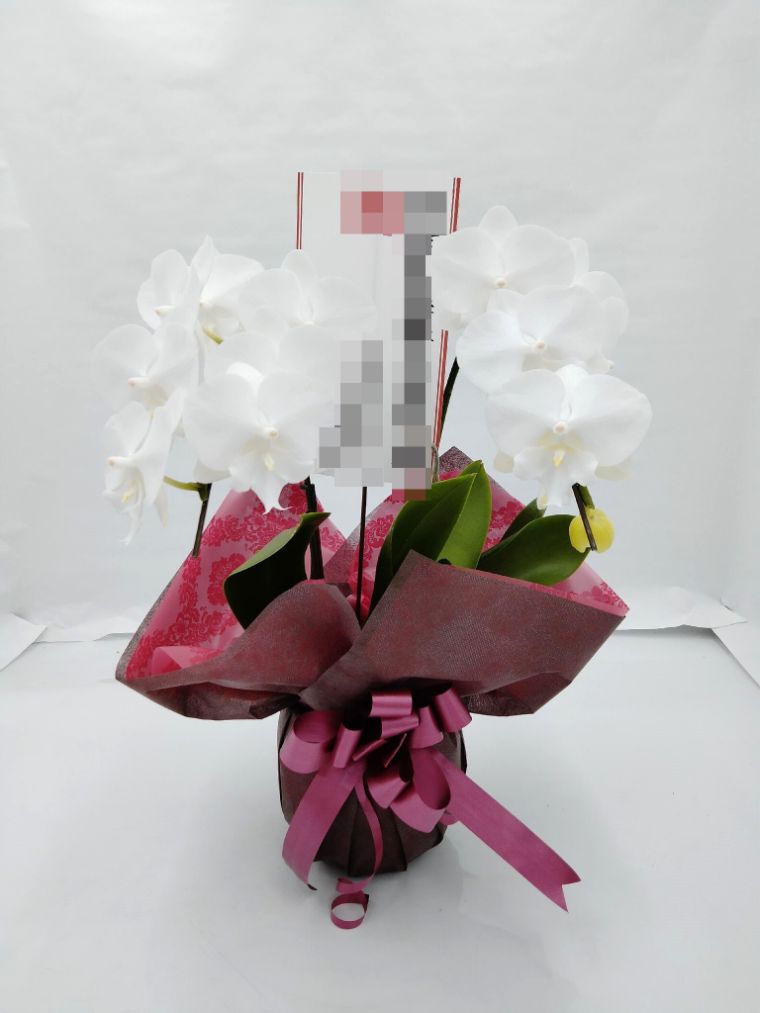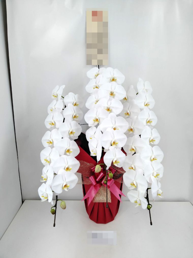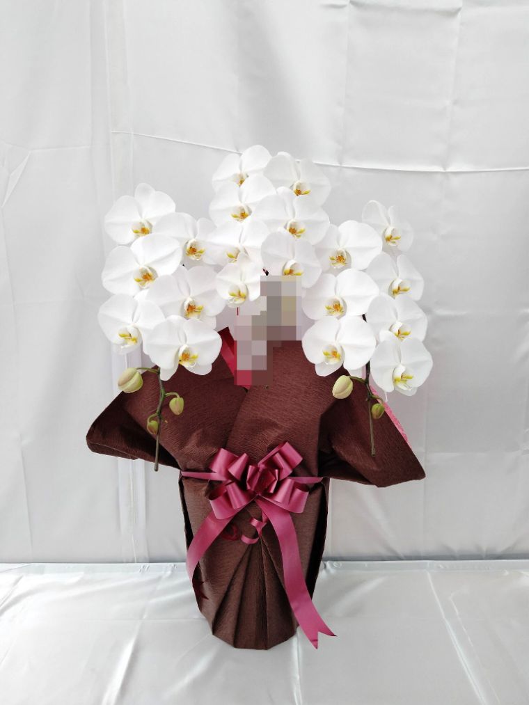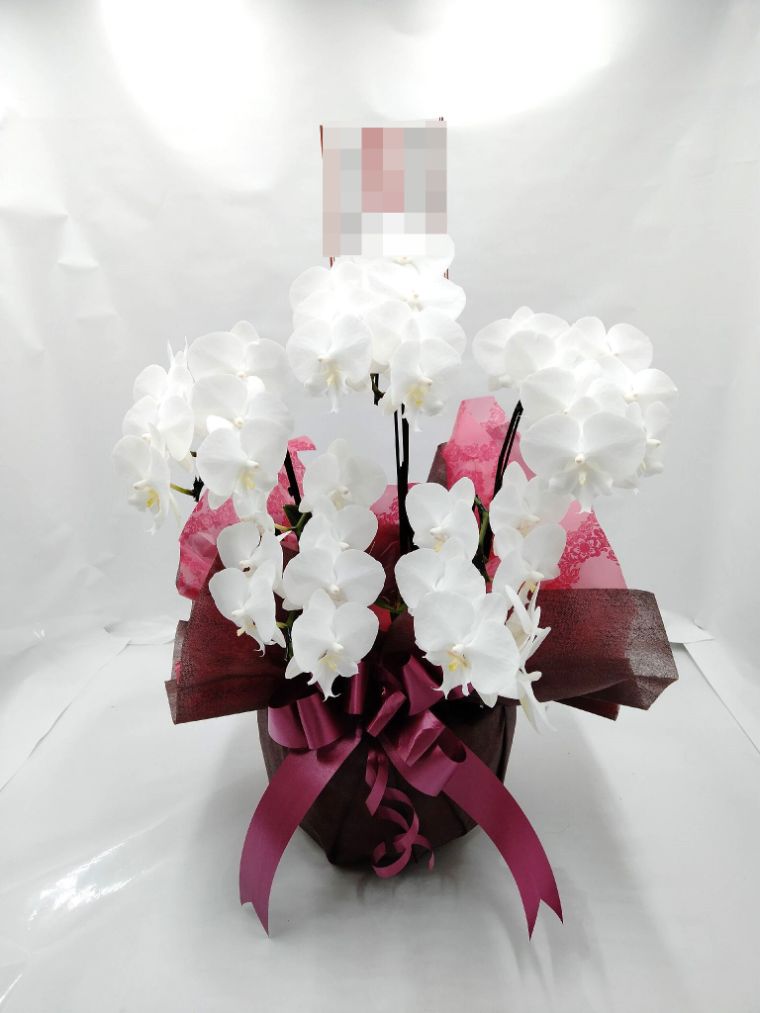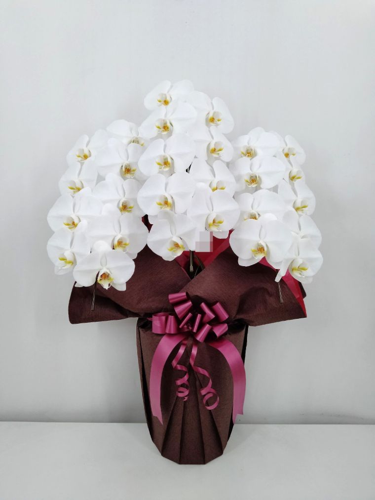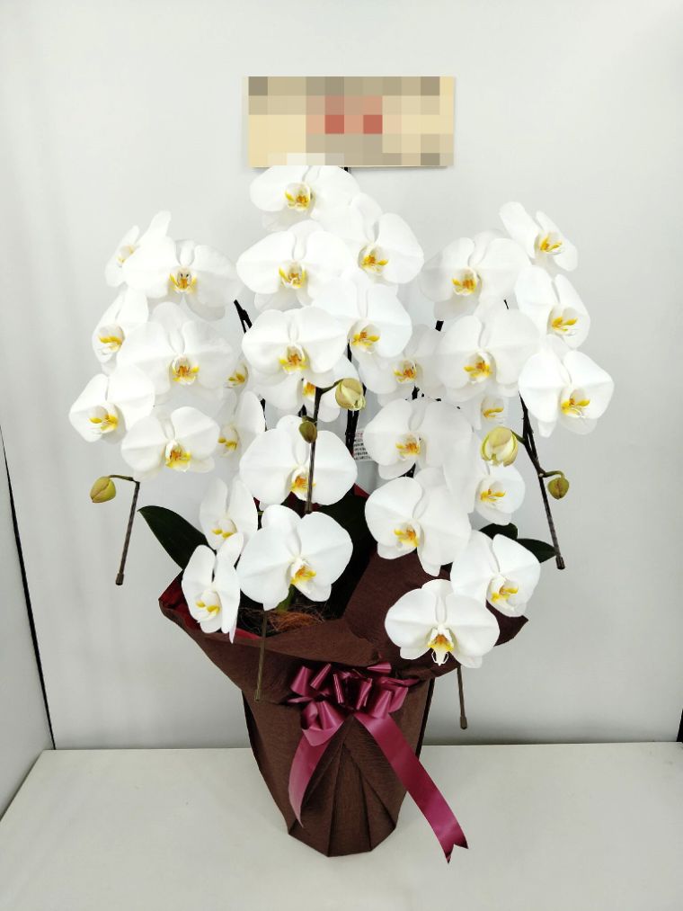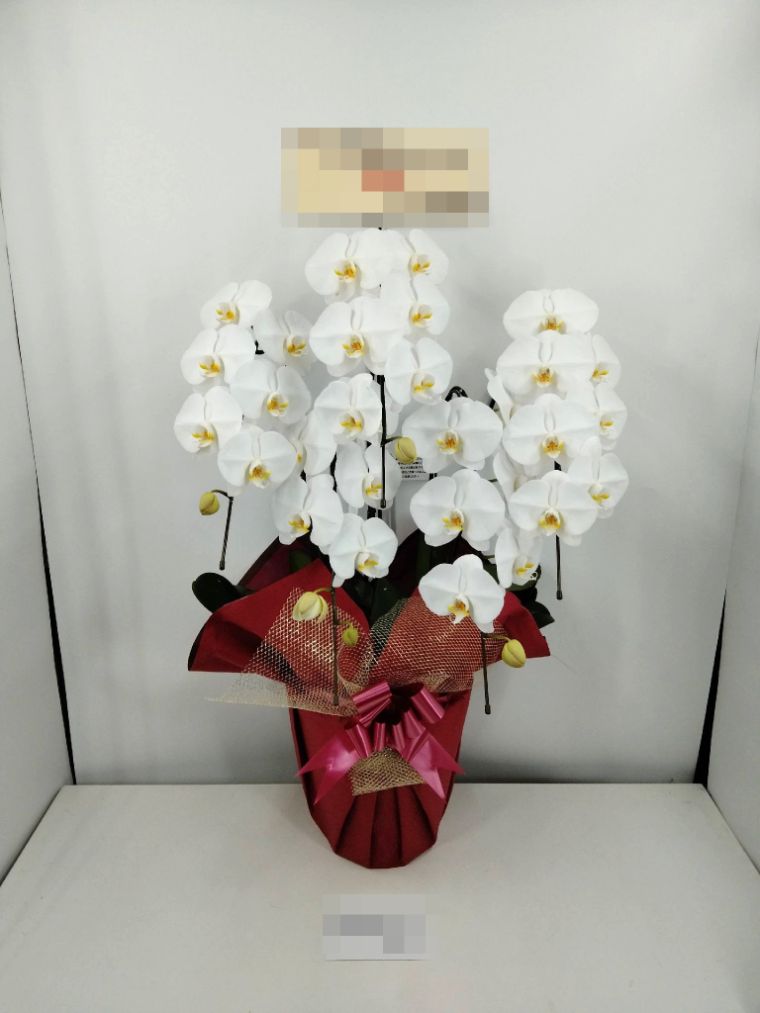 胡蝶蘭の実際にお届けした写真です。花秘書では発送前に写真をメールで送信致しますので安心して大切な顧客や取引様へのギフトにご利用頂けます。