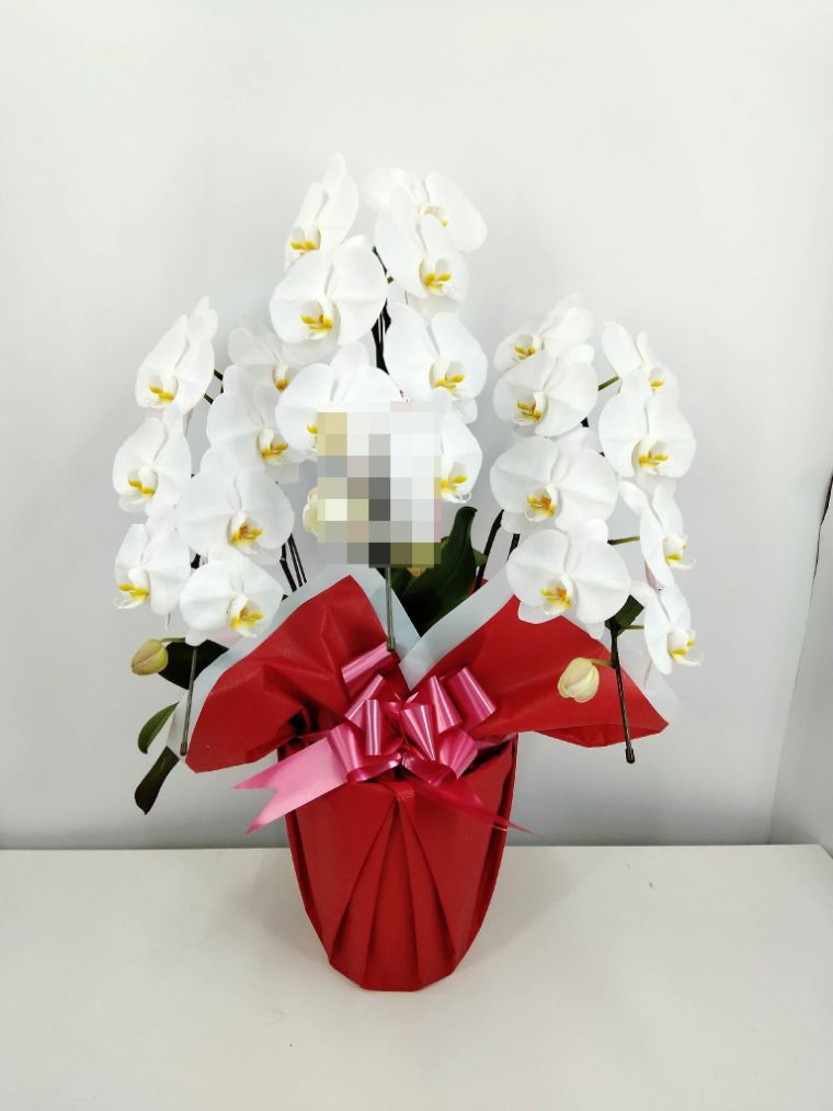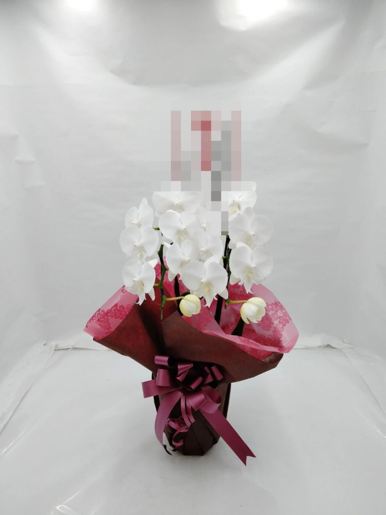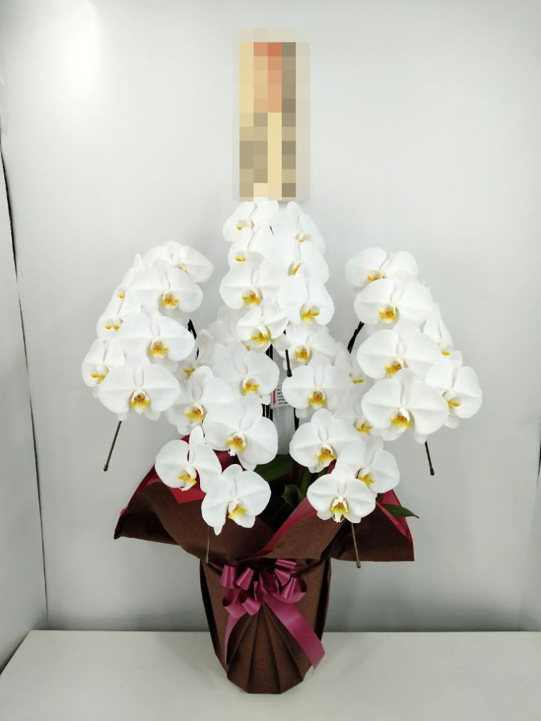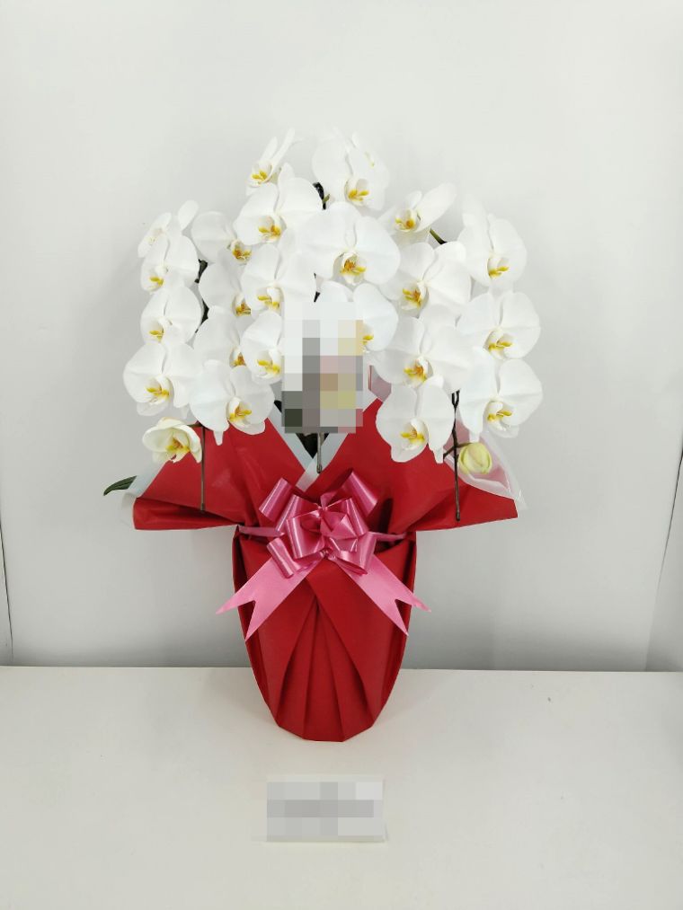 胡蝶蘭の実際にお届けした写真です。花秘書では発送前に写真をメールで送信致しますので安心して大切な顧客や取引様へのギフトにご利用頂けます。