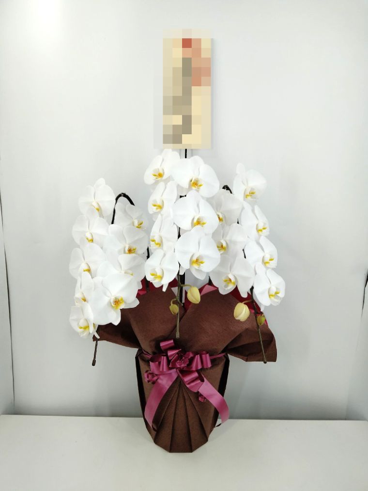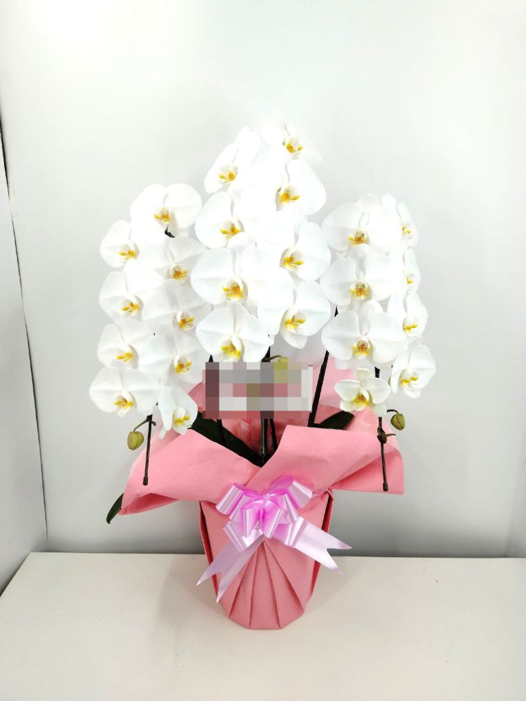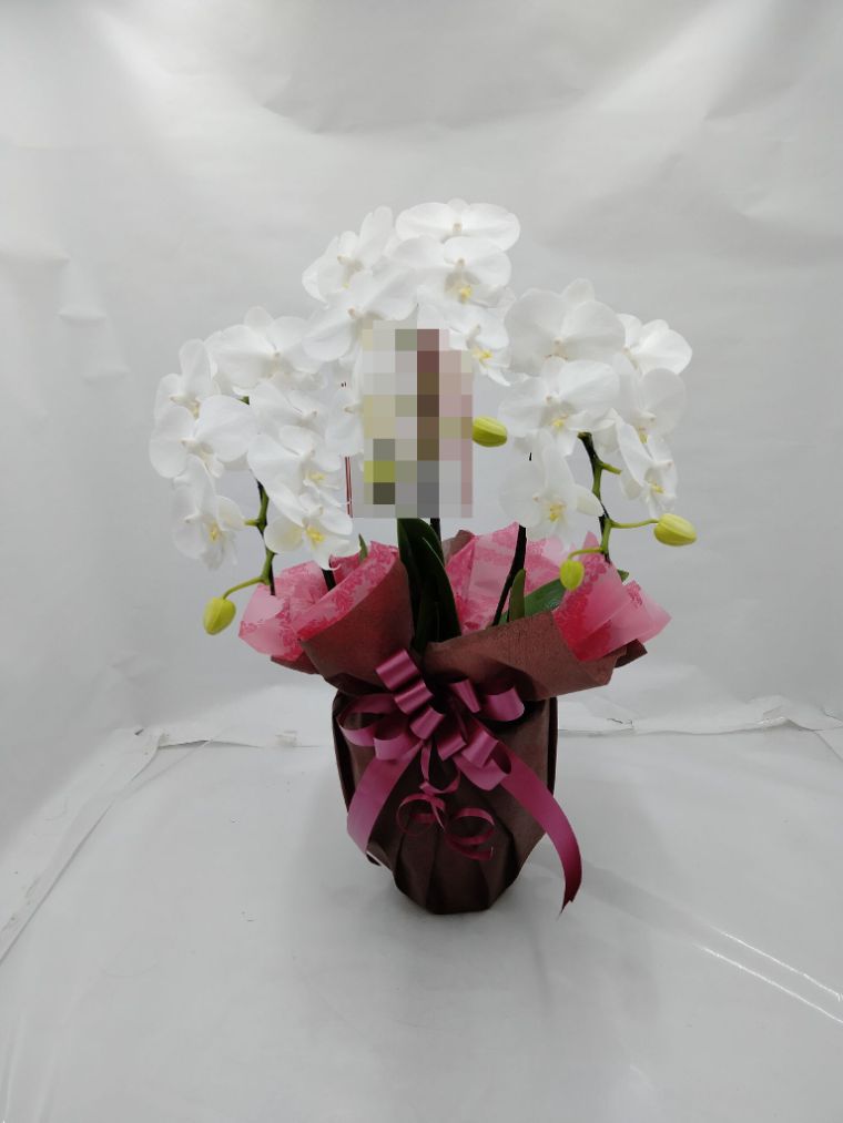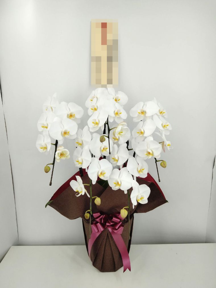 胡蝶蘭の実際にお届けした写真です。花秘書では発送前に写真をメールで送信致しますので安心して大切な顧客や取引様へのギフトにご利用頂けます。
