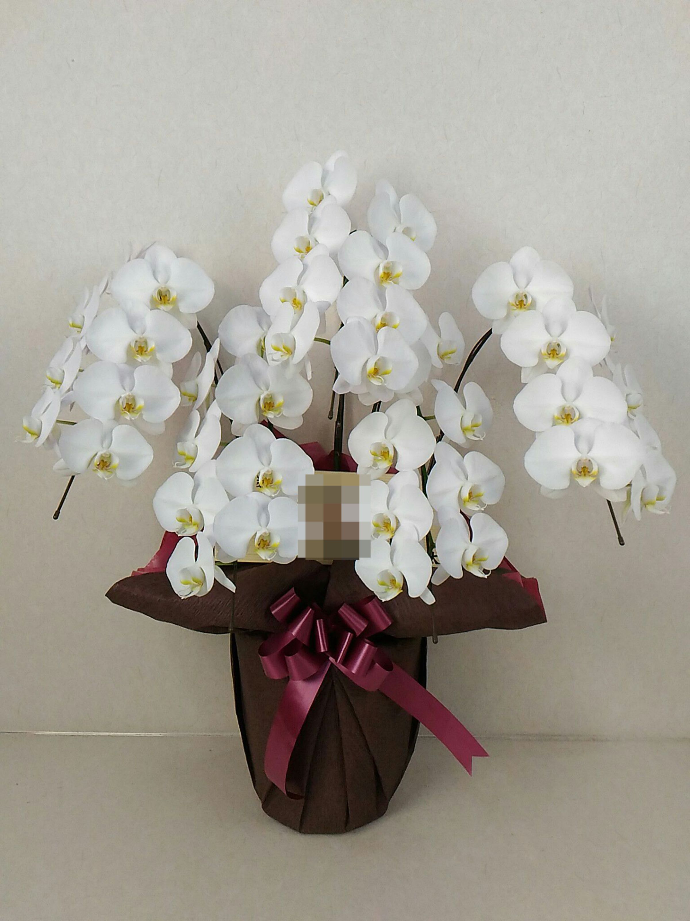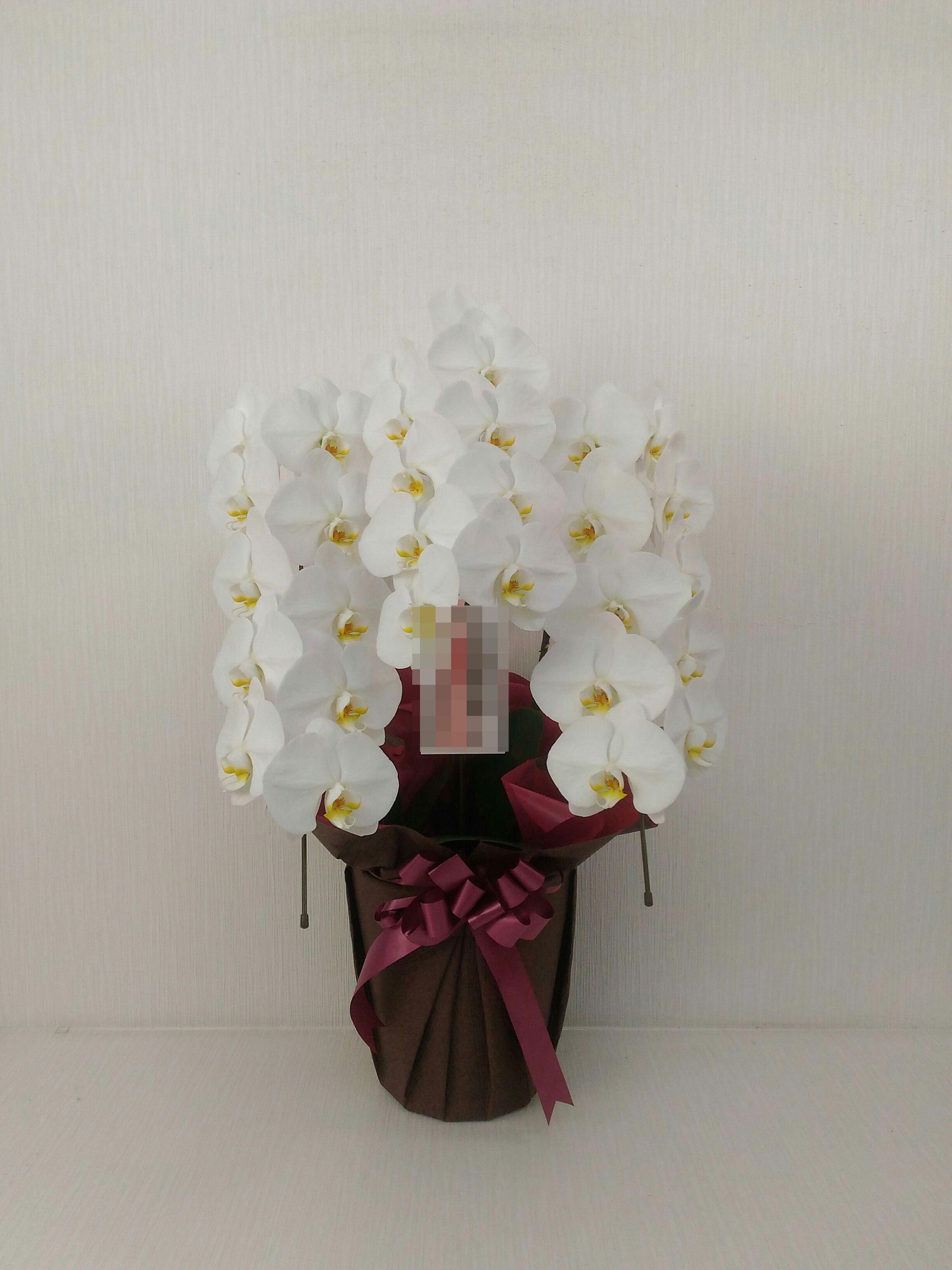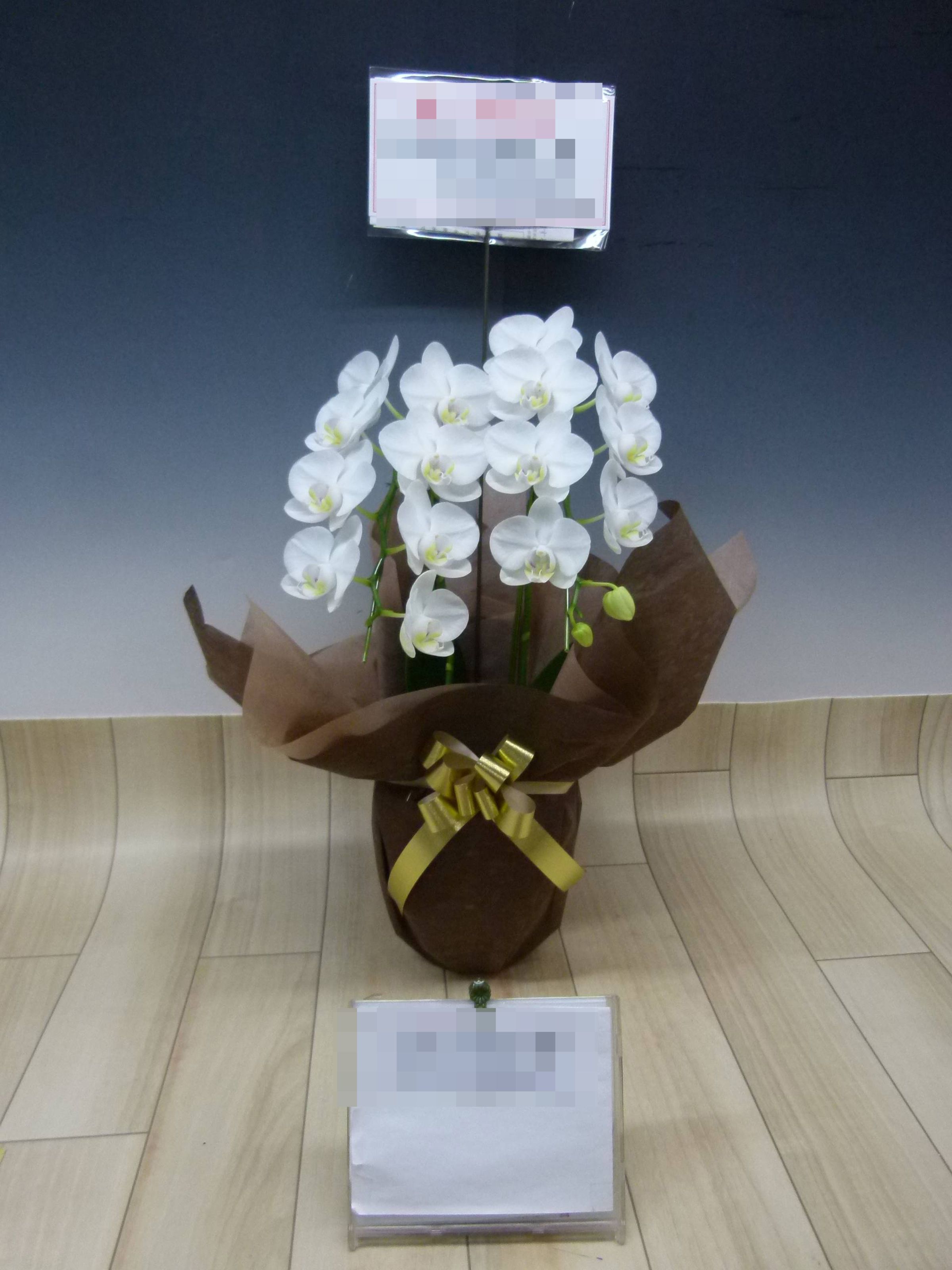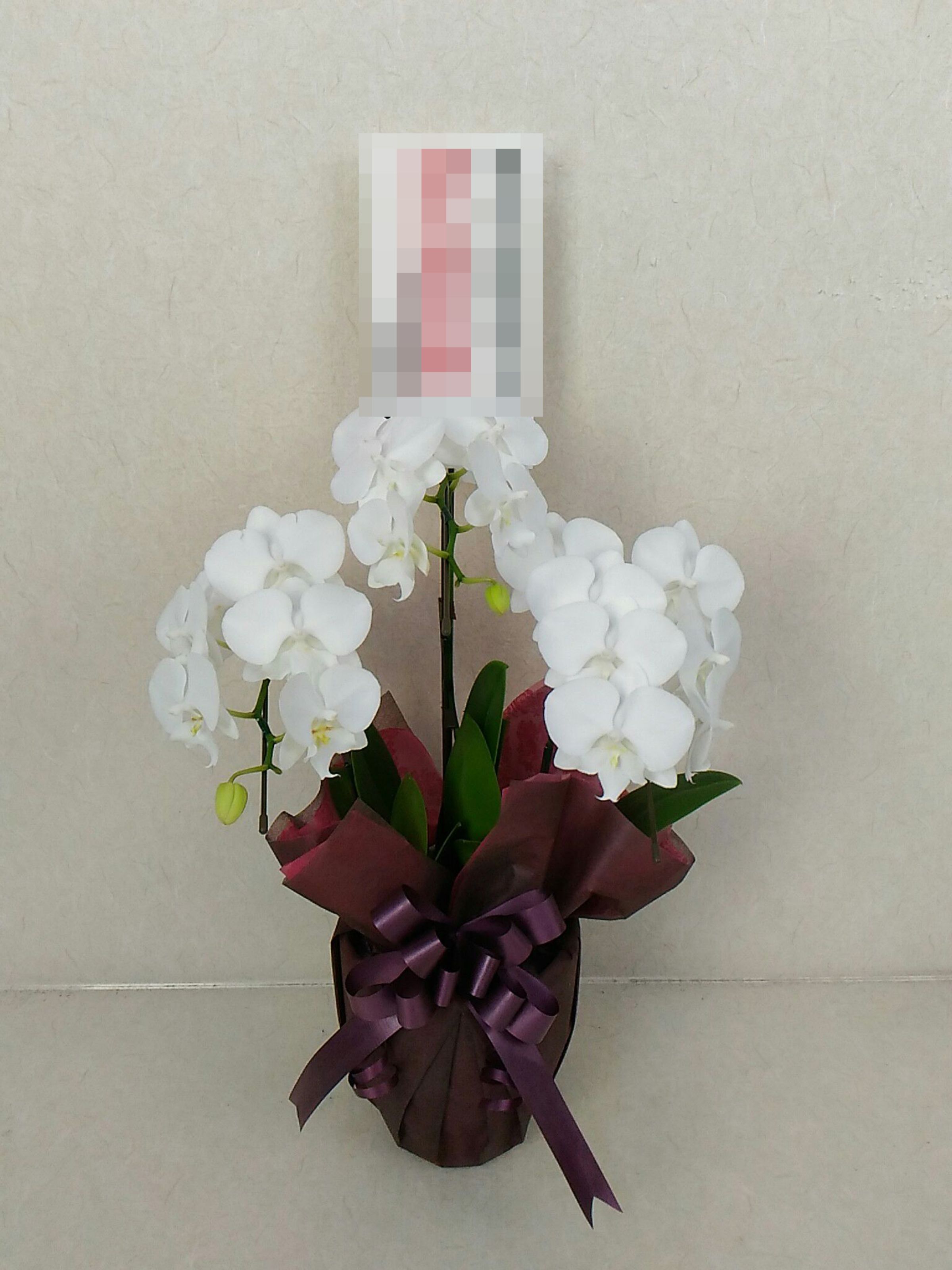 胡蝶蘭の実際にお届けした写真です。花秘書では発送前に写真をメールで送信致しますので安心して大切な顧客や取引様へのギフトにご利用頂けます。
