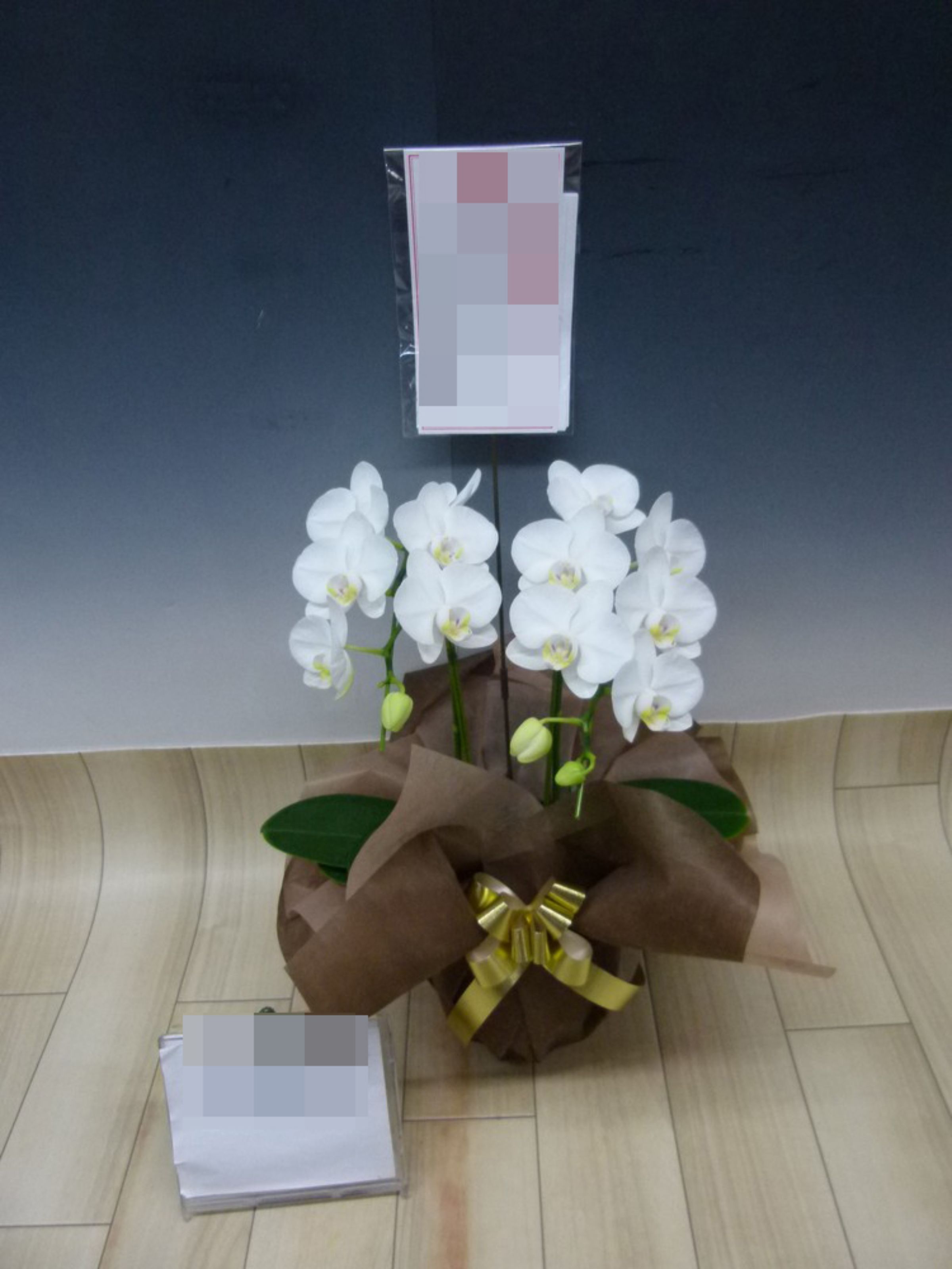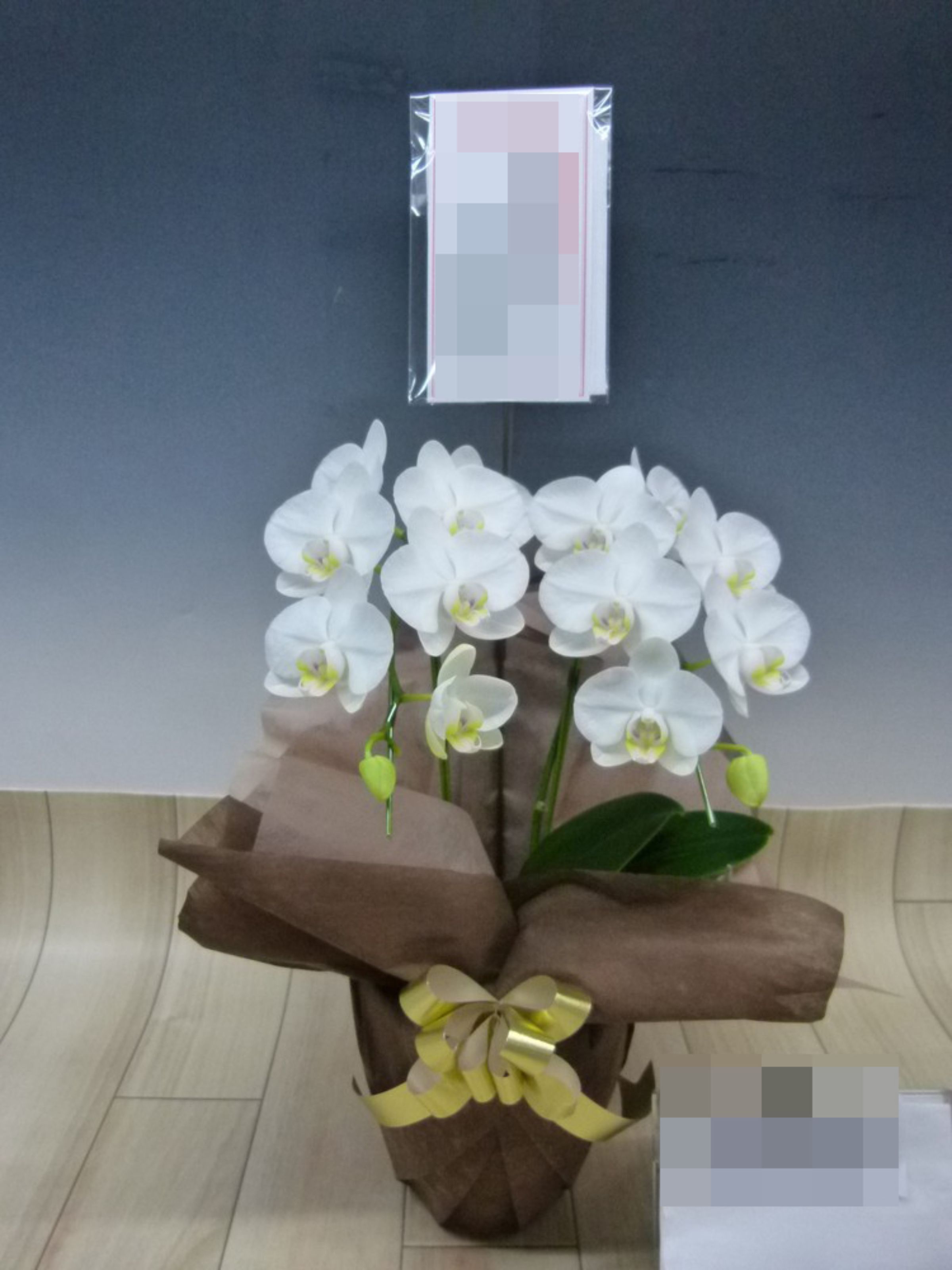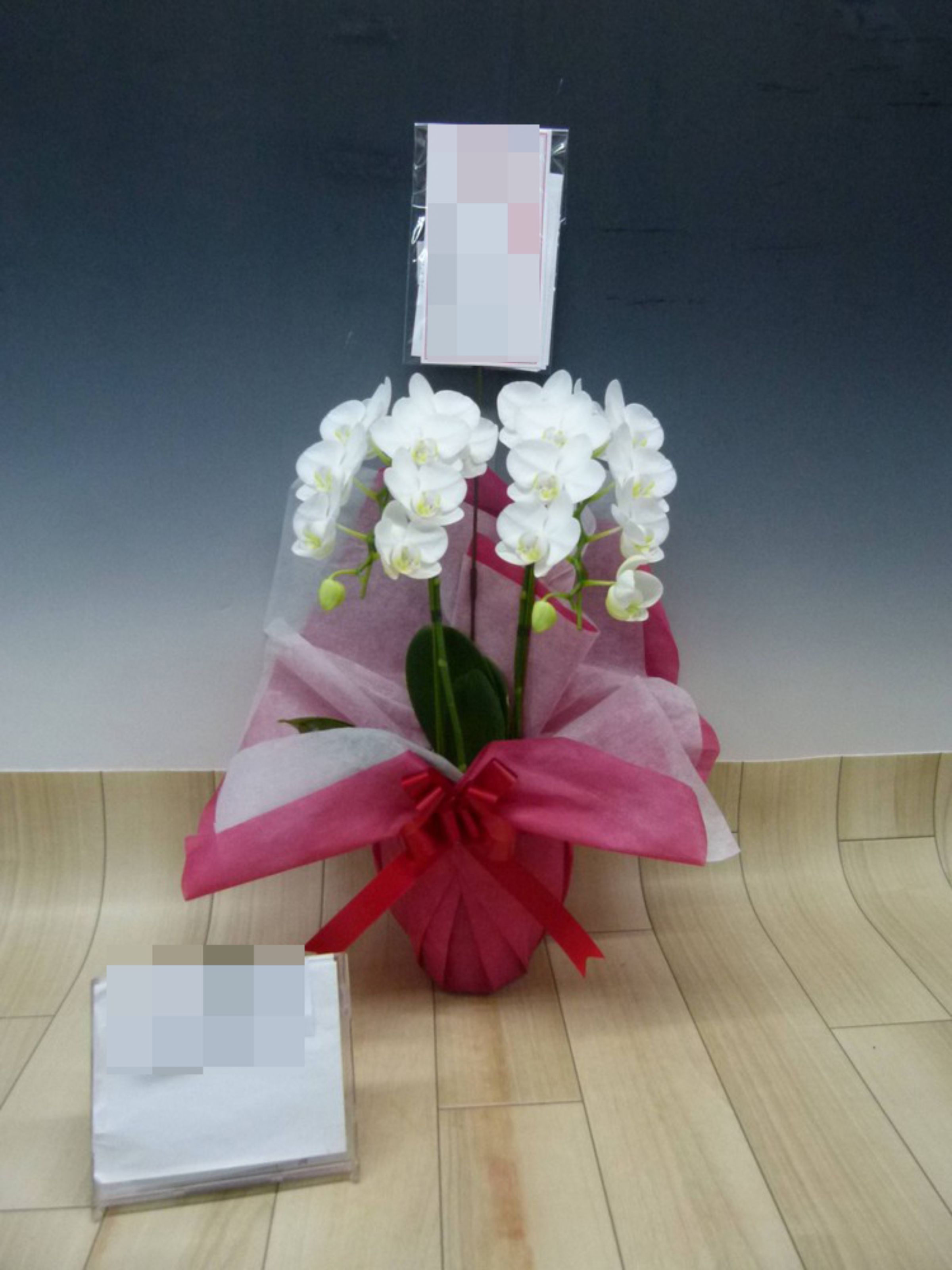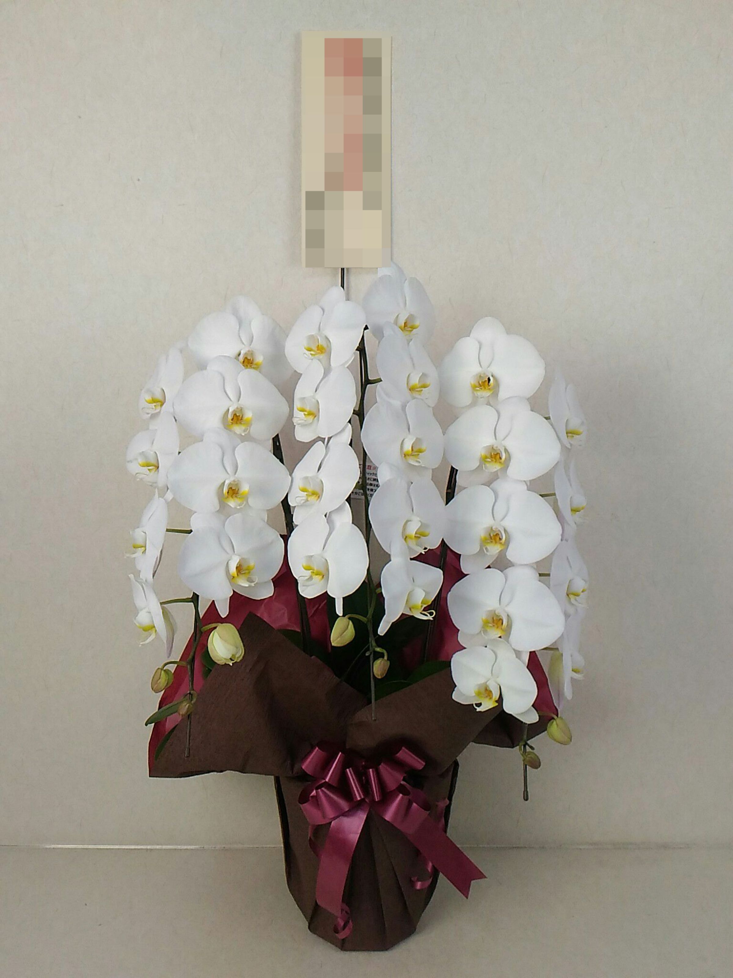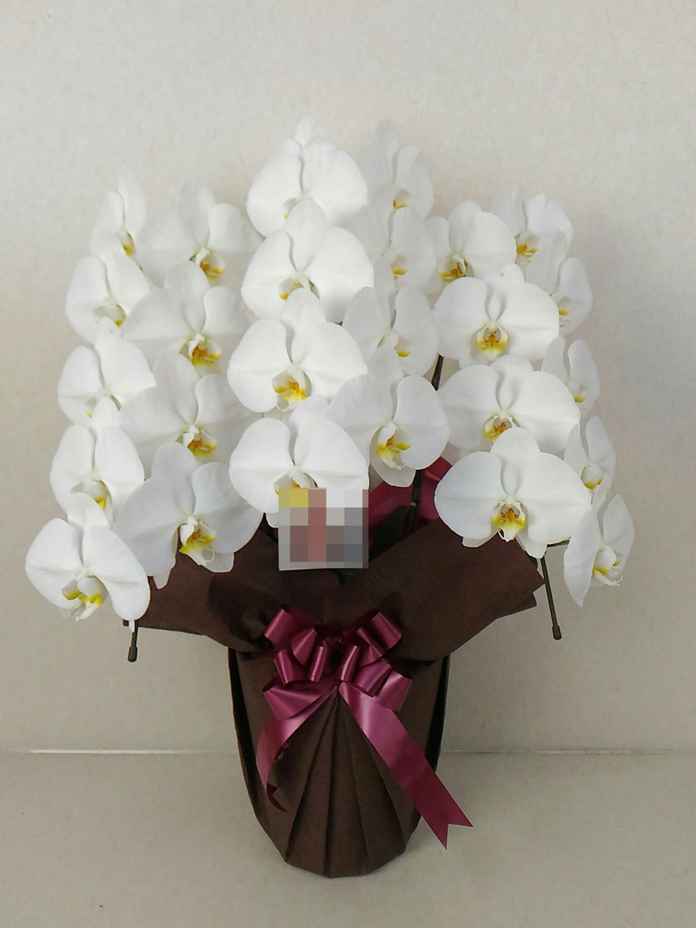 胡蝶蘭の実際にお届けした写真です。花秘書では発送前に写真をメールで送信致しますので安心して大切な顧客や取引様へのギフトにご利用頂けます。