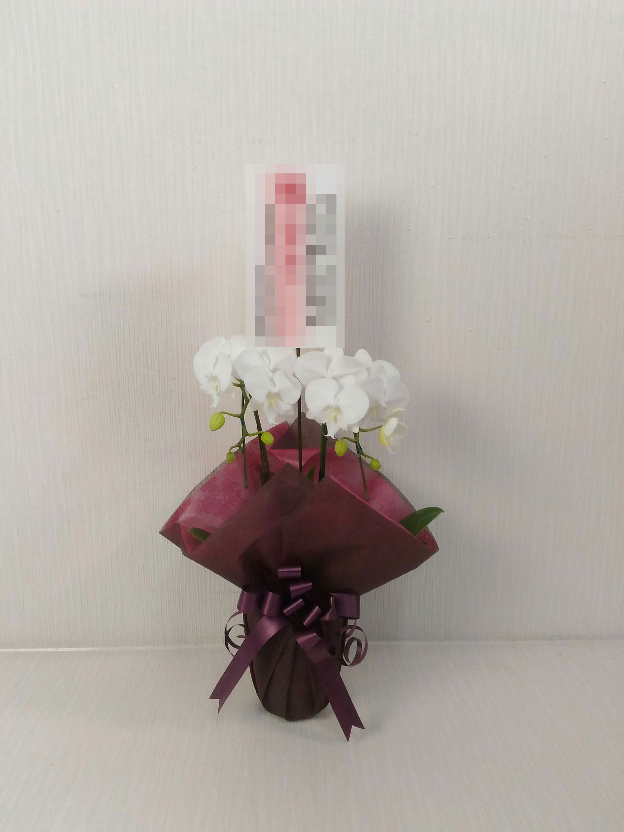 胡蝶蘭の実際にお届けした写真です。花秘書では発送前に写真をメールで送信致しますので安心して大切な顧客や取引様へのギフトにご利用頂けます。