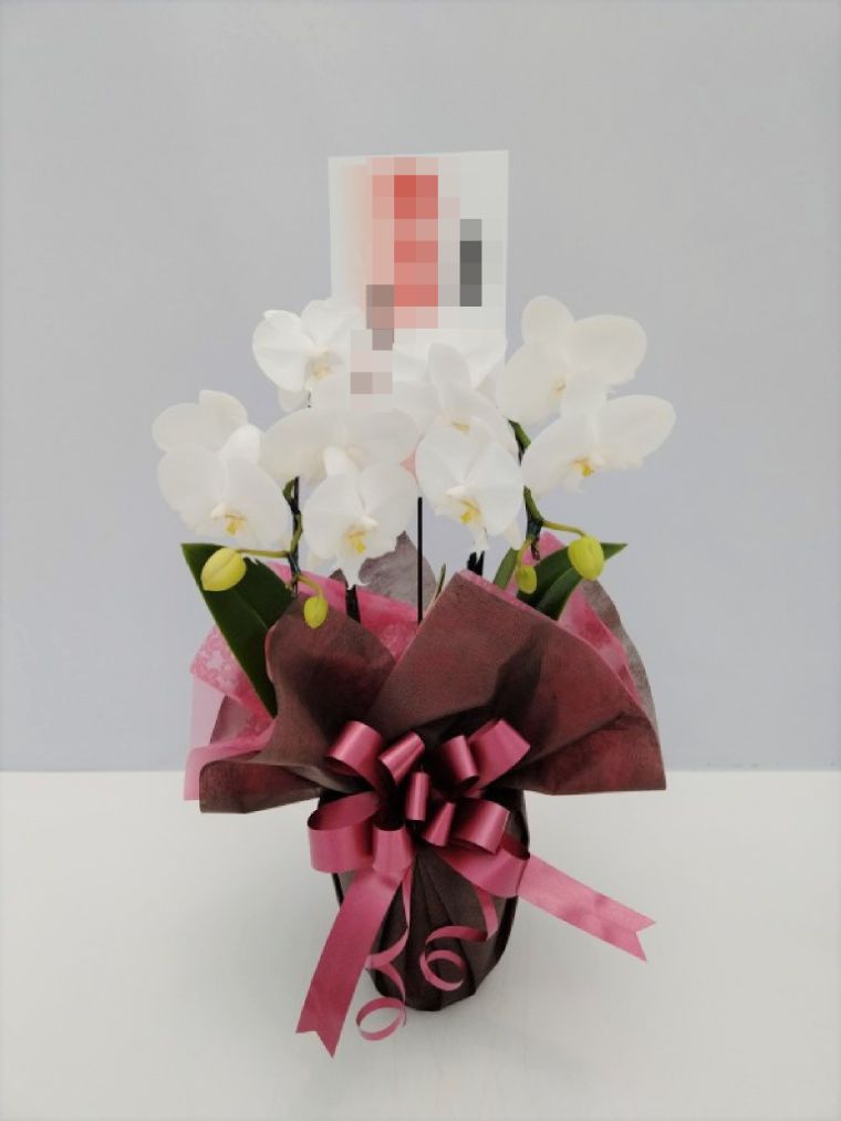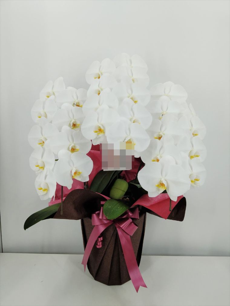 胡蝶蘭の実際にお届けした写真です。花秘書では発送前に写真をメールで送信致しますので安心して大切な顧客や取引様へのギフトにご利用頂けます。