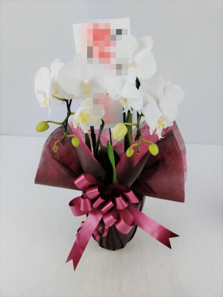 胡蝶蘭の実際にお届けした写真です。花秘書では発送前に写真をメールで送信致しますので安心して大切な顧客や取引様へのギフトにご利用頂けます。