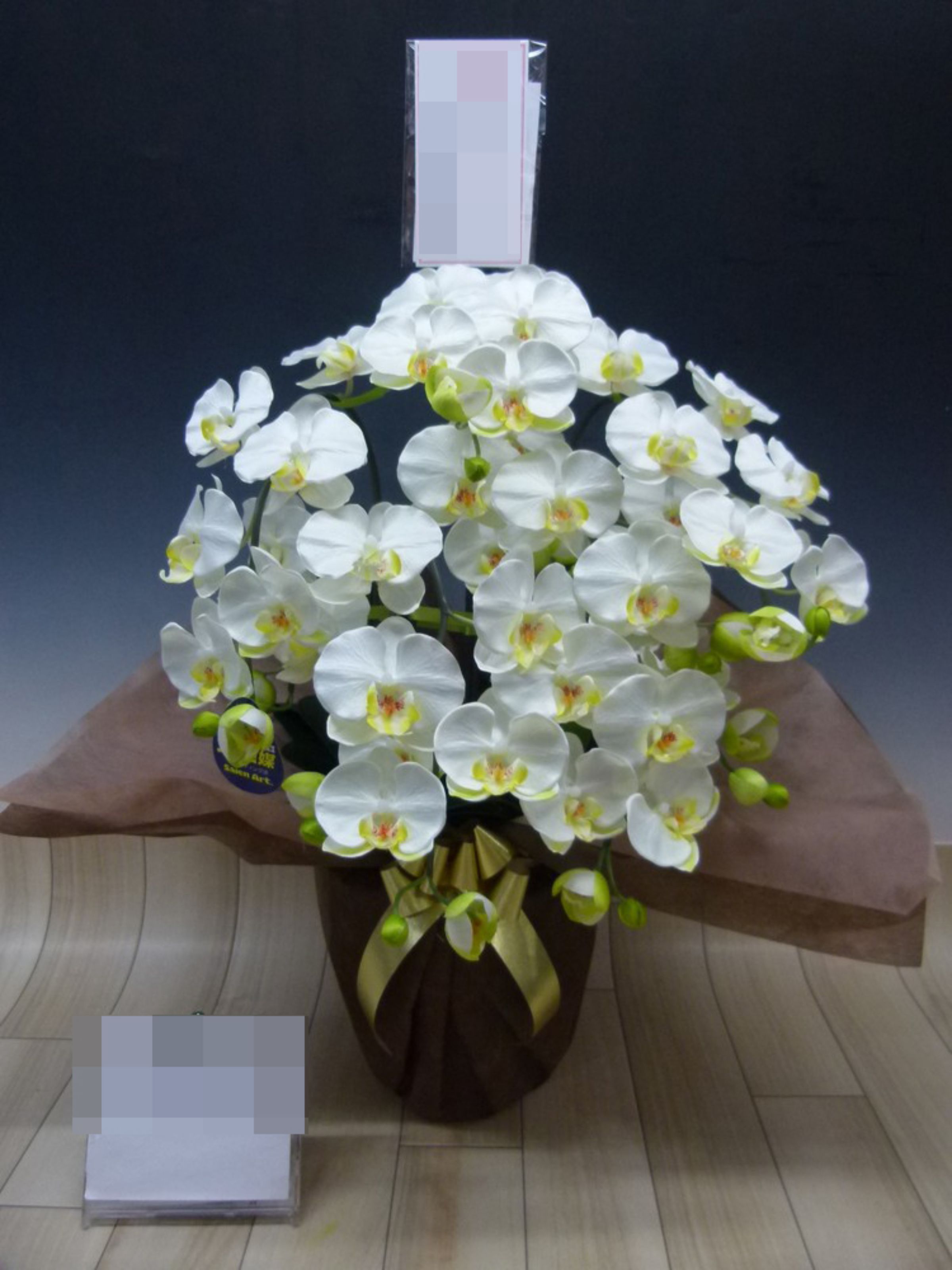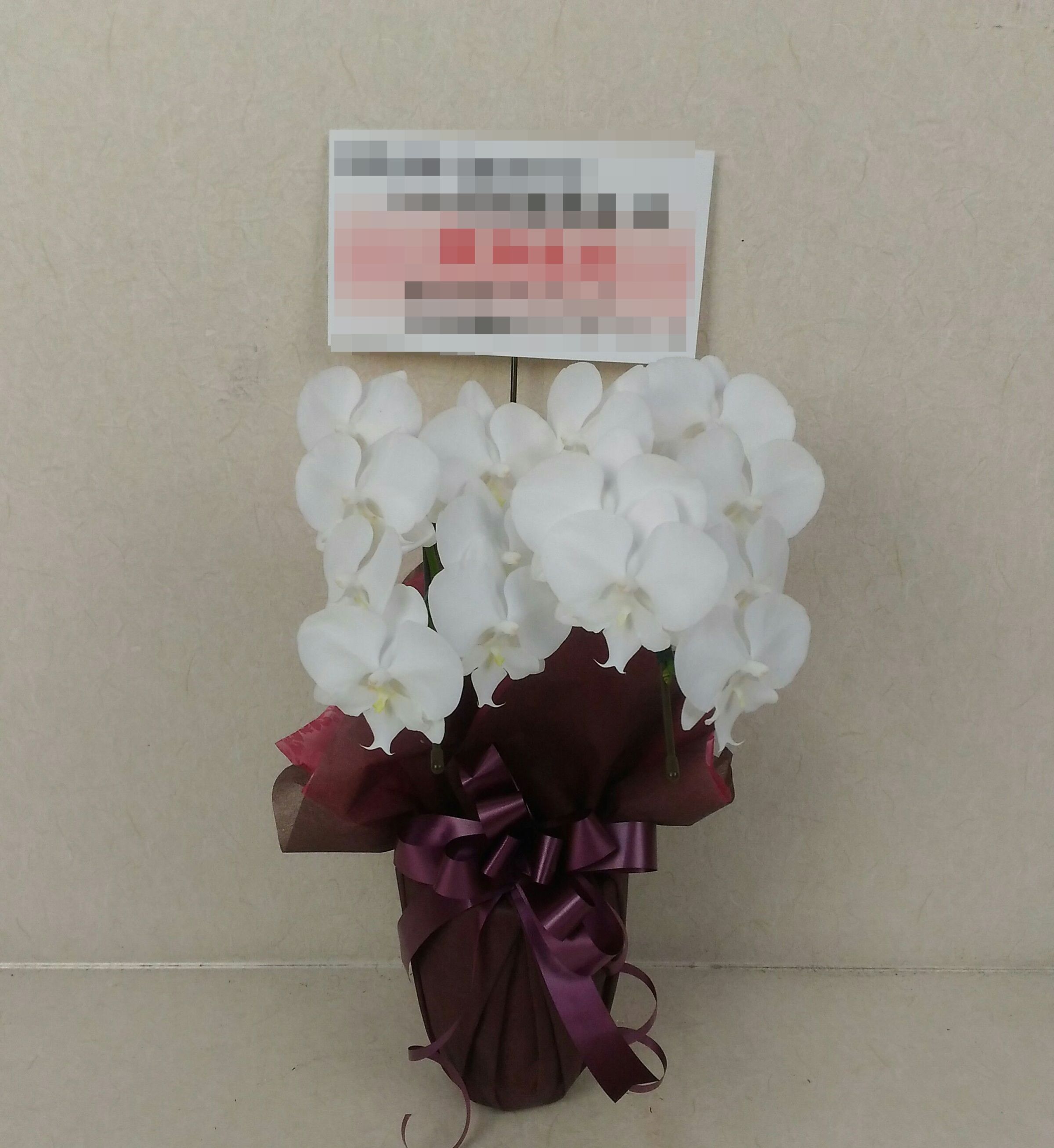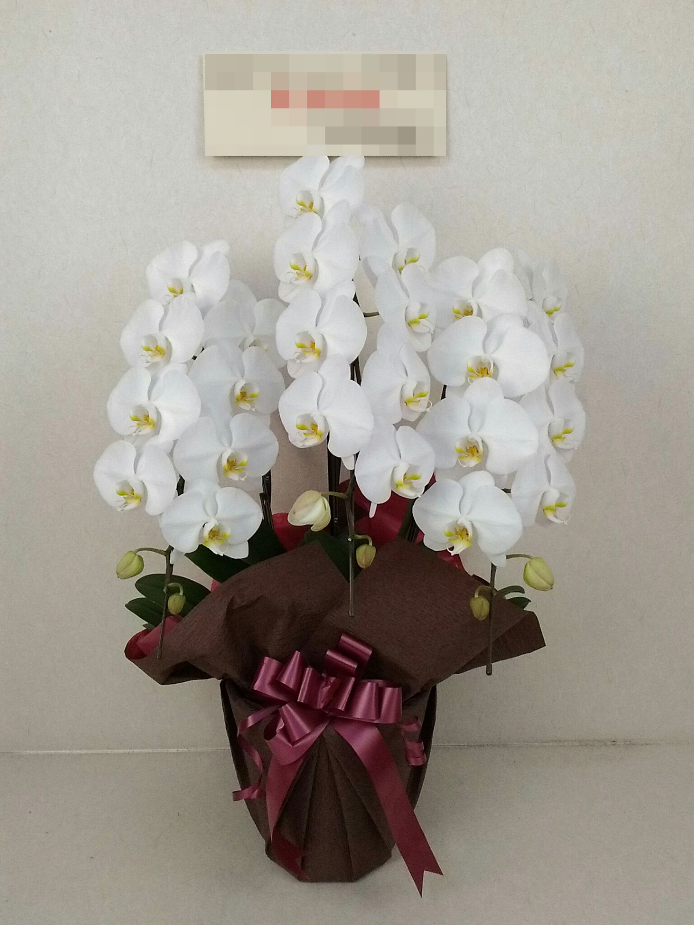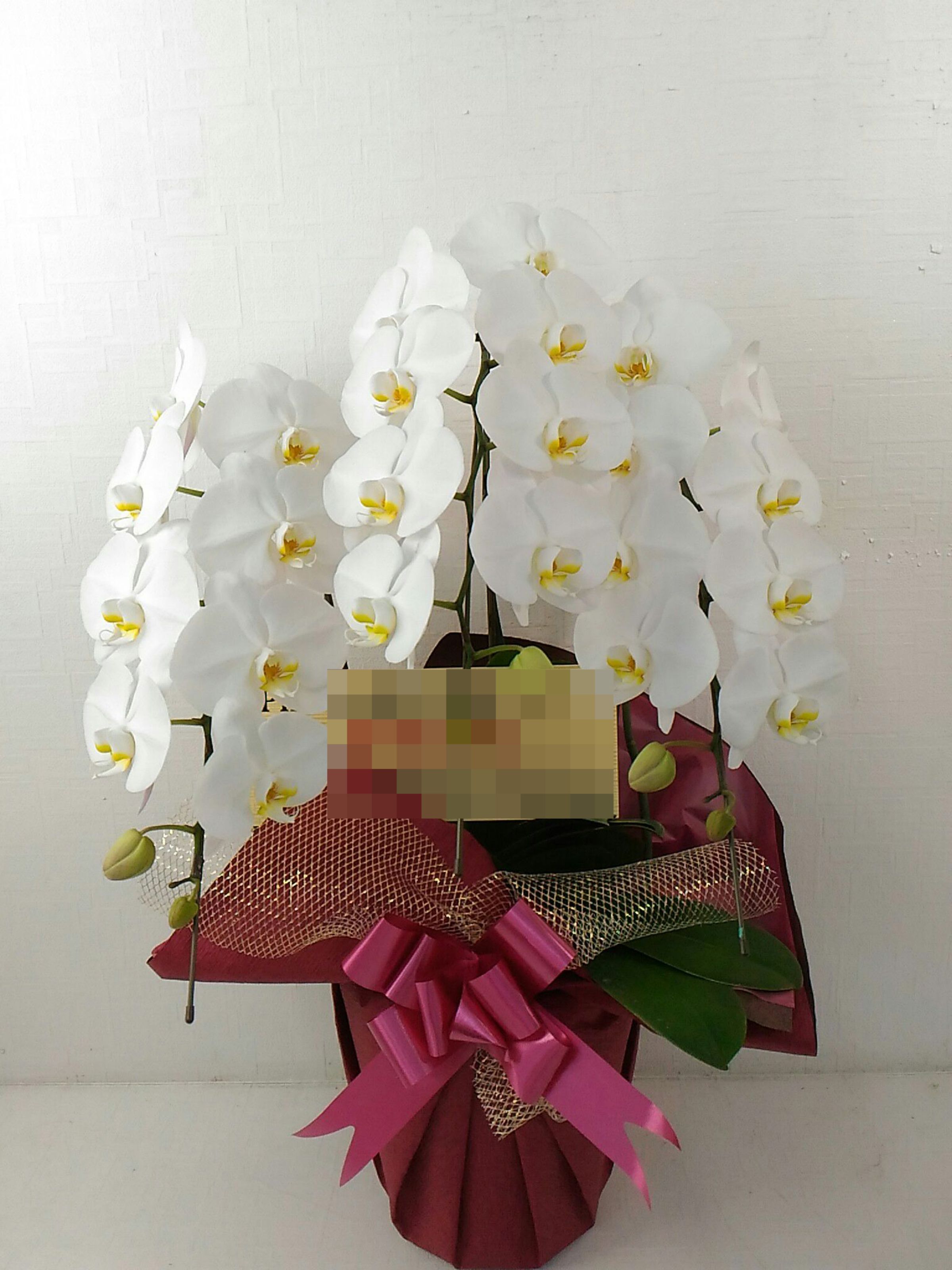 胡蝶蘭の実際にお届けした写真です。花秘書では発送前に写真をメールで送信致しますので安心して大切な顧客や取引様へのギフトにご利用頂けます。