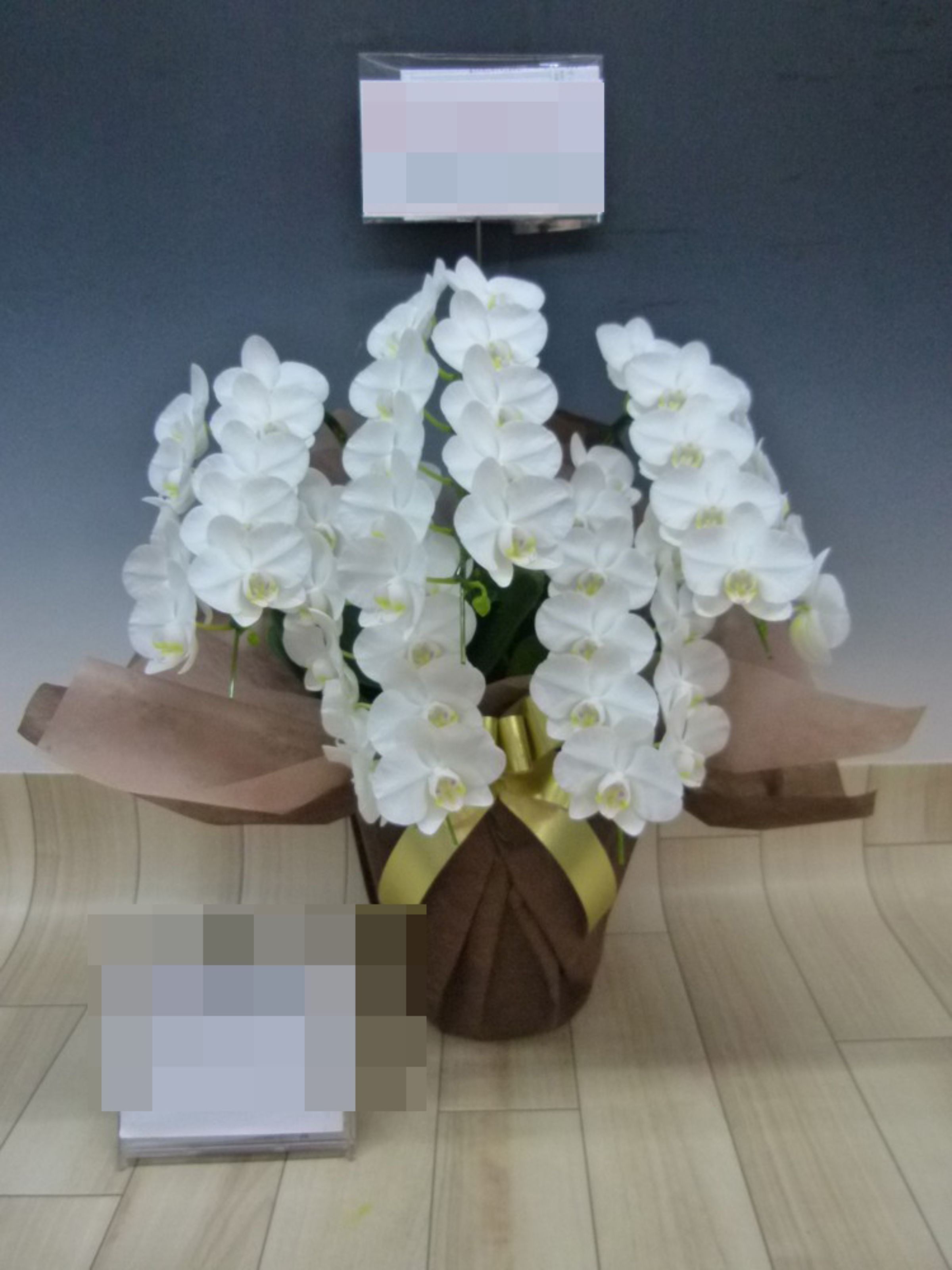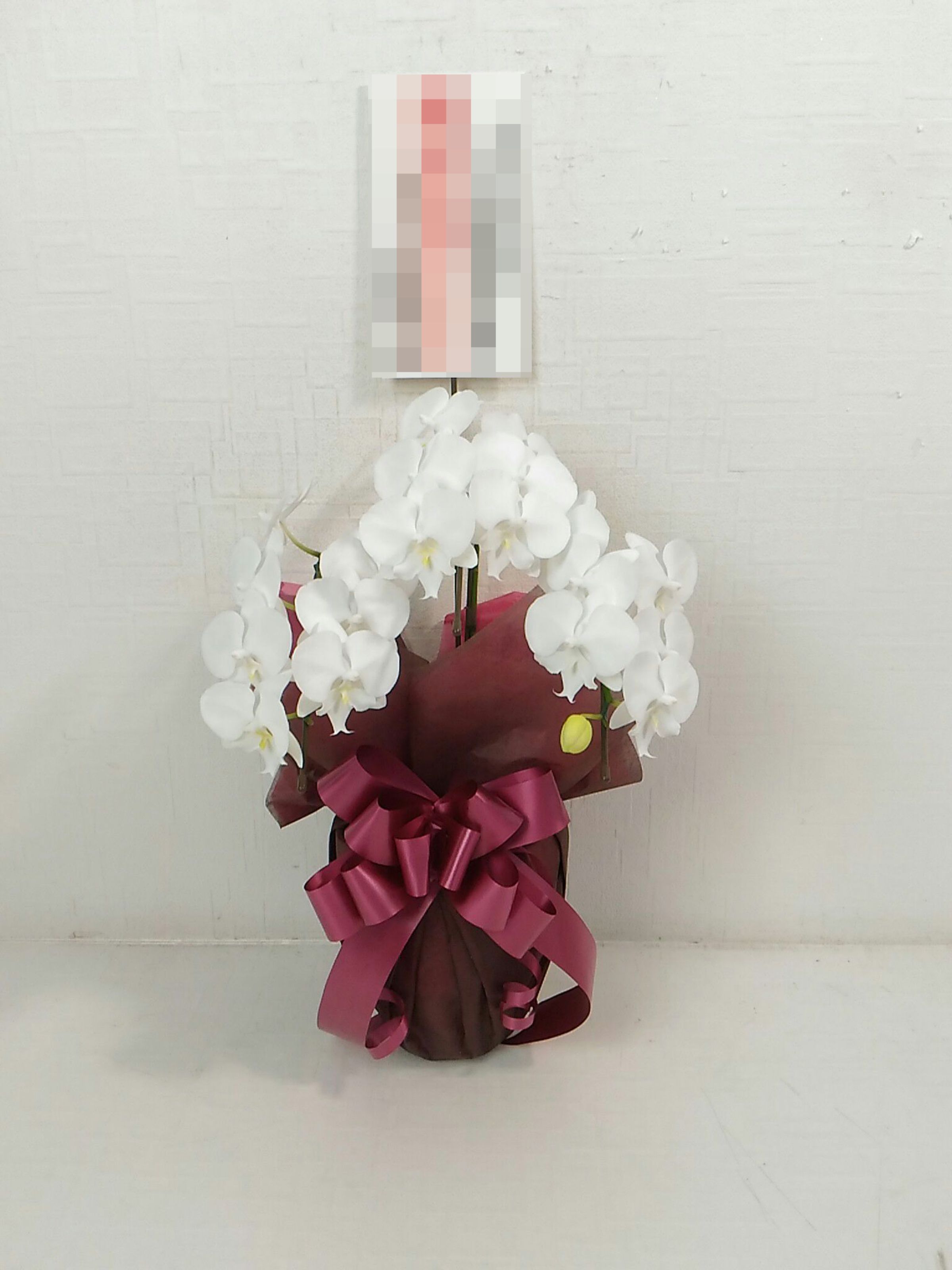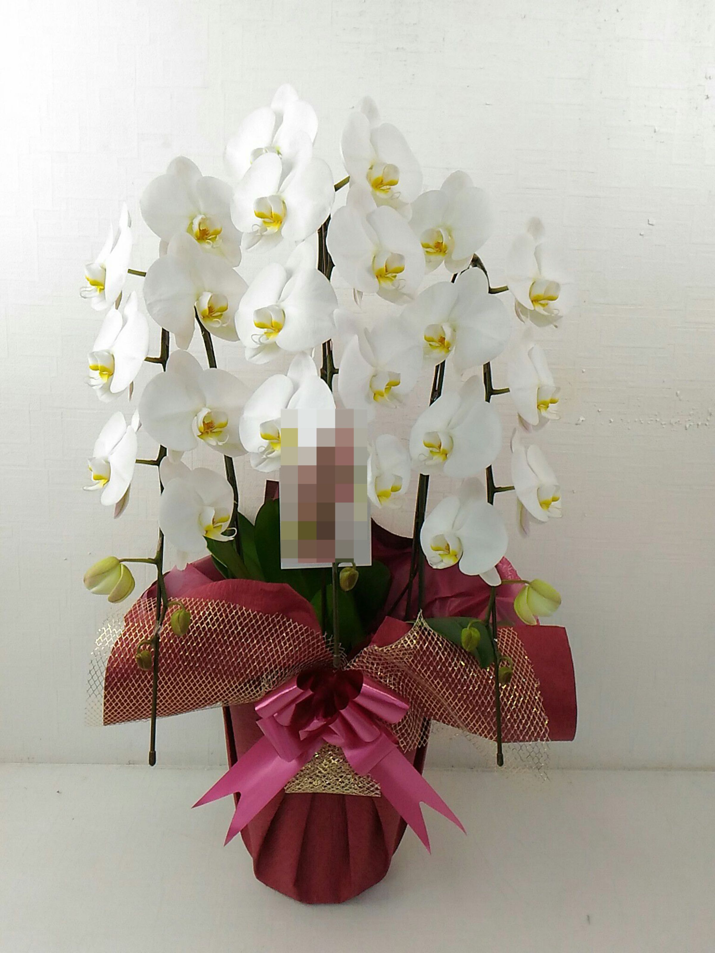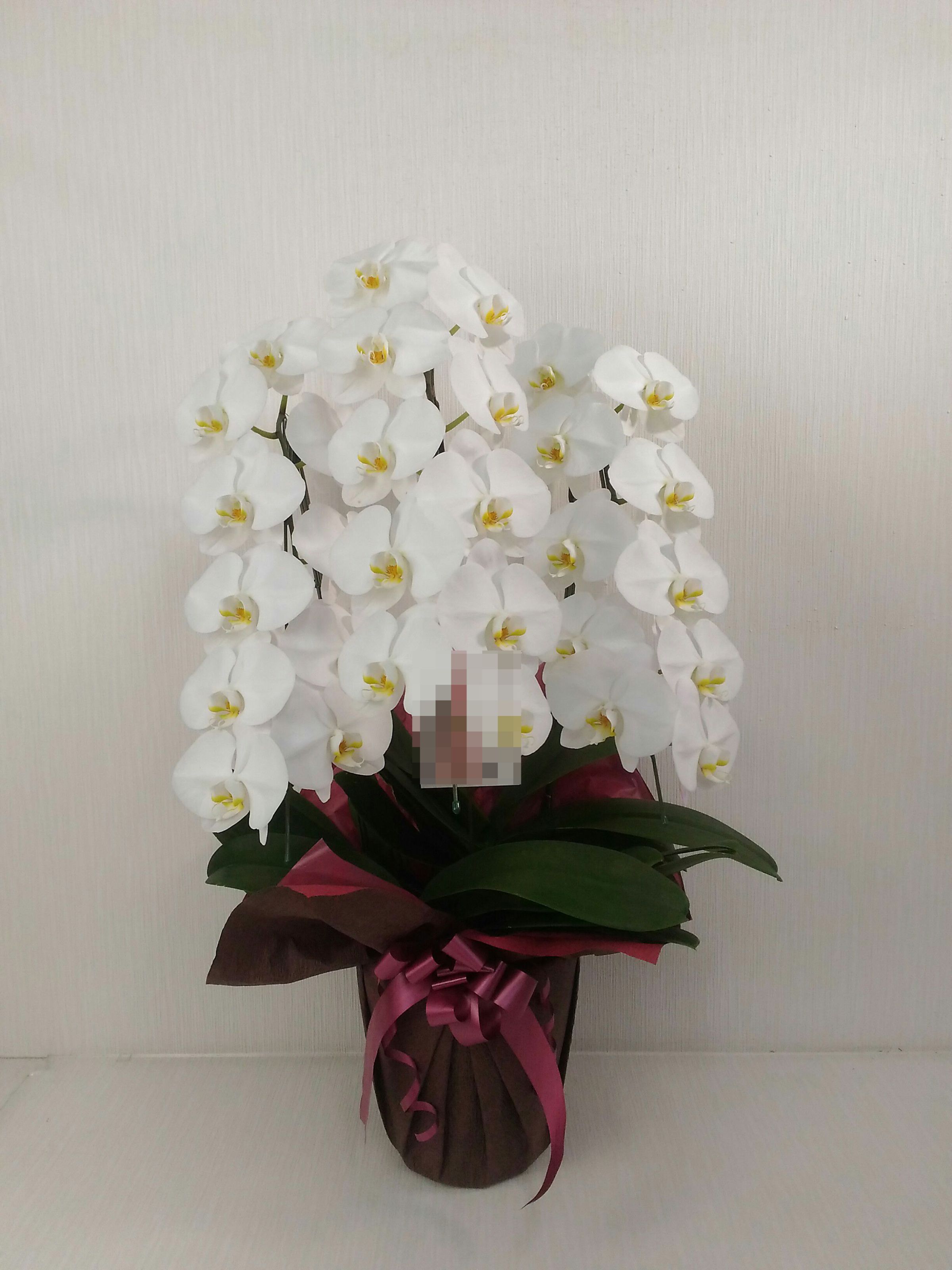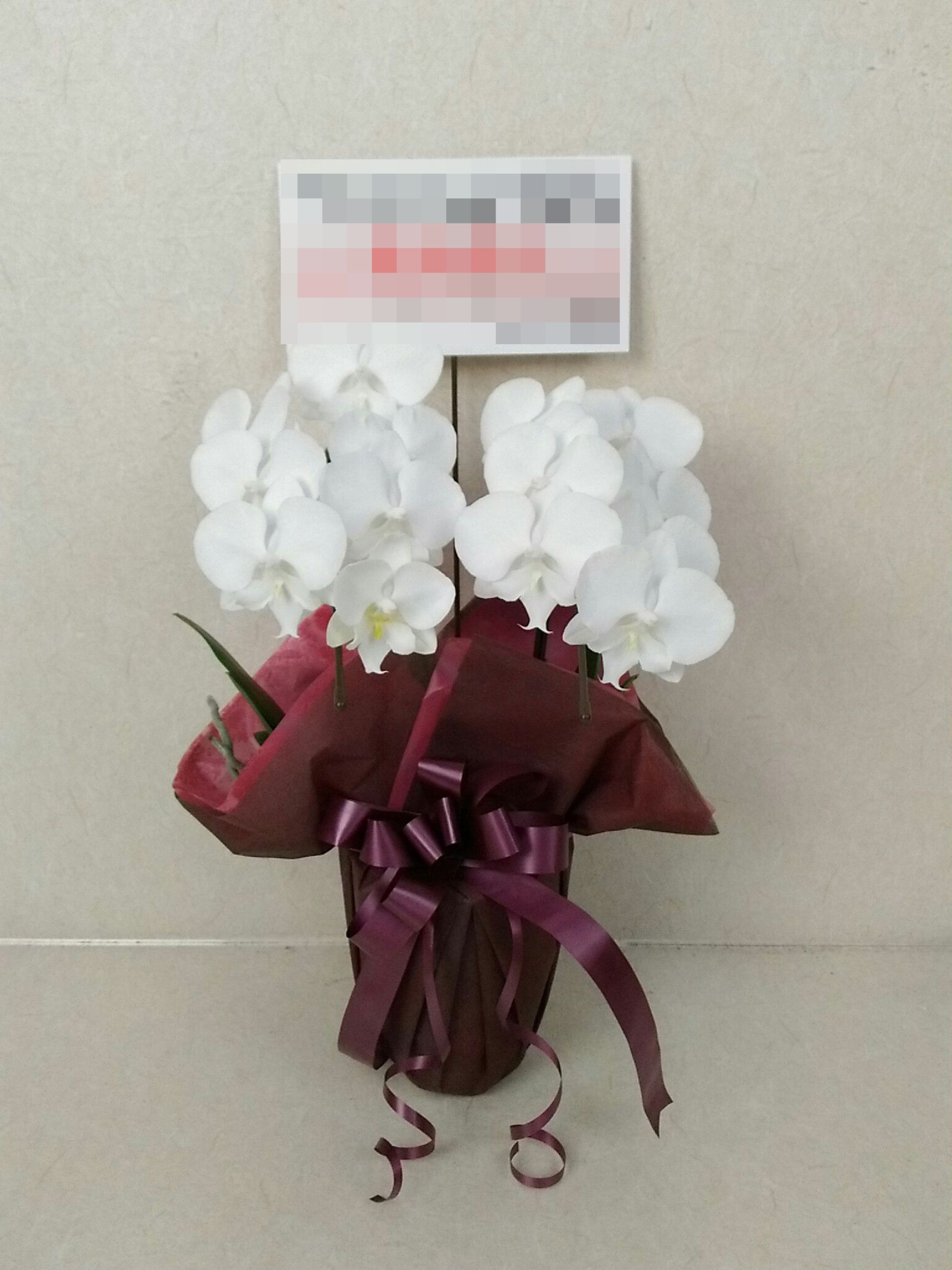胡蝶蘭の実際にお届けした写真です。花秘書では発送前に写真をメールで送信致しますので安心して大切な顧客や取引様へのギフトにご利用頂けます。