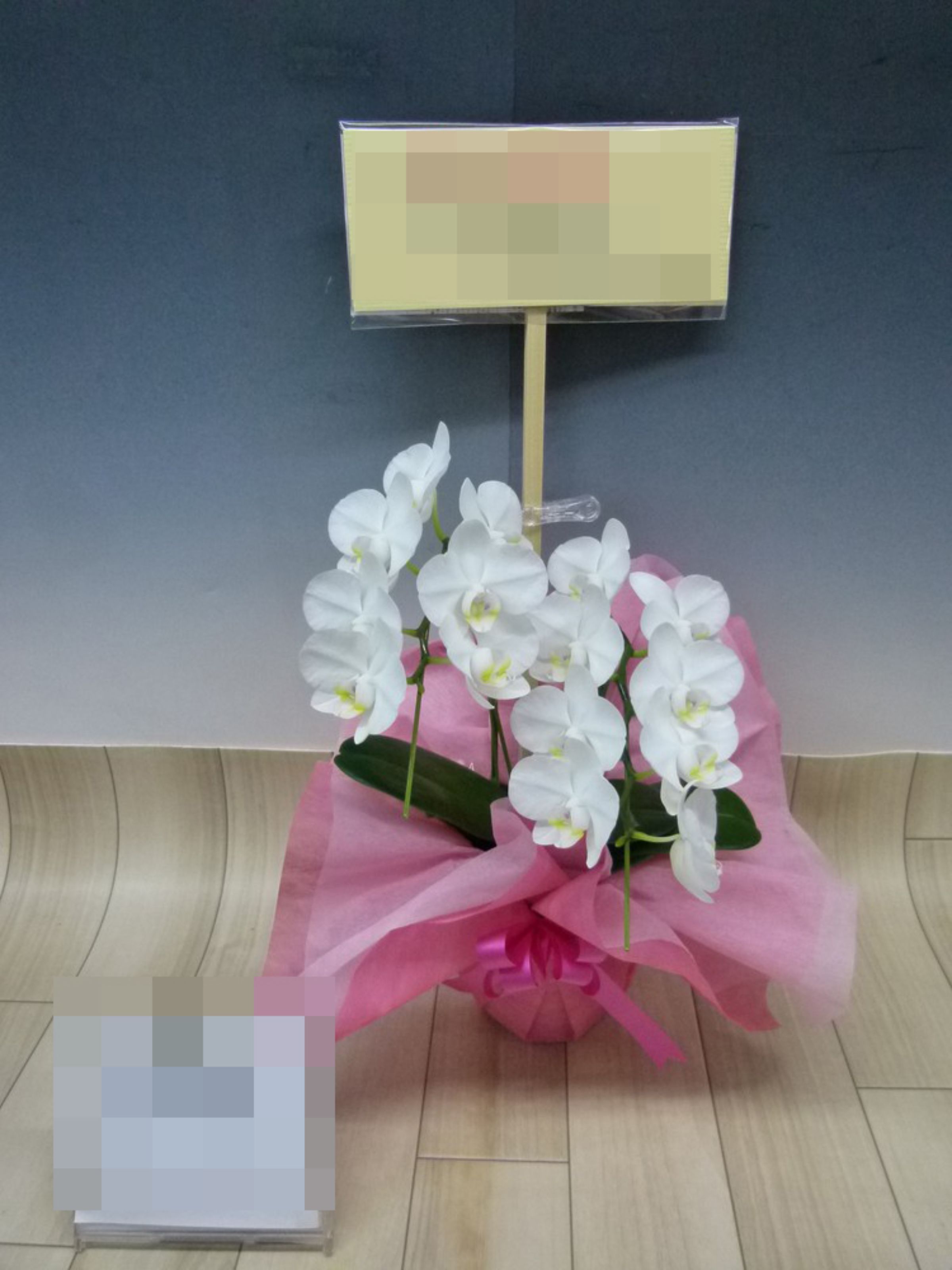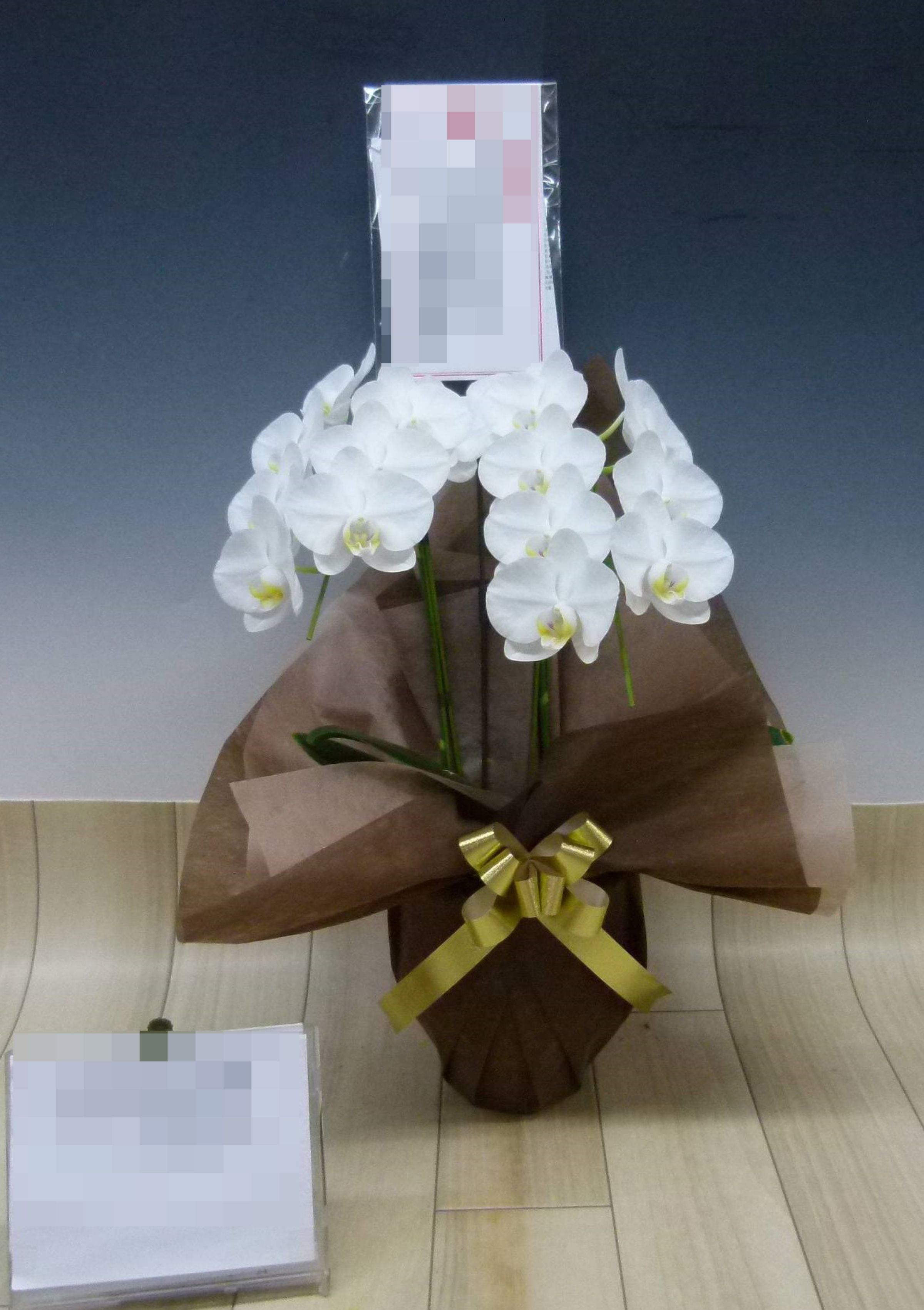胡蝶蘭の実際にお届けした写真です。花秘書では発送前に写真をメールで送信致しますので安心して大切な顧客や取引様へのギフトにご利用頂けます。