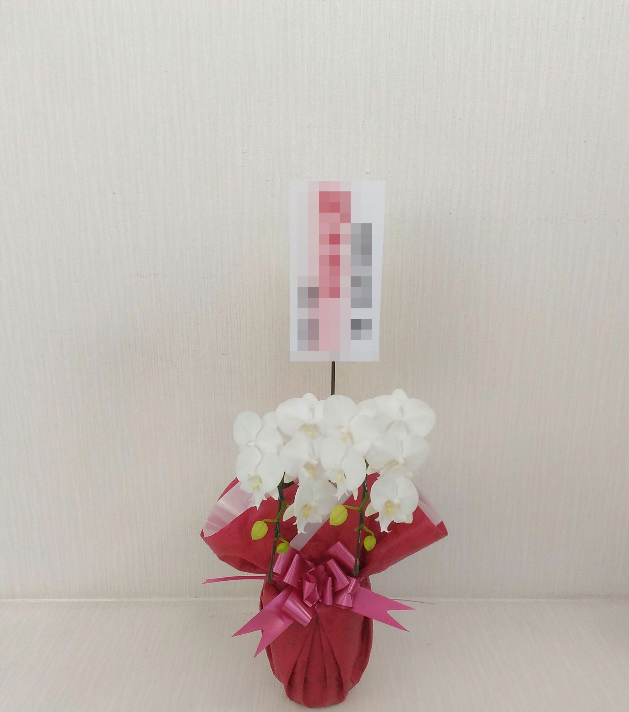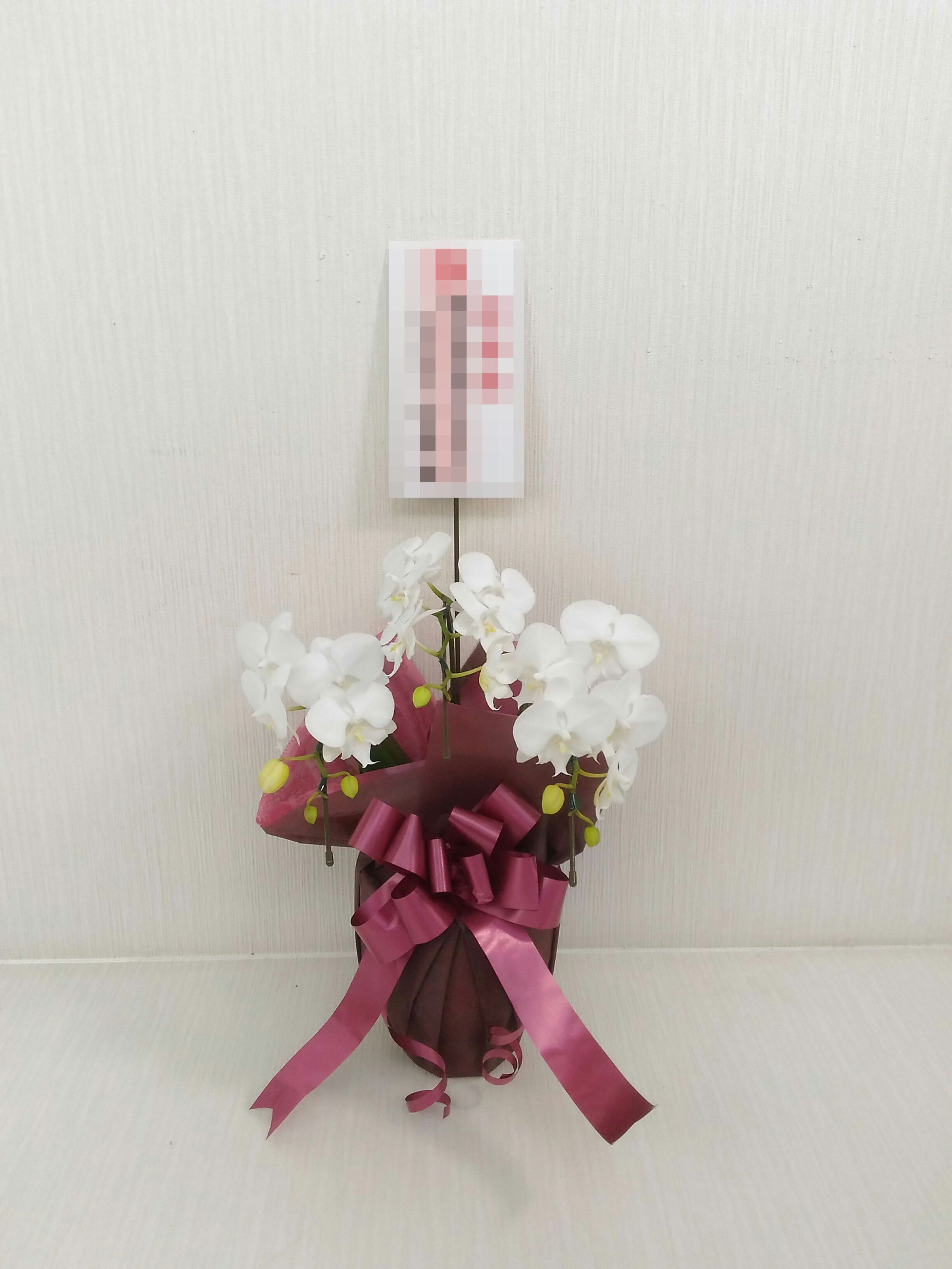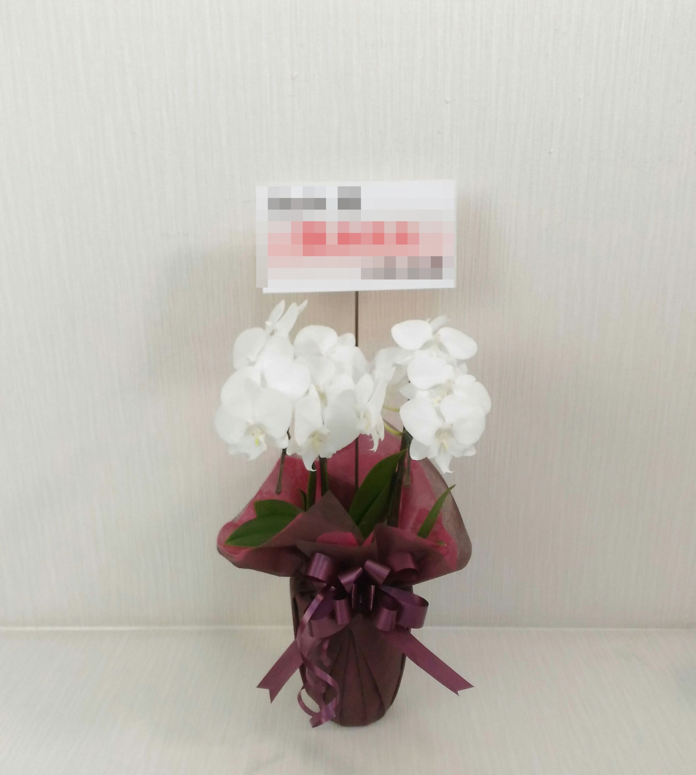 胡蝶蘭の実際にお届けした写真です。花秘書では発送前に写真をメールで送信致しますので安心して大切な顧客や取引様へのギフトにご利用頂けます。