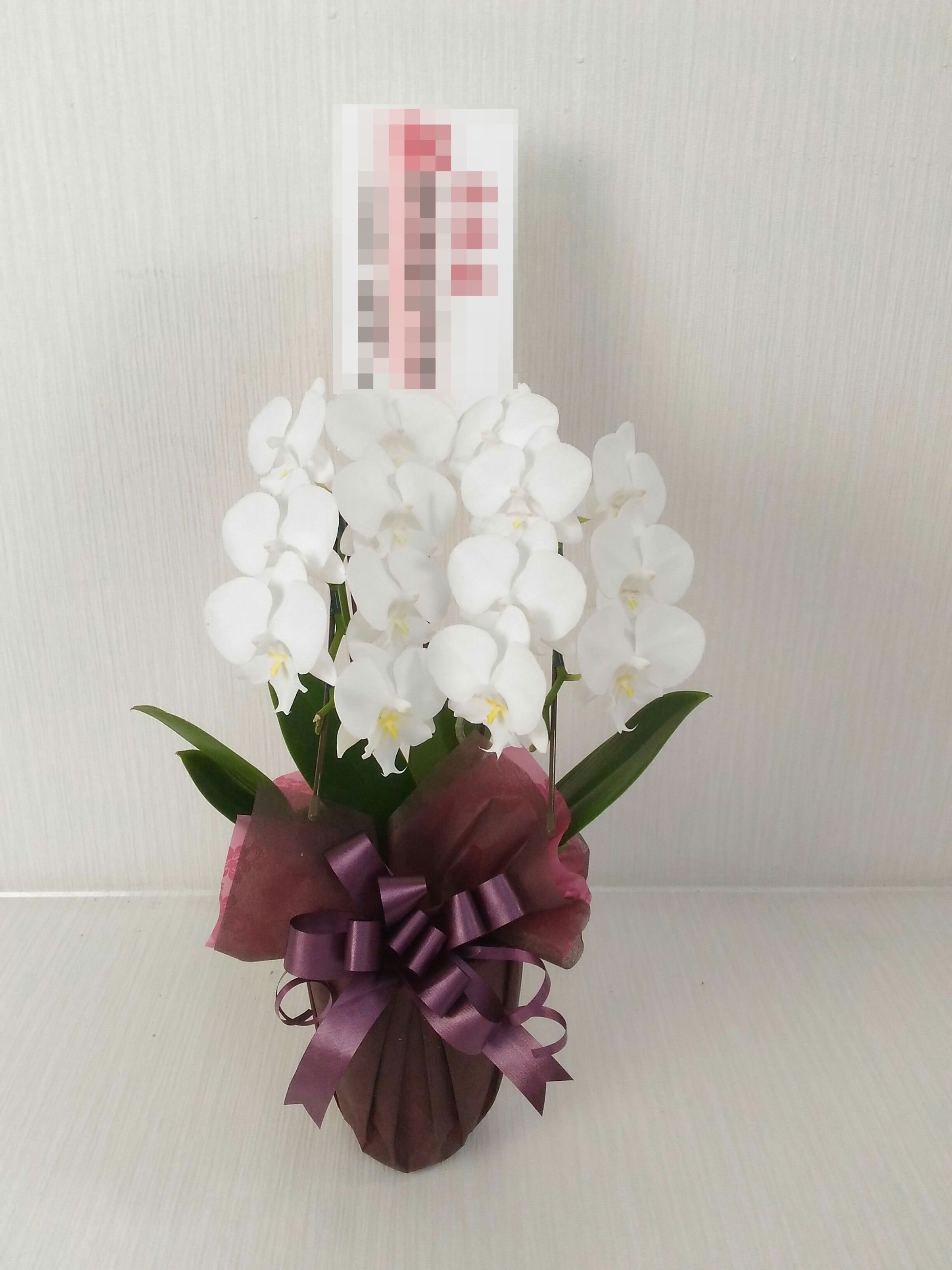 胡蝶蘭の実際にお届けした写真です。花秘書では発送前に写真をメールで送信致しますので安心して大切な顧客や取引様へのギフトにご利用頂けます。