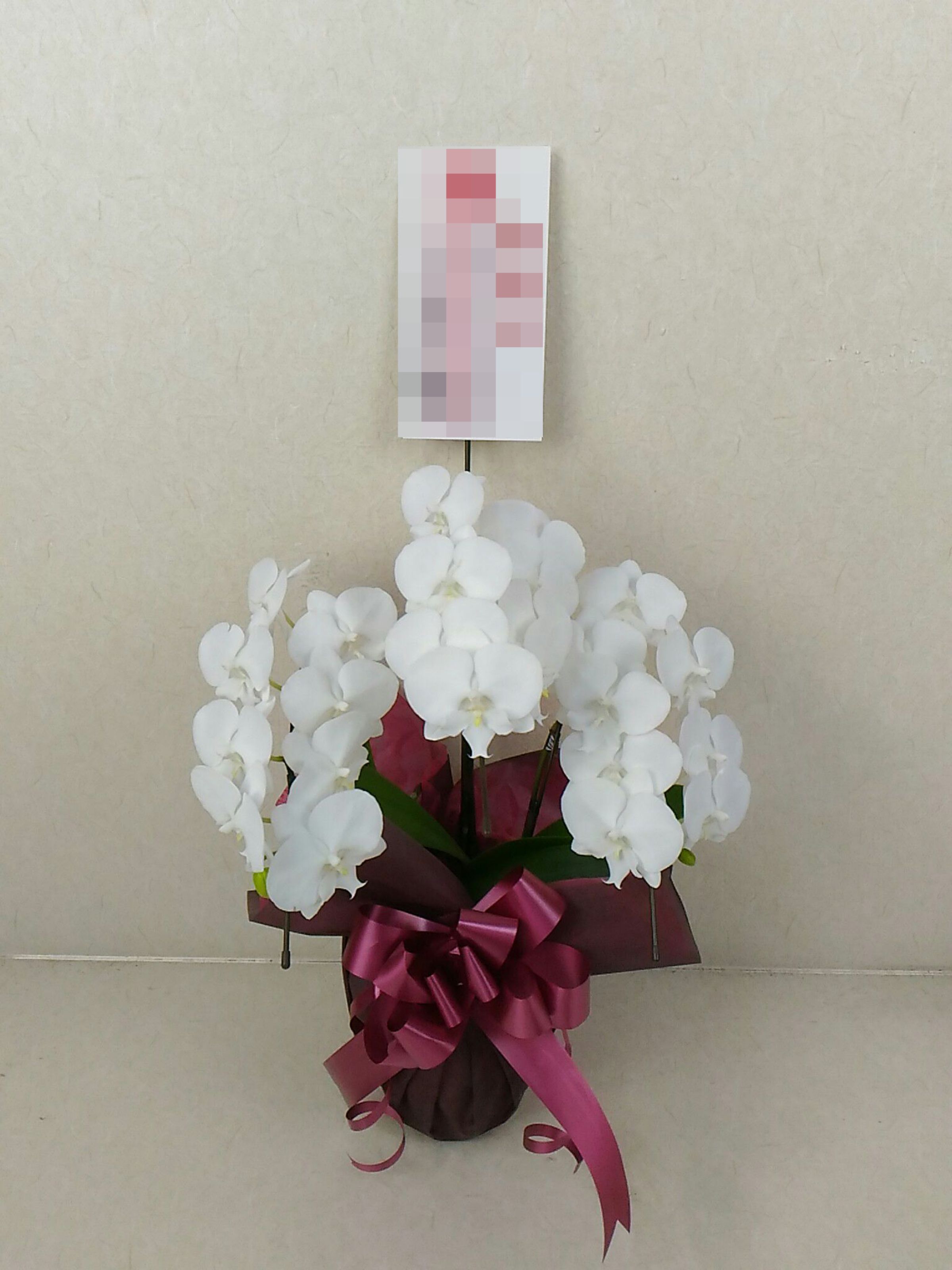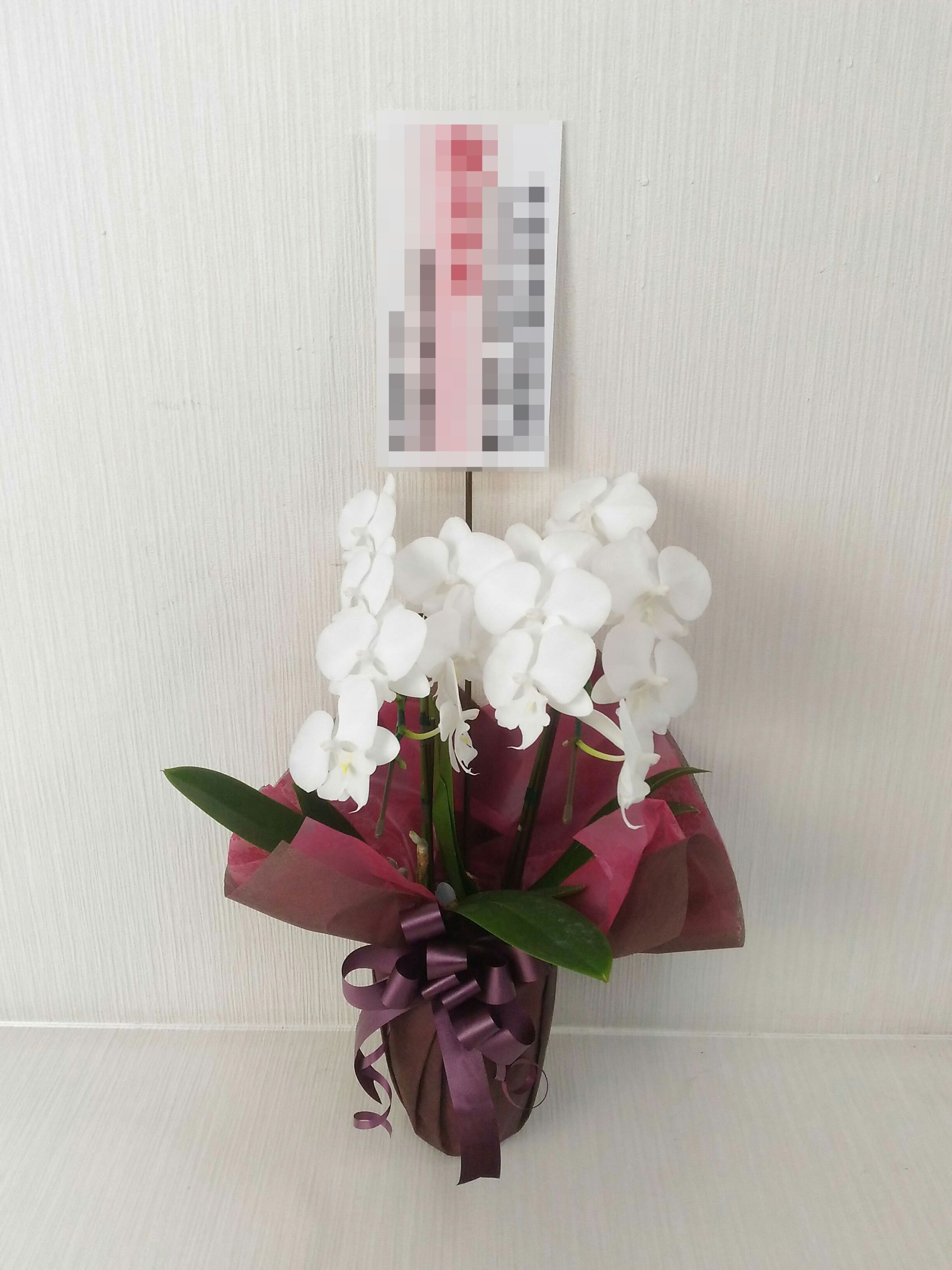 胡蝶蘭の実際にお届けした写真です。花秘書では発送前に写真をメールで送信致しますので安心して大切な顧客や取引様へのギフトにご利用頂けます。