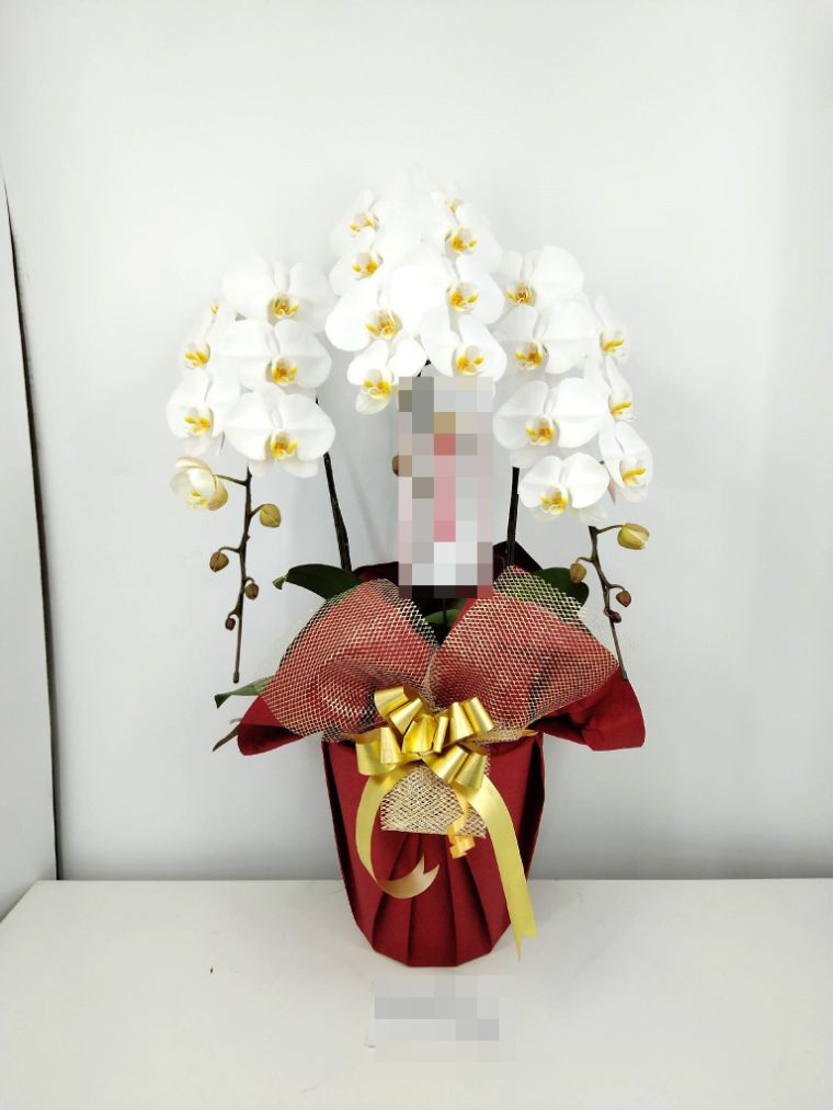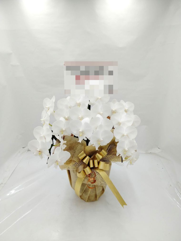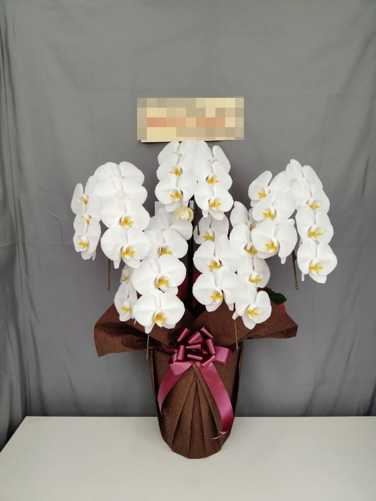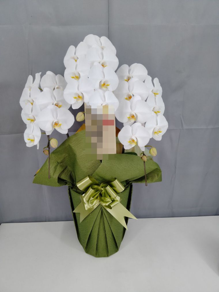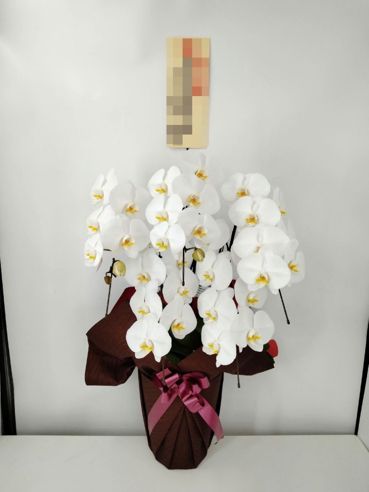 胡蝶蘭の実際にお届けした写真です。花秘書では発送前に写真をメールで送信致しますので安心して大切な顧客や取引様へのギフトにご利用頂けます。