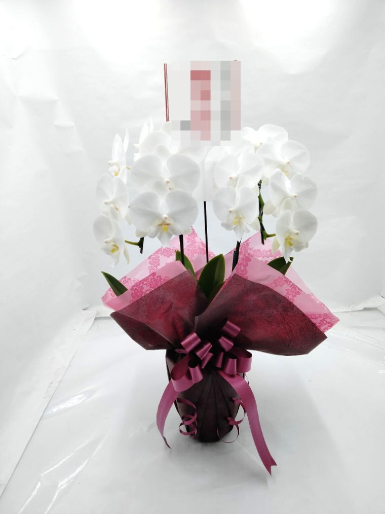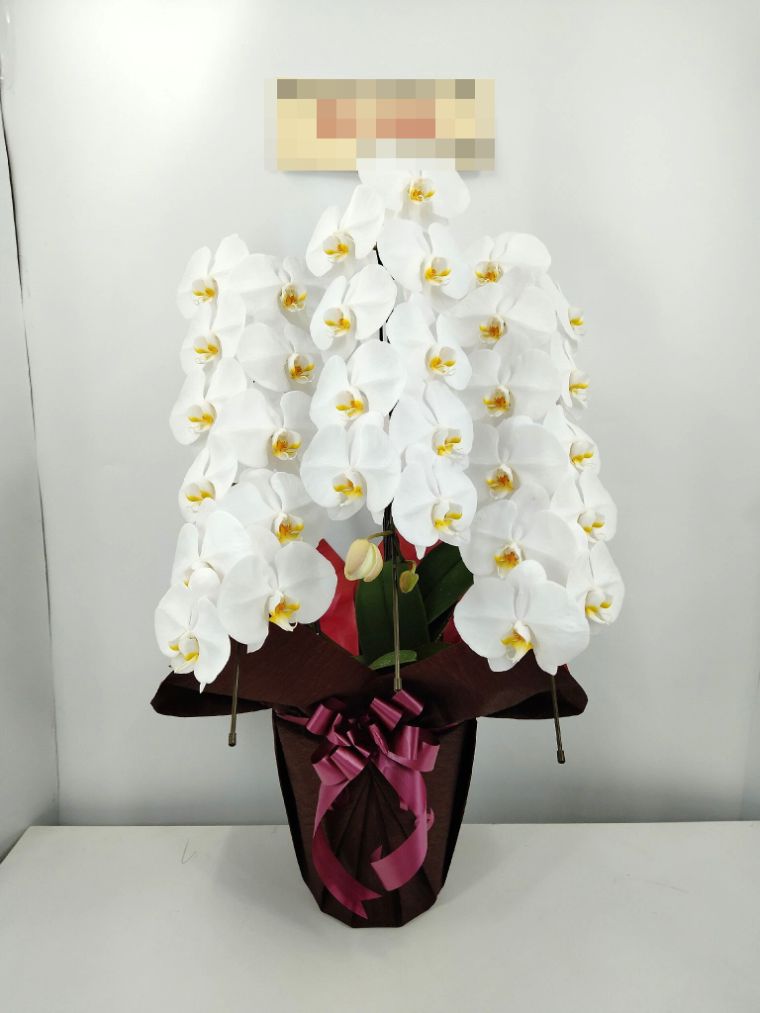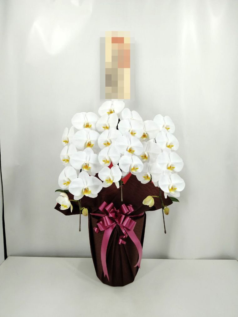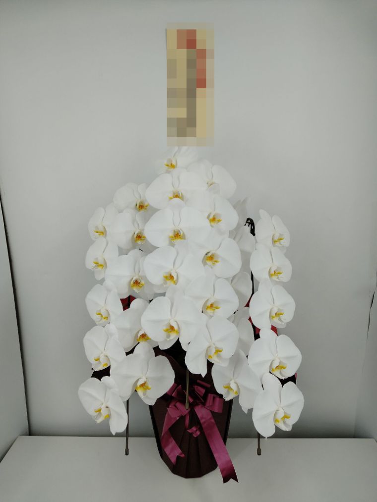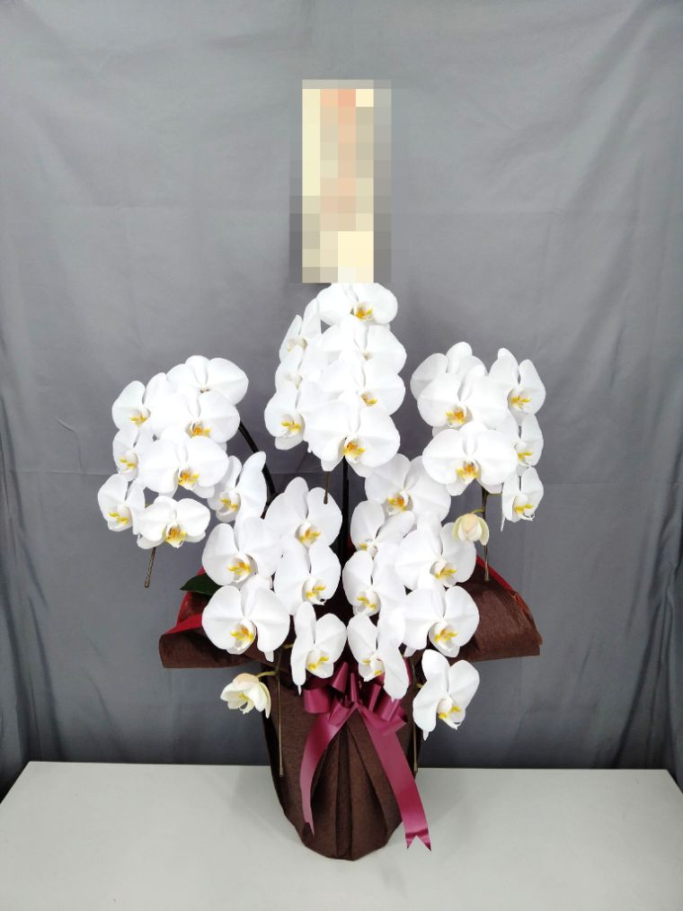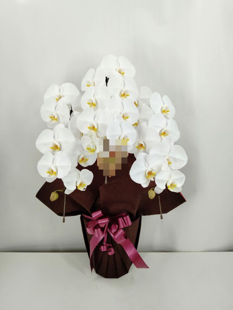 胡蝶蘭の実際にお届けした写真です。花秘書では発送前に写真をメールで送信致しますので安心して大切な顧客や取引様へのギフトにご利用頂けます。