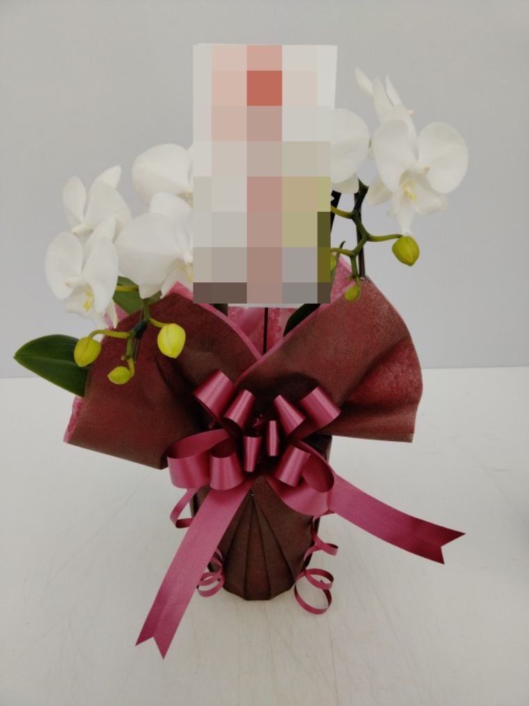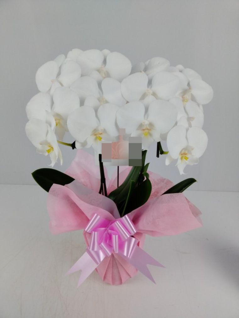 胡蝶蘭の実際にお届けした写真です。花秘書では発送前に写真をメールで送信致しますので安心して大切な顧客や取引様へのギフトにご利用頂けます。