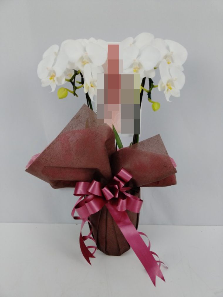 胡蝶蘭の実際にお届けした写真です。花秘書では発送前に写真をメールで送信致しますので安心して大切な顧客や取引様へのギフトにご利用頂けます。