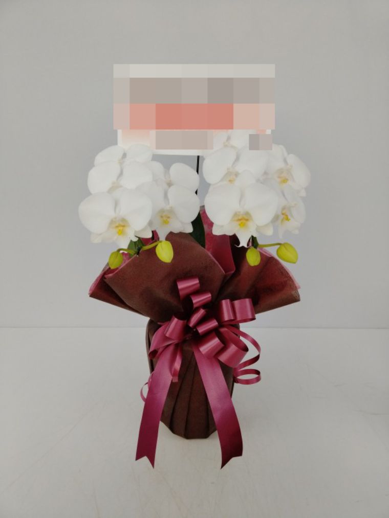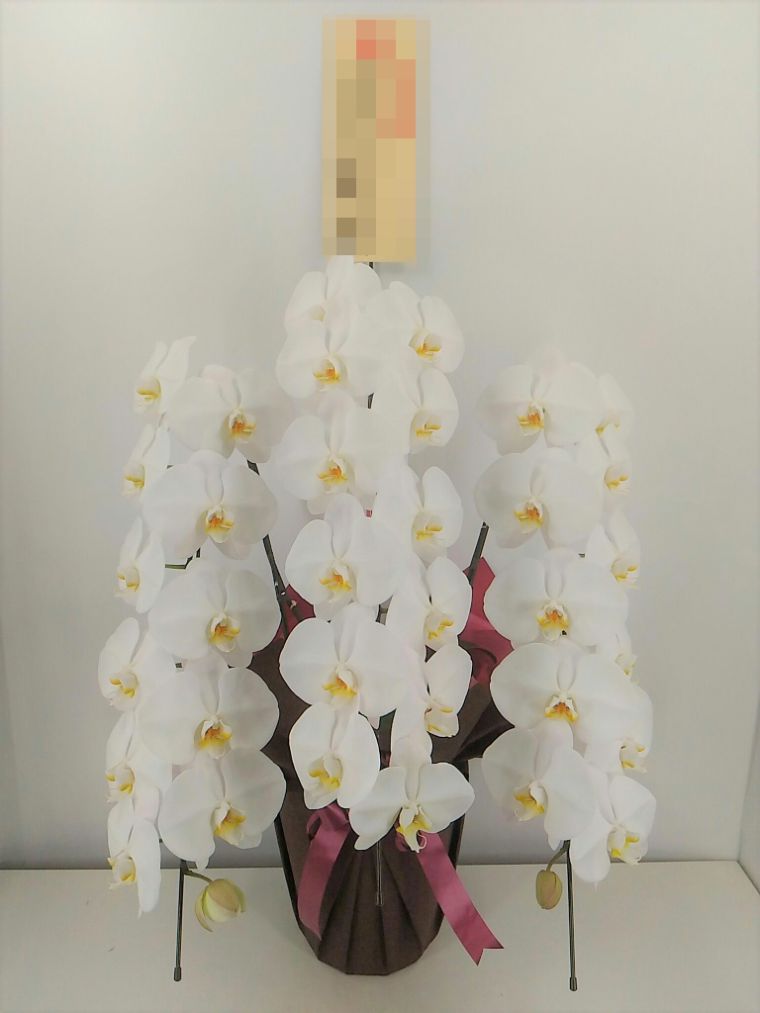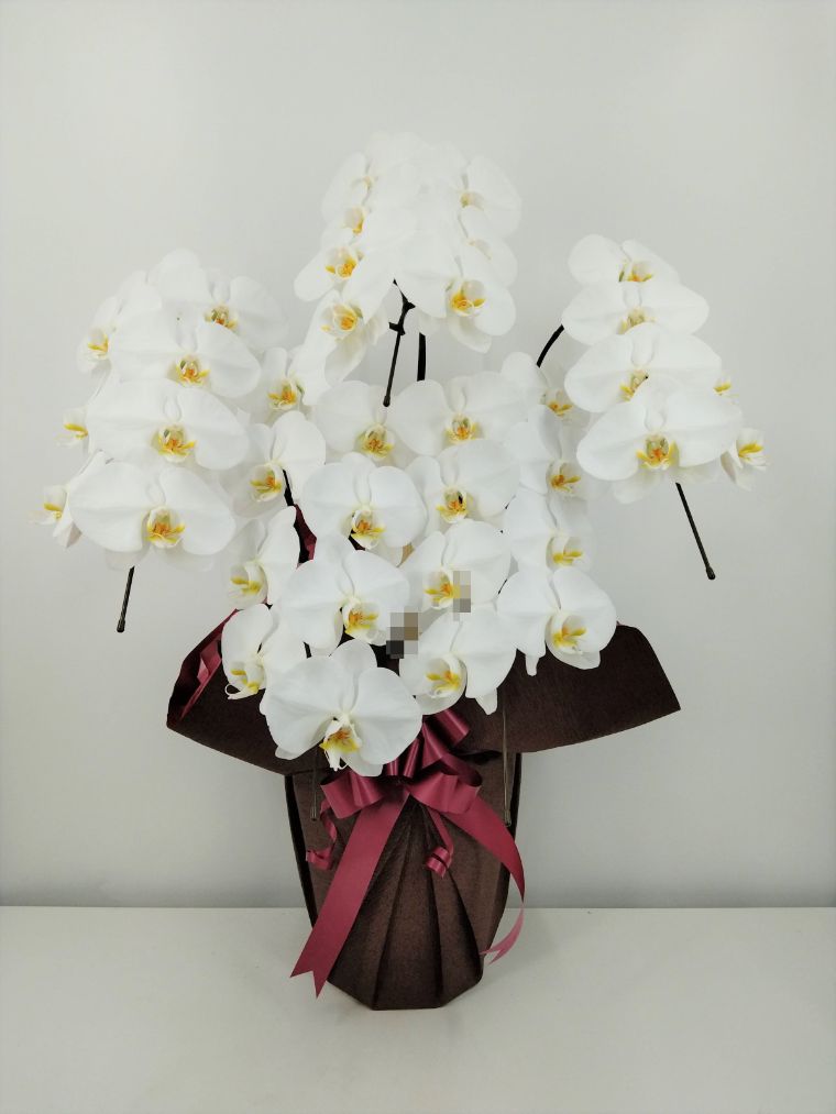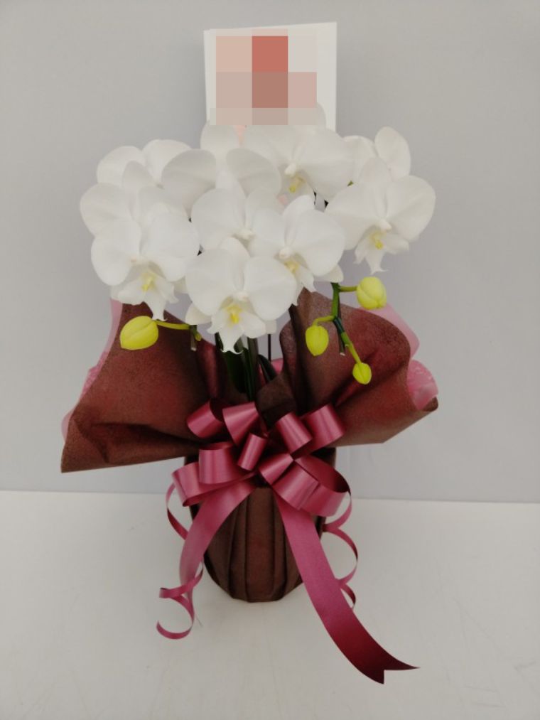 胡蝶蘭の実際にお届けした写真です。花秘書では発送前に写真をメールで送信致しますので安心して大切な顧客や取引様へのギフトにご利用頂けます。