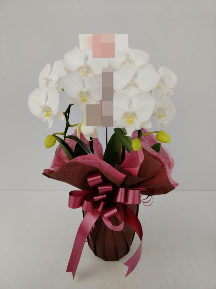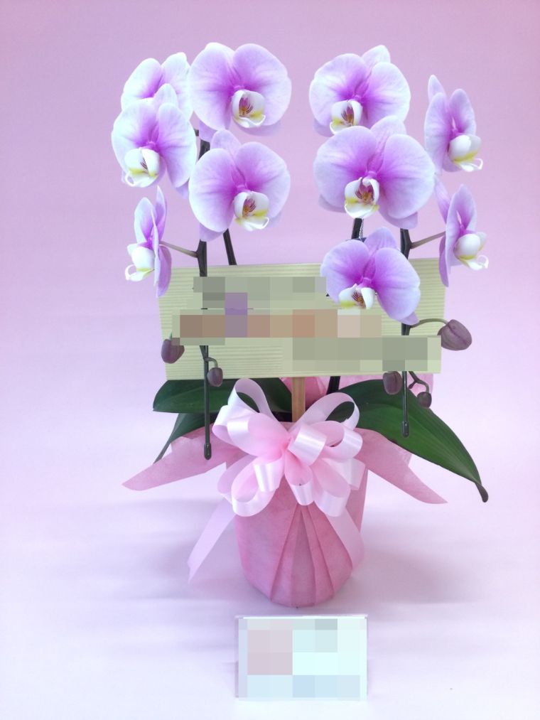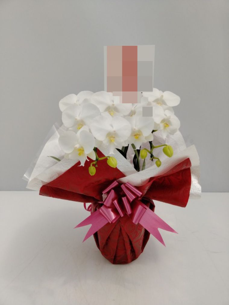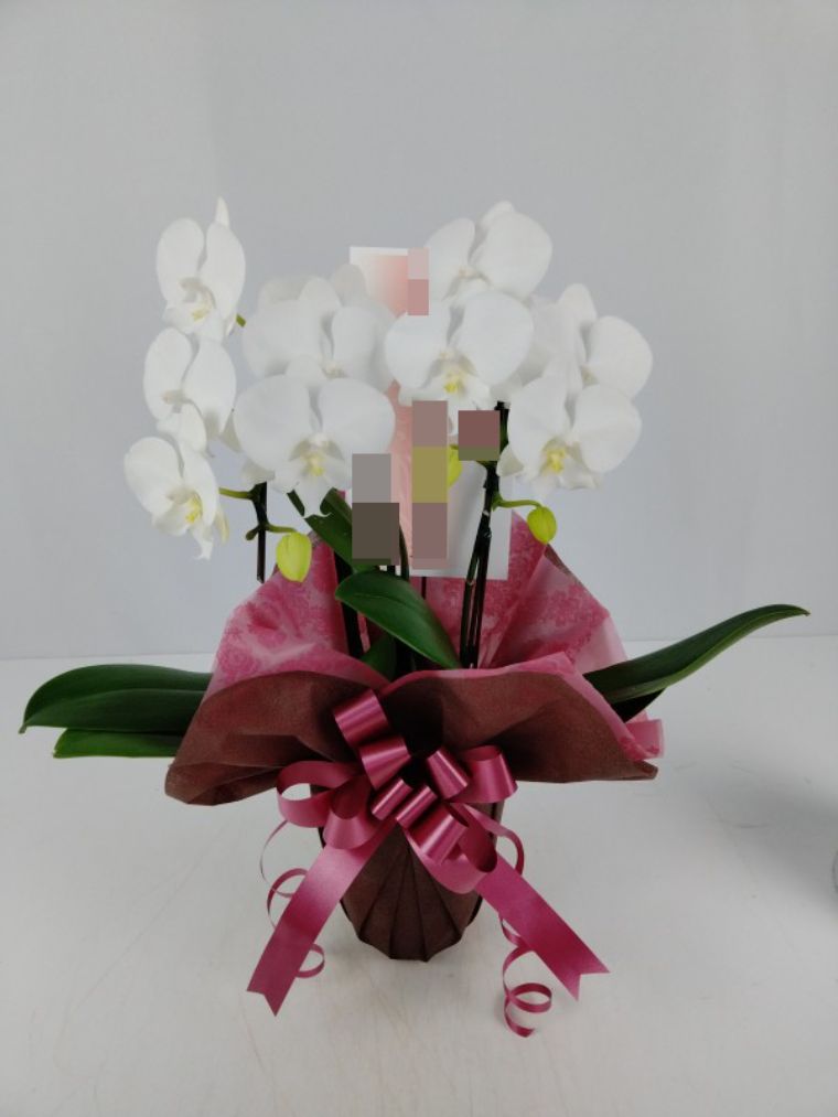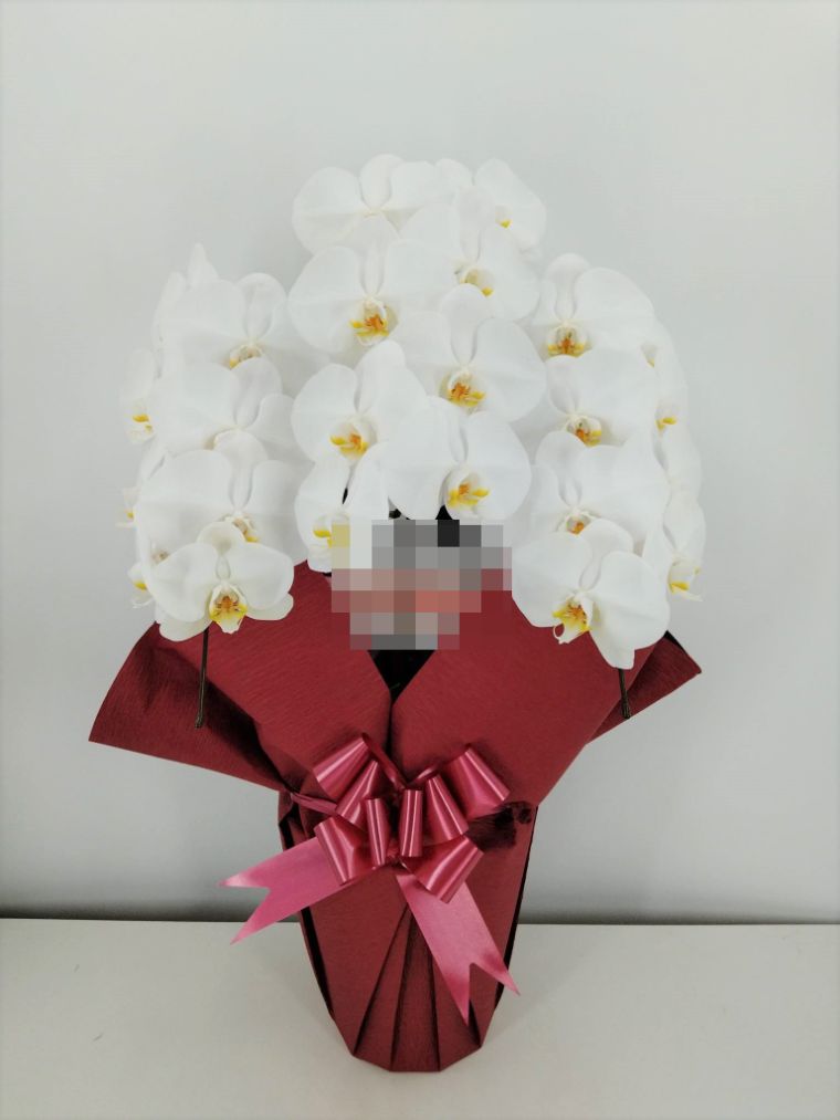 胡蝶蘭の実際にお届けした写真です。花秘書では発送前に写真をメールで送信致しますので安心して大切な顧客や取引様へのギフトにご利用頂けます。