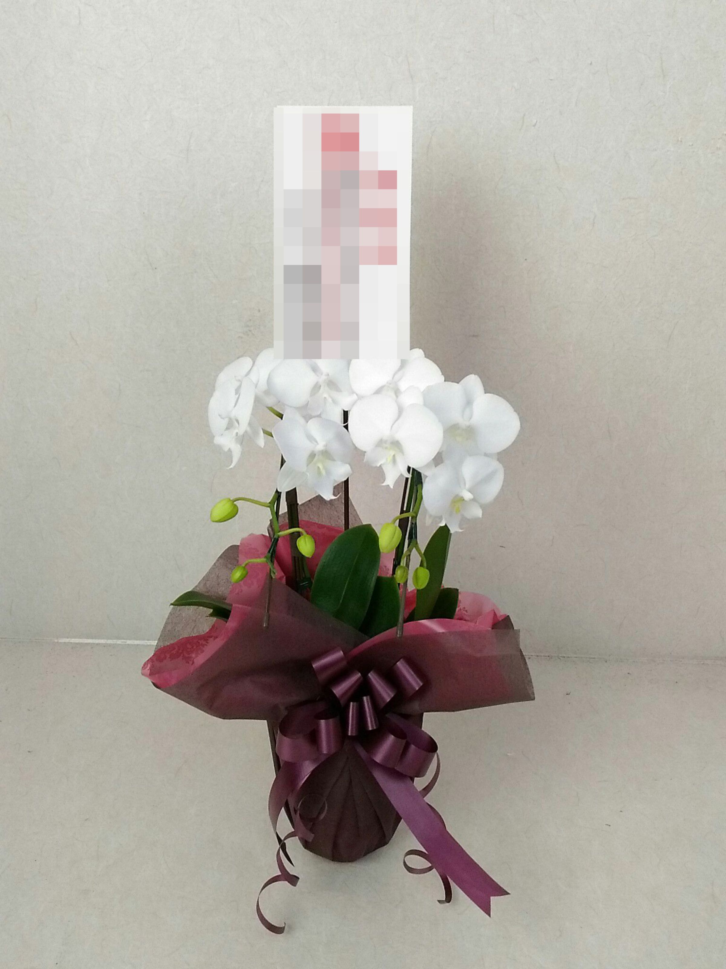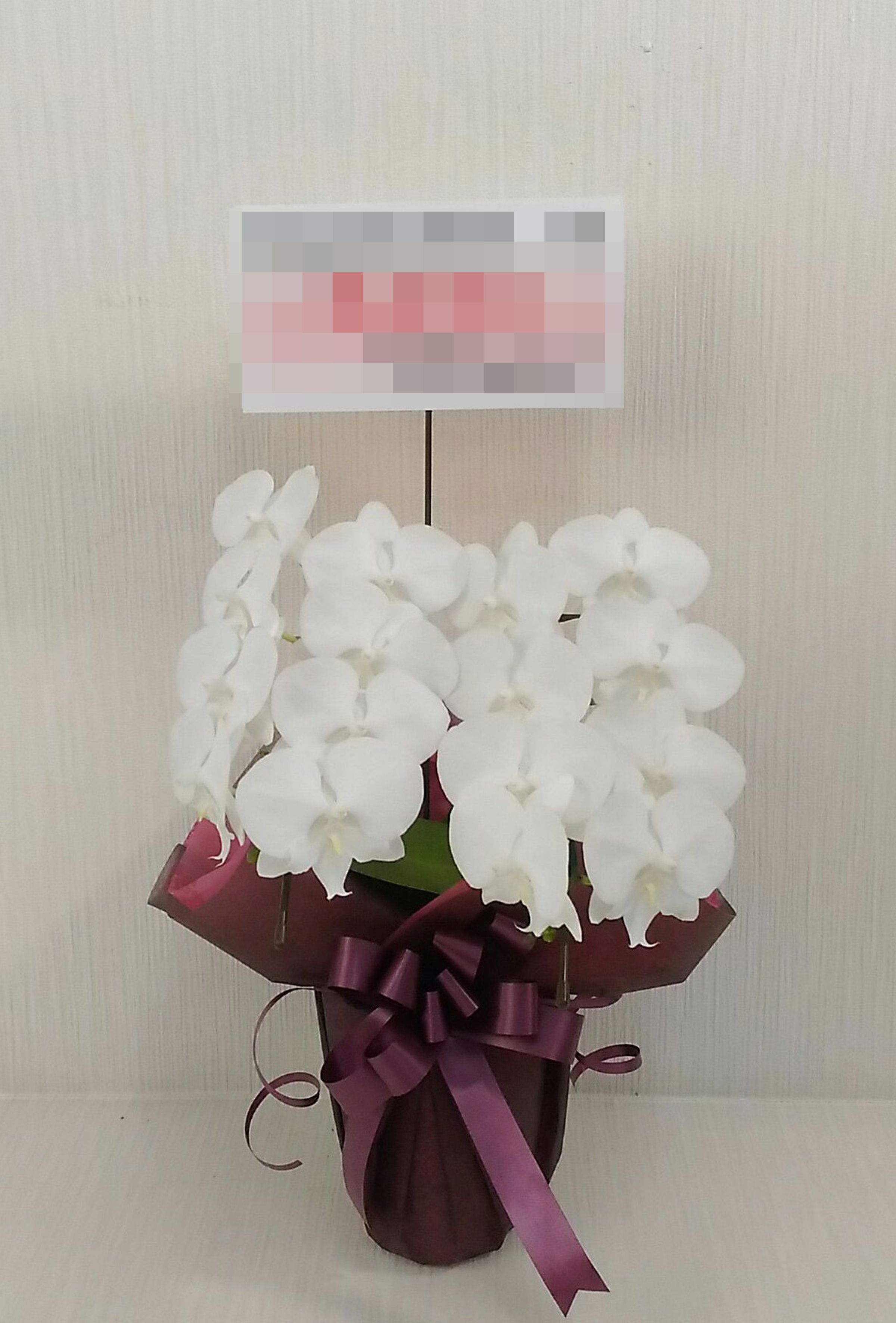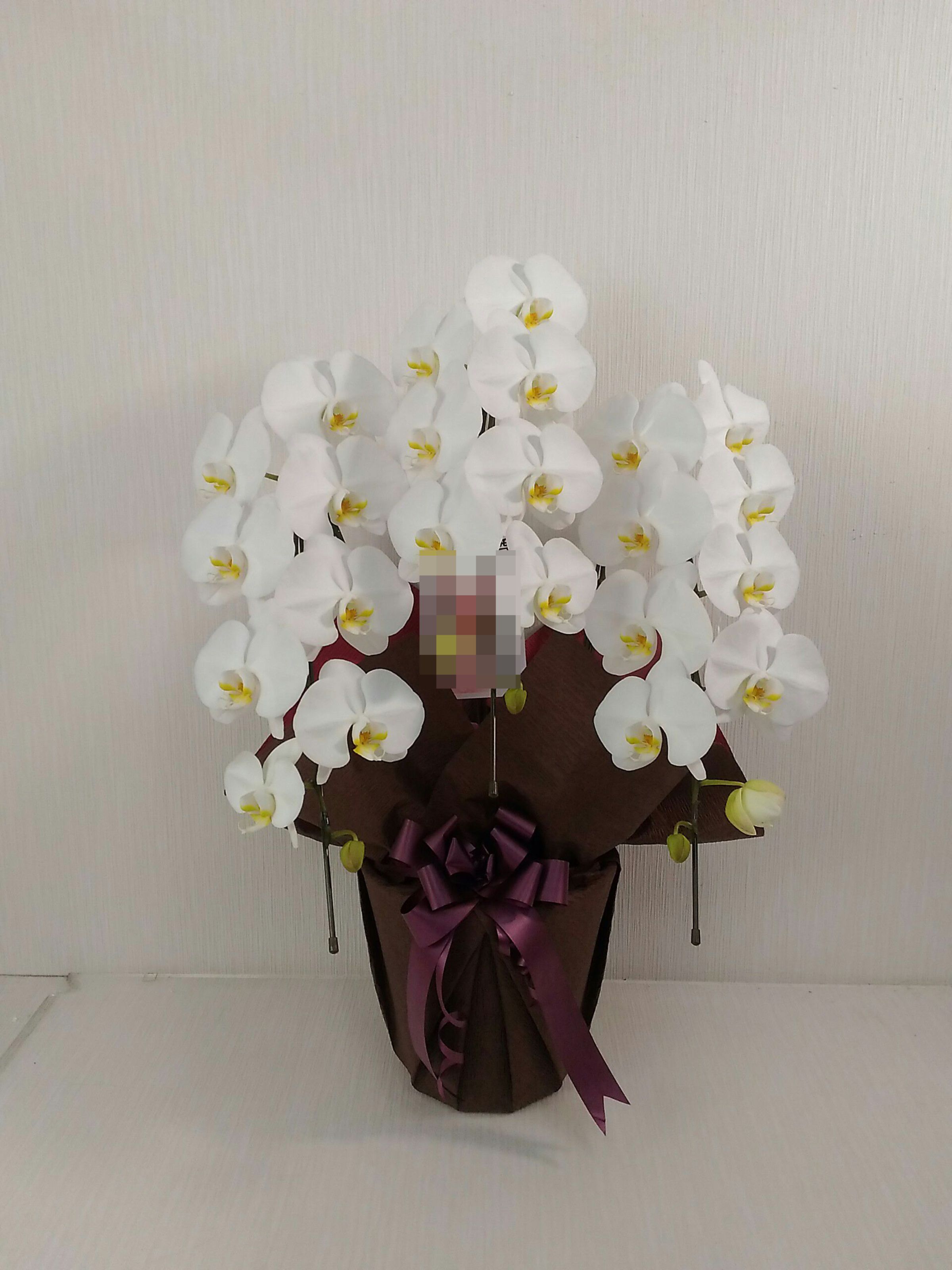 胡蝶蘭の実際にお届けした写真です。花秘書では発送前に写真をメールで送信致しますので安心して大切な顧客や取引様へのギフトにご利用頂けます。