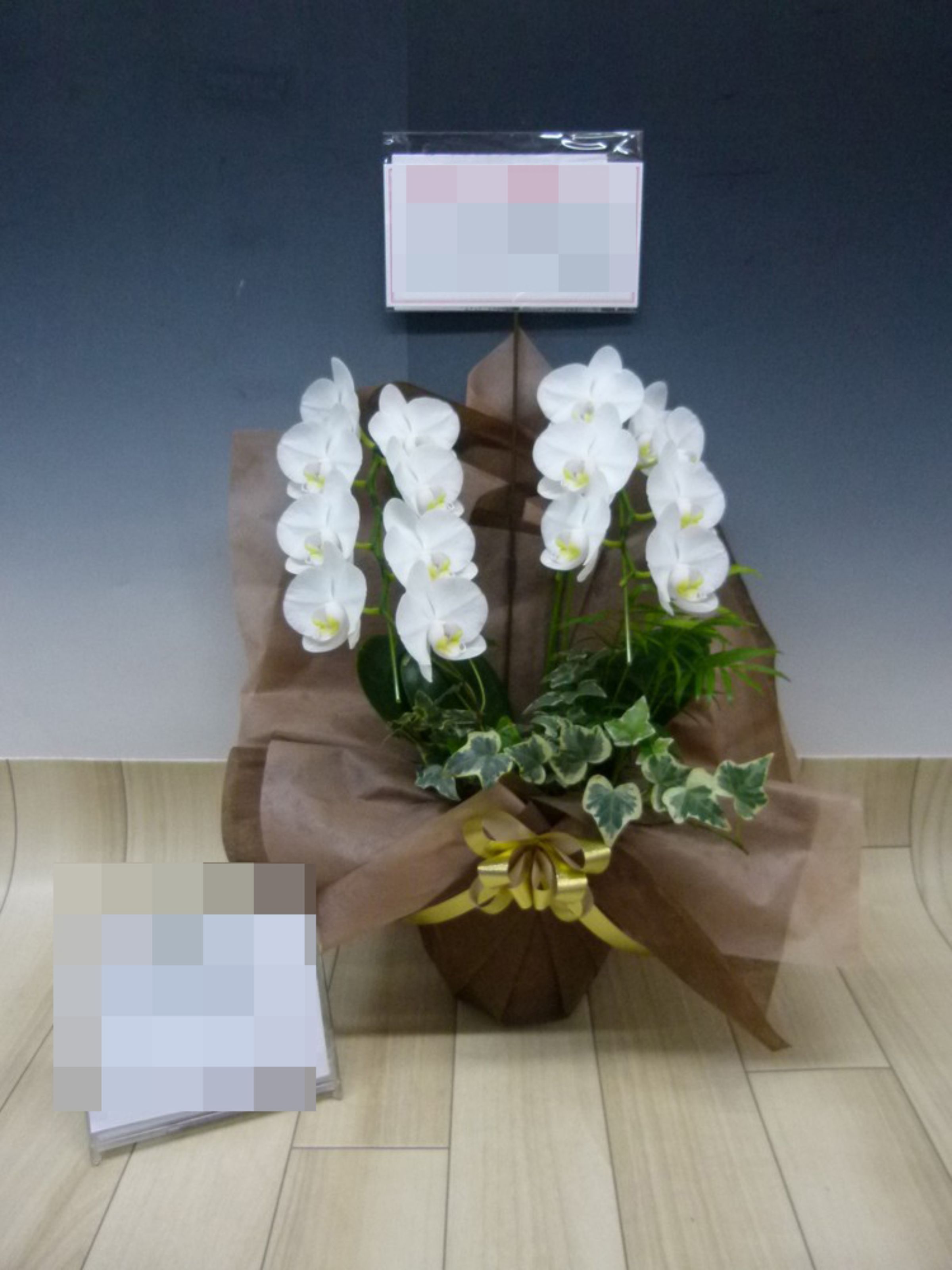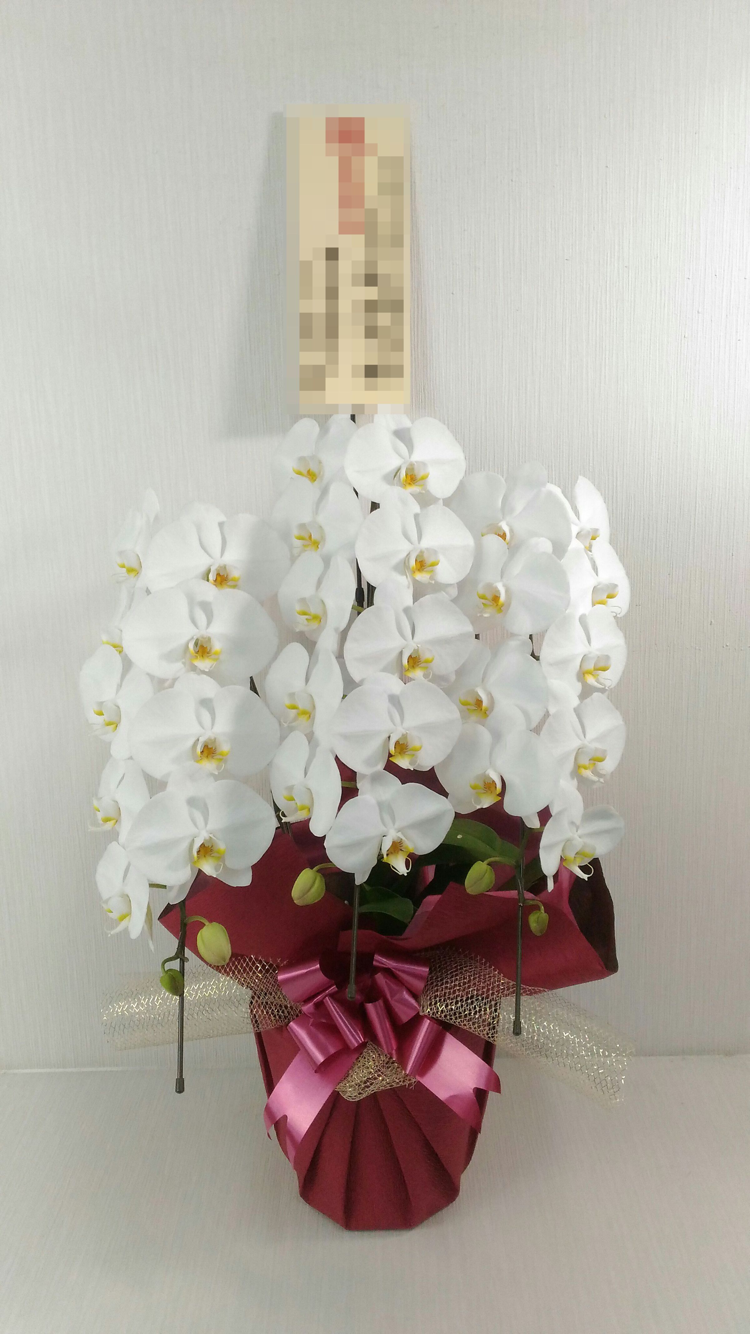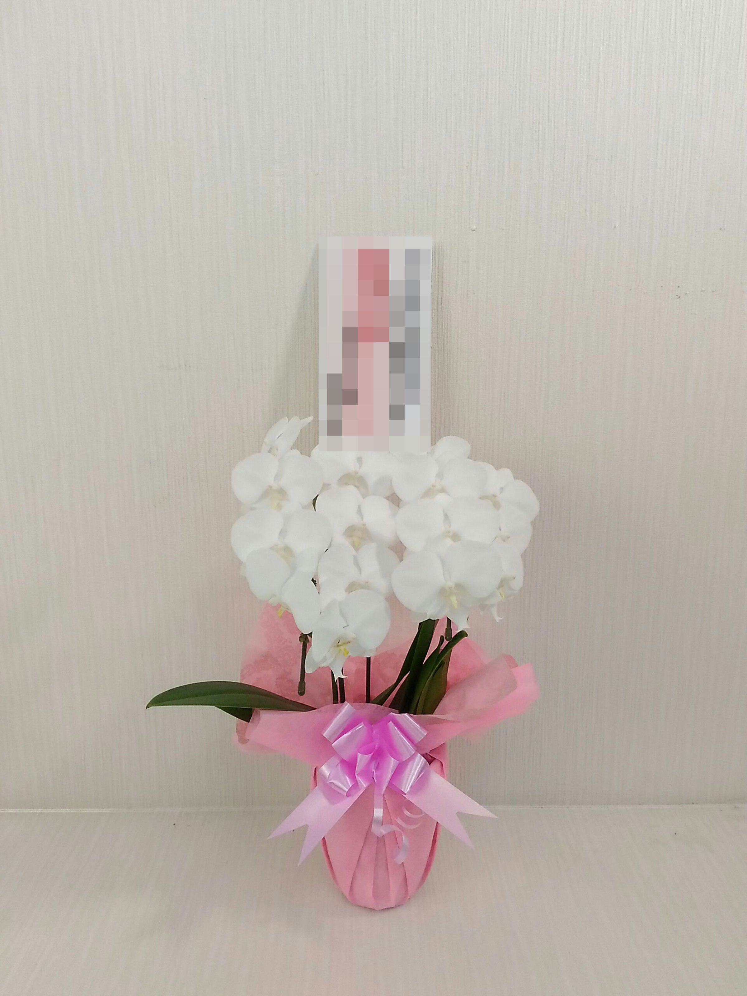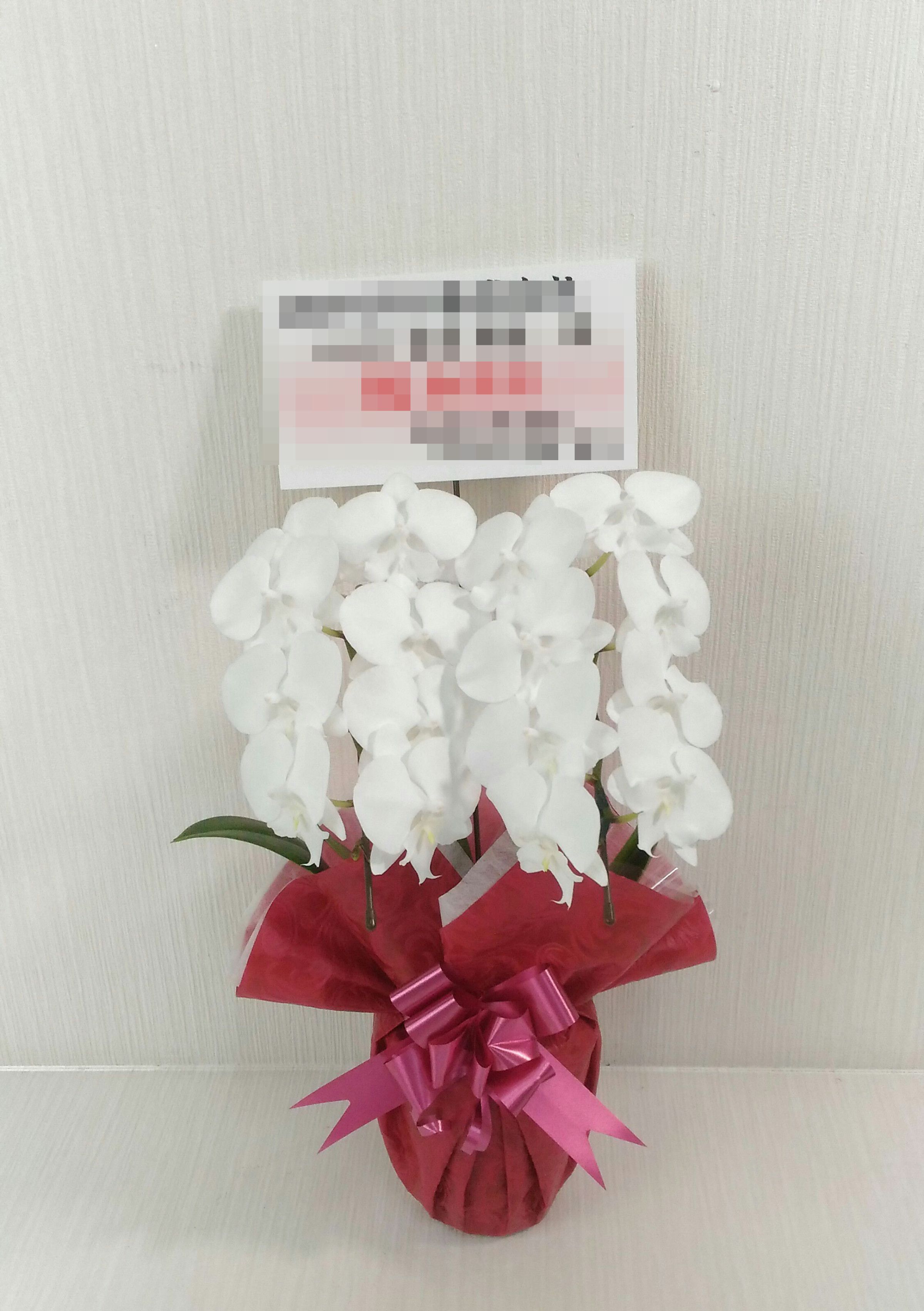 胡蝶蘭の実際にお届けした写真です。花秘書では発送前に写真をメールで送信致しますので安心して大切な顧客や取引様へのギフトにご利用頂けます。