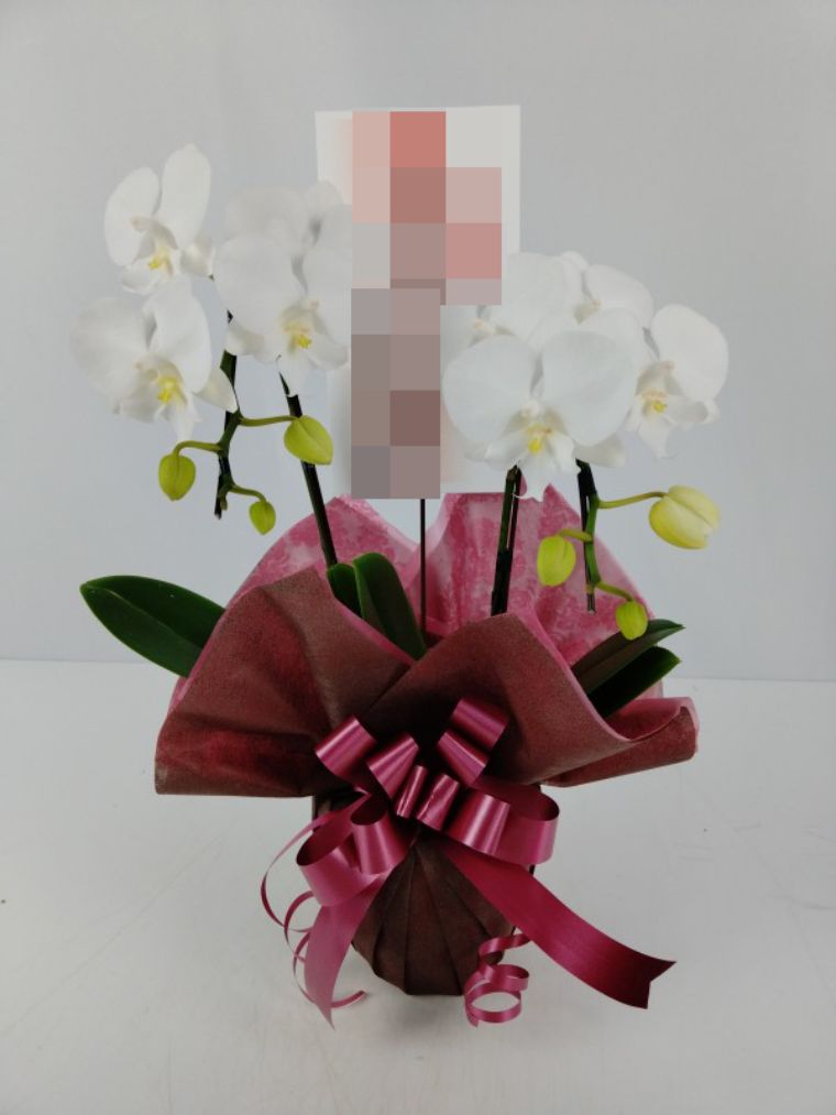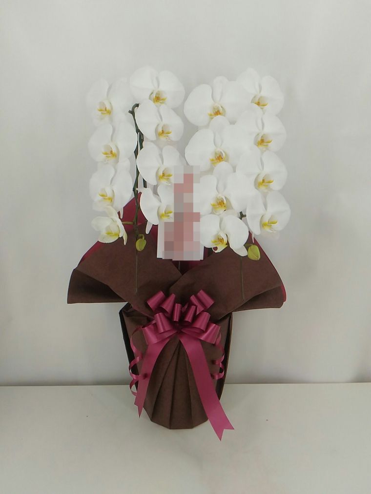 胡蝶蘭の実際にお届けした写真です。花秘書では発送前に写真をメールで送信致しますので安心して大切な顧客や取引様へのギフトにご利用頂けます。