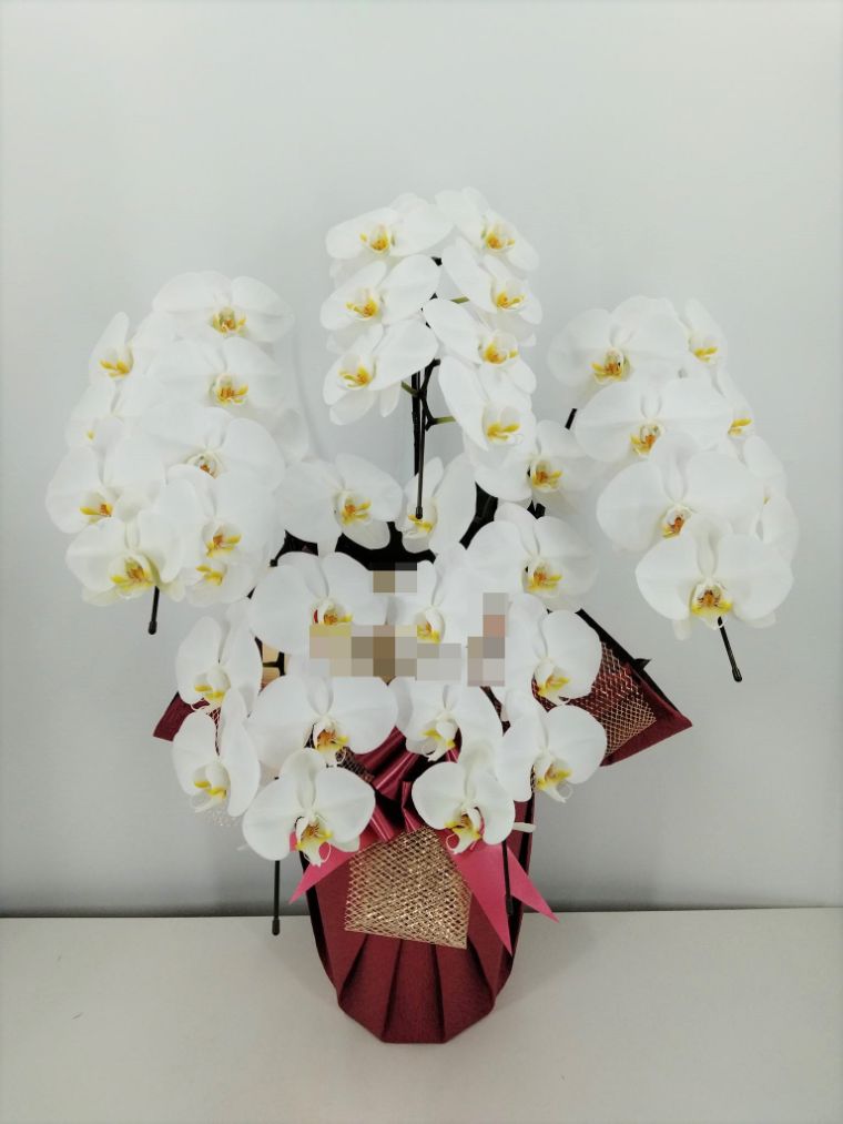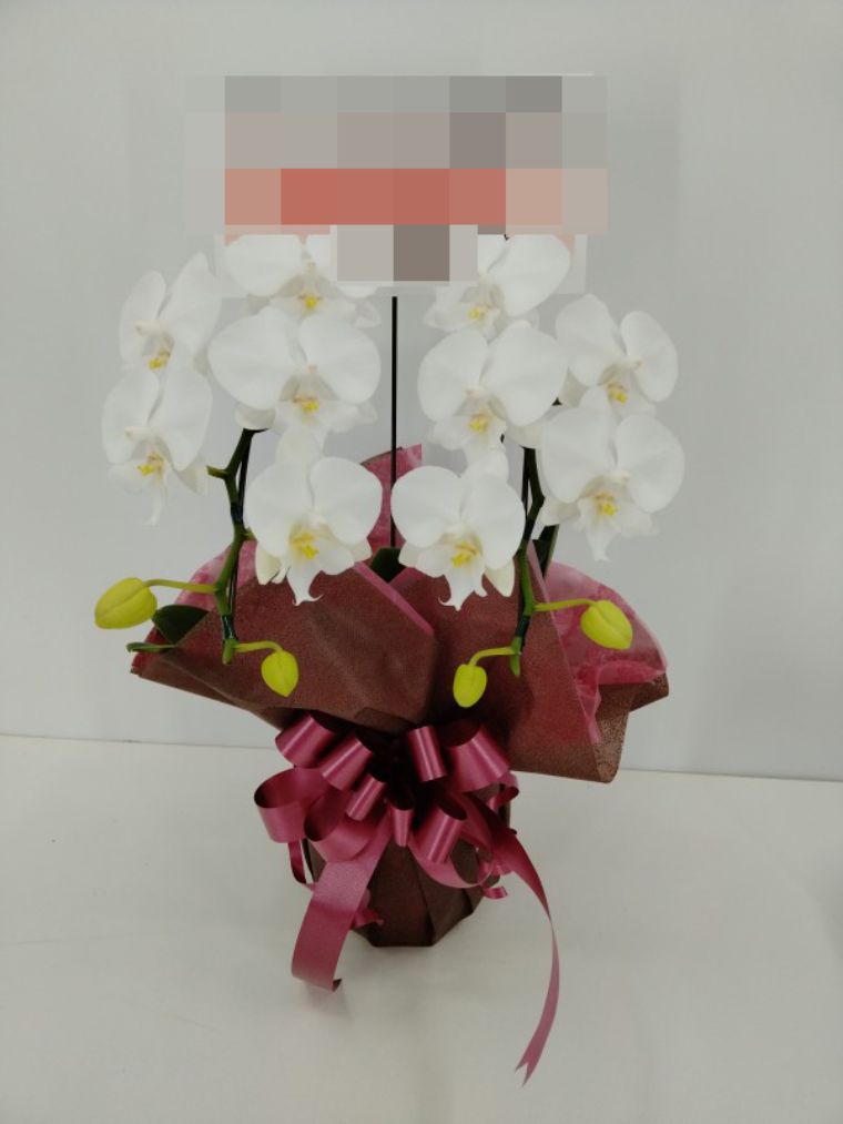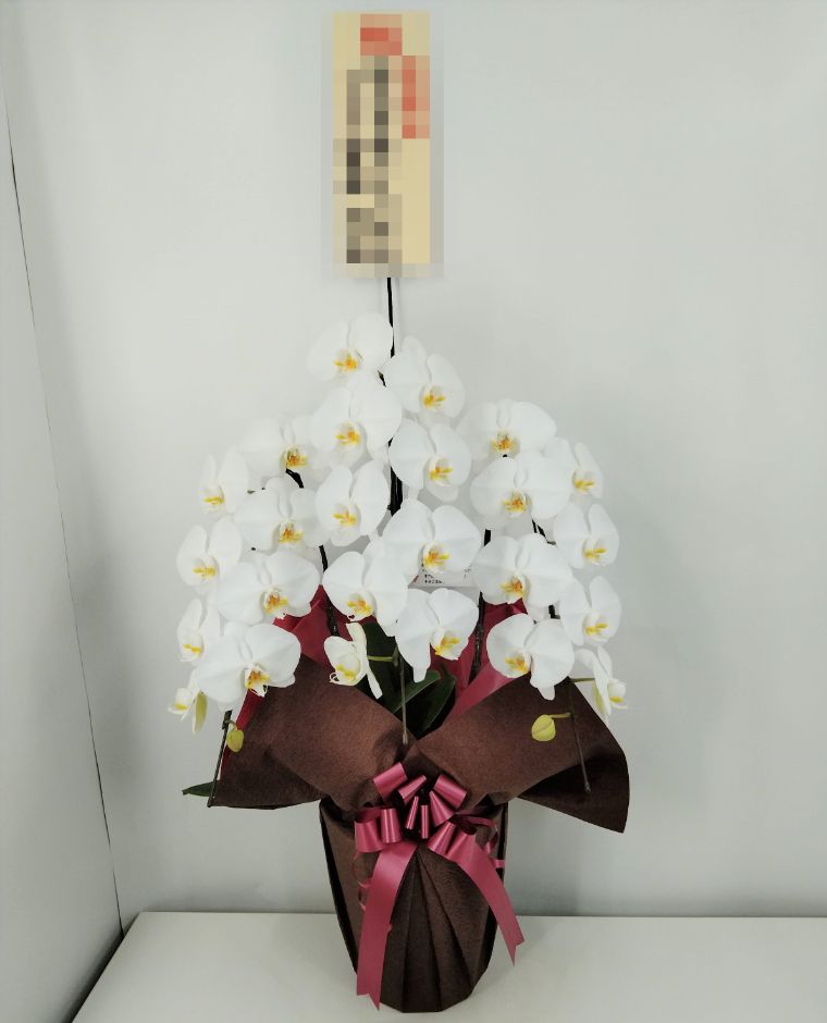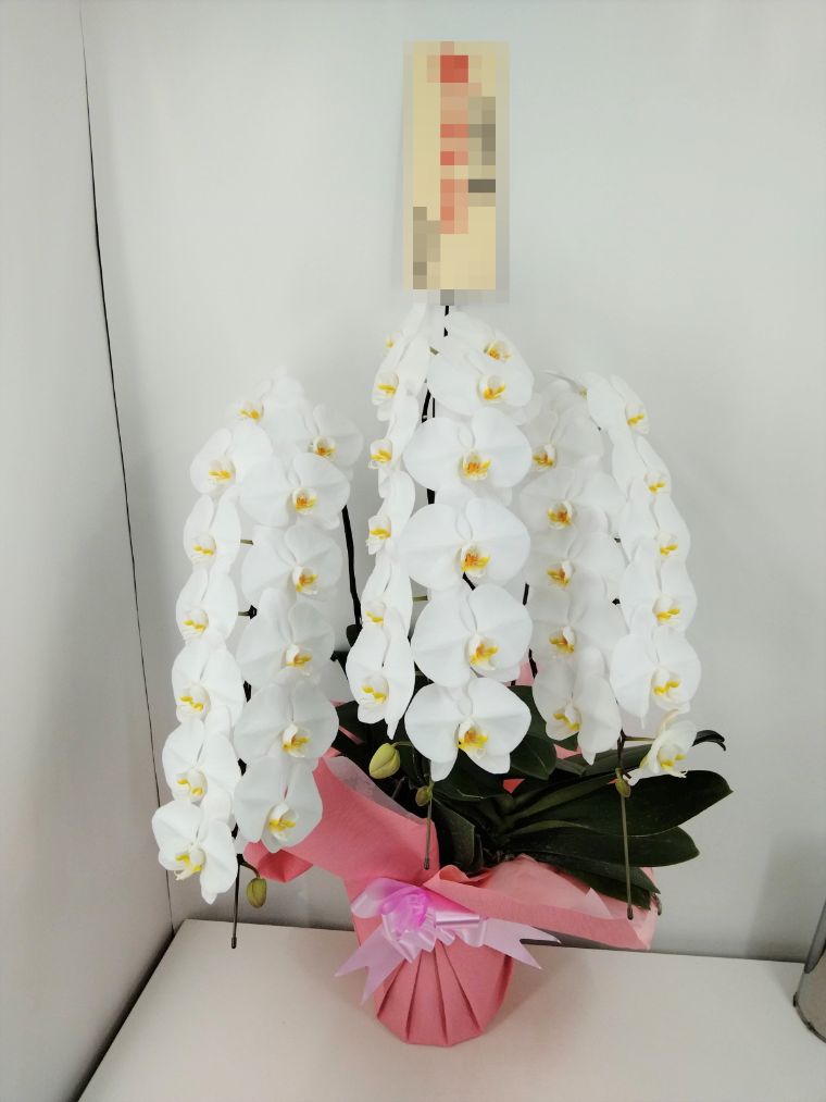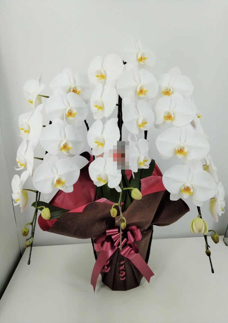 胡蝶蘭の実際にお届けした写真です。花秘書では発送前に写真をメールで送信致しますので安心して大切な顧客や取引様へのギフトにご利用頂けます。