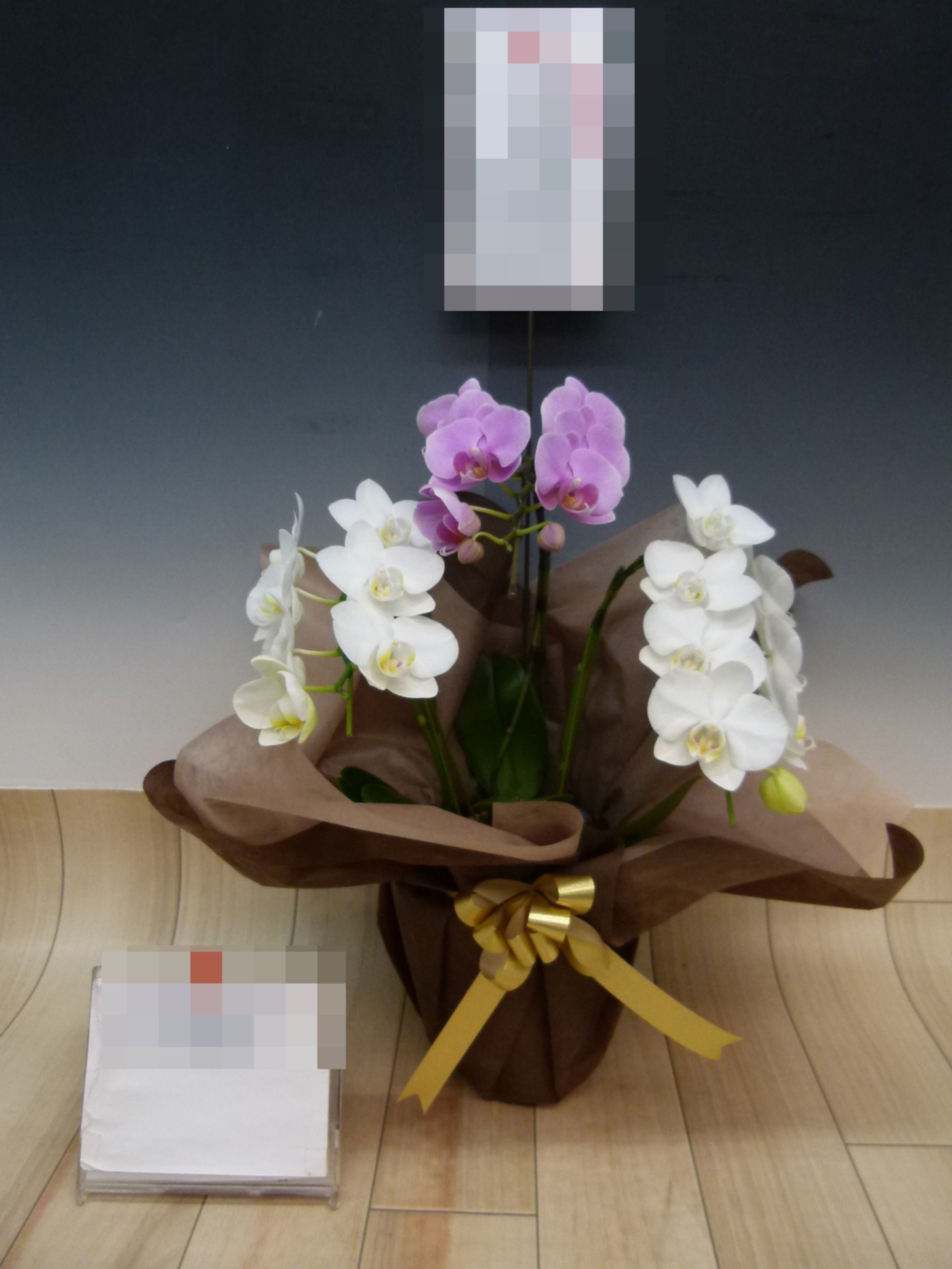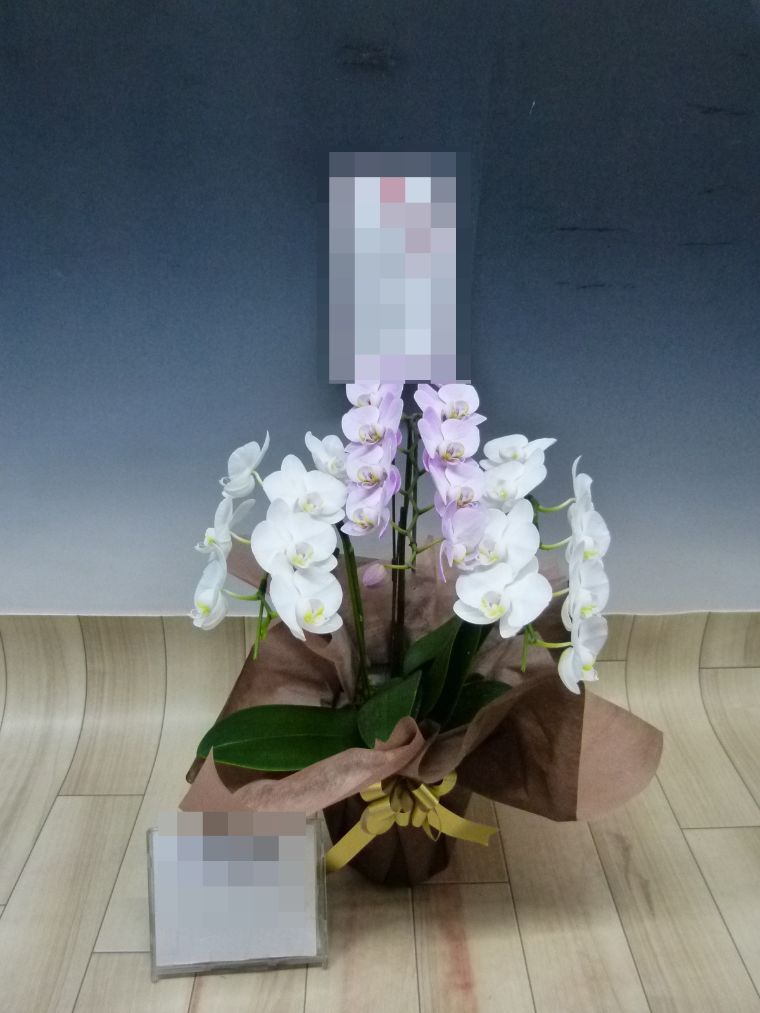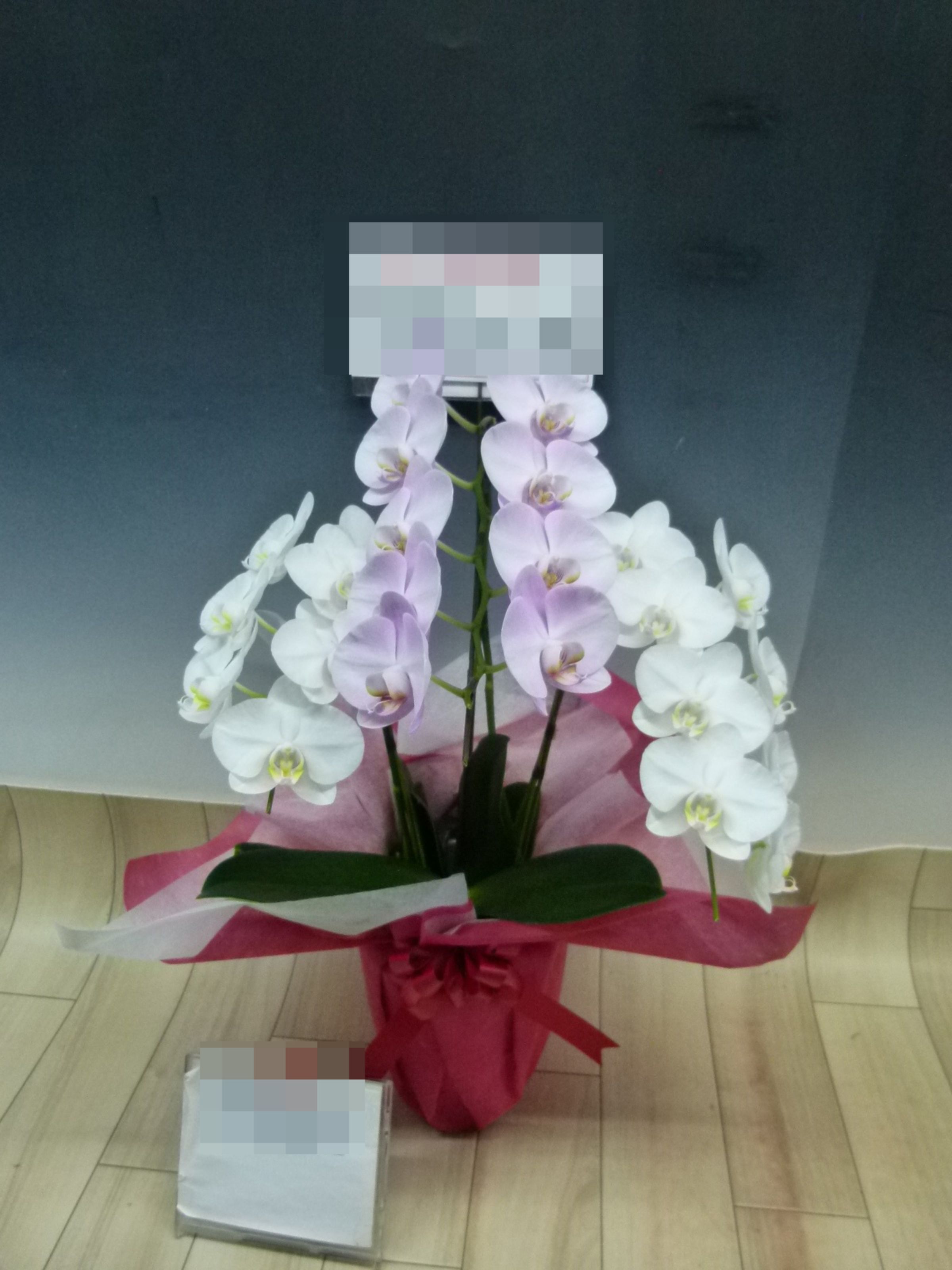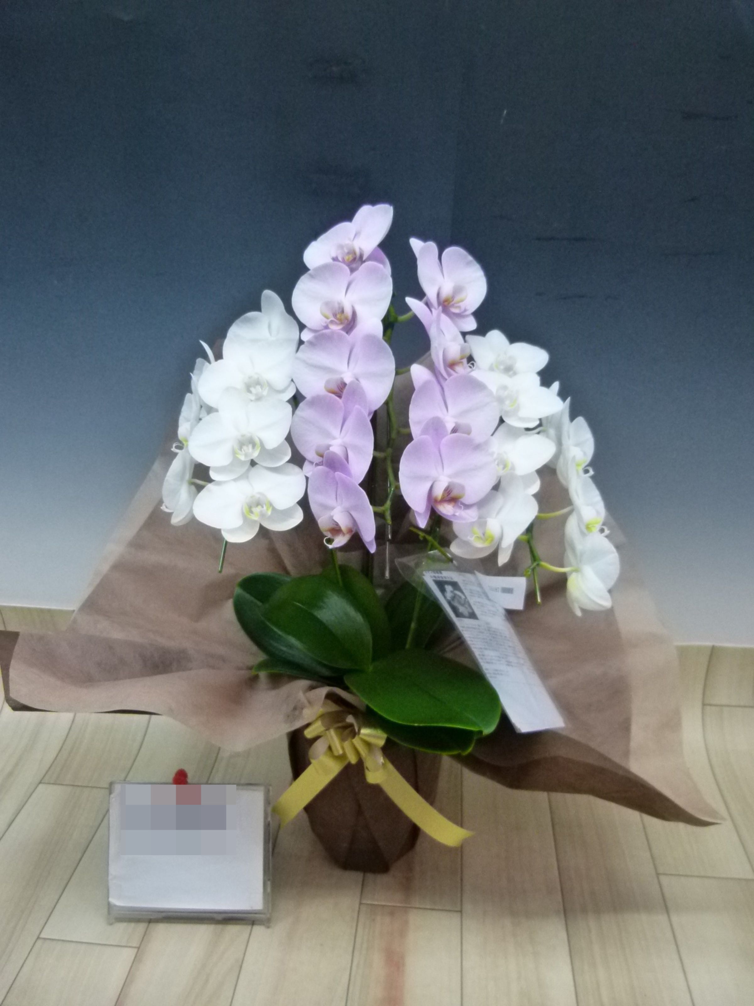 胡蝶蘭の実際にお届けした写真です。花秘書では発送前に写真をメールで送信致しますので安心して大切な顧客や取引様へのギフトにご利用頂けます。
