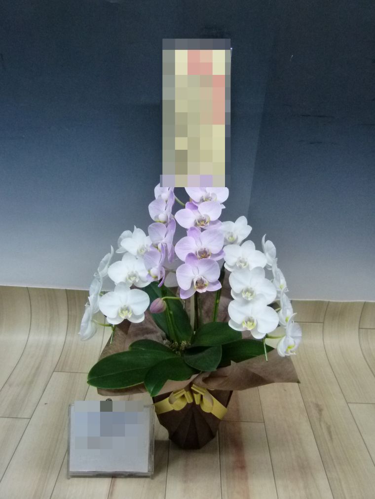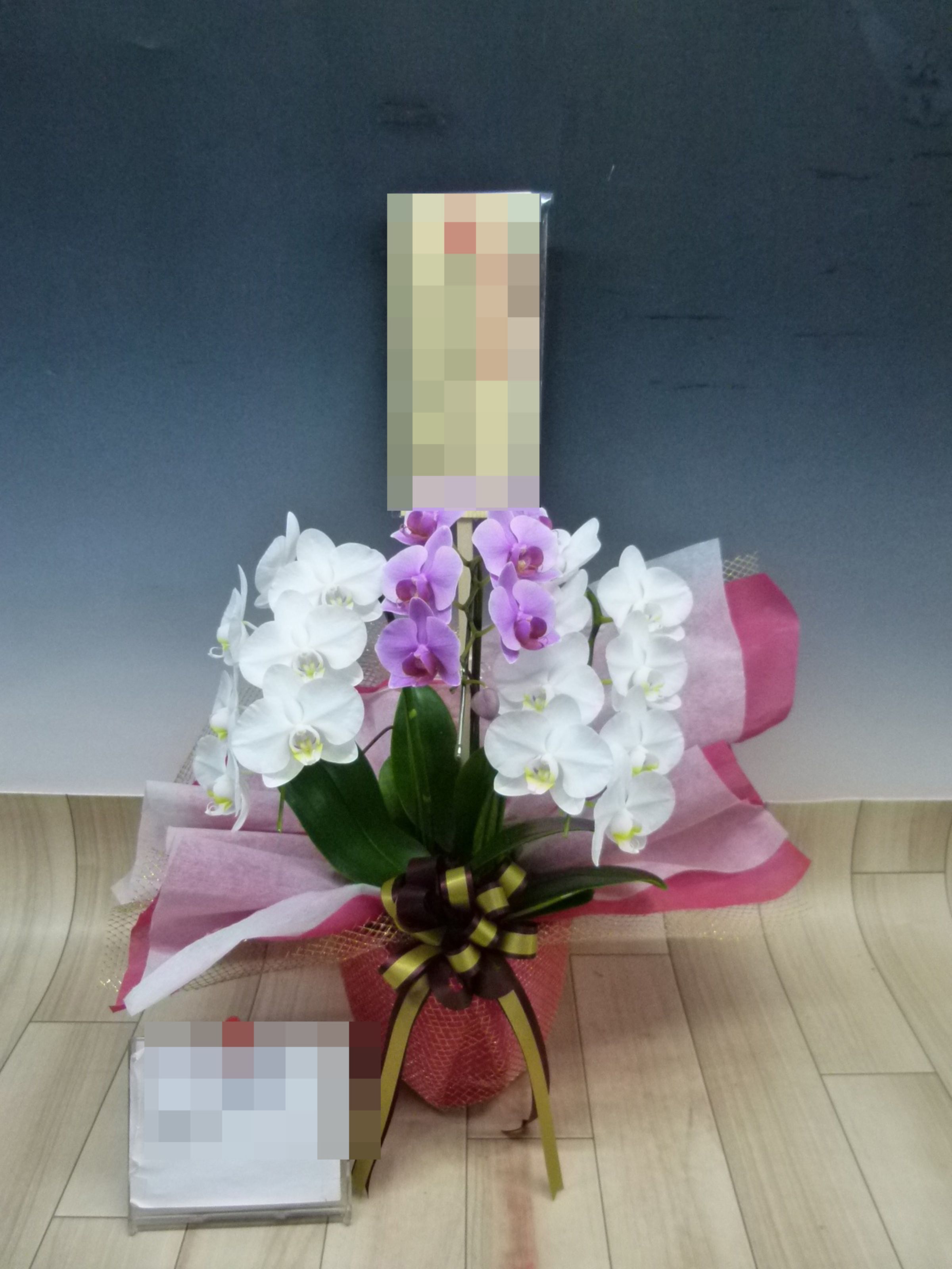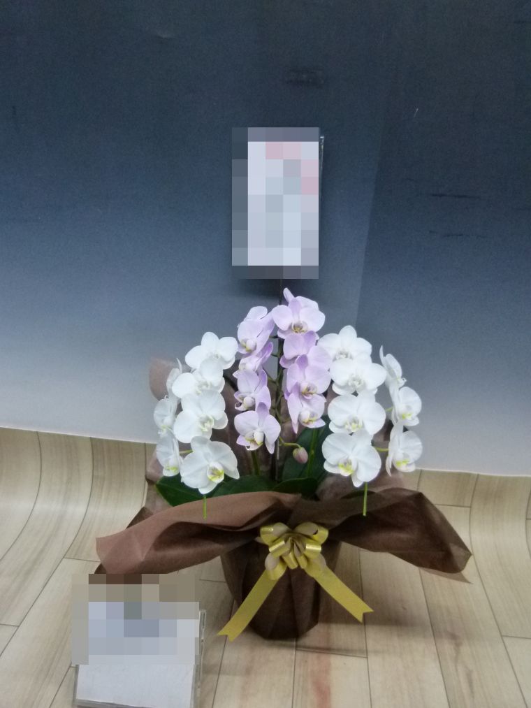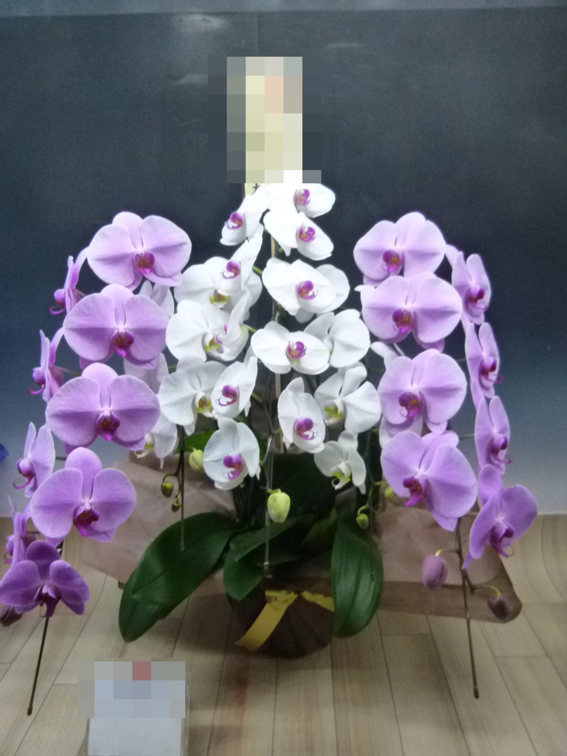 胡蝶蘭の実際にお届けした写真です。花秘書では発送前に写真をメールで送信致しますので安心して大切な顧客や取引様へのギフトにご利用頂けます。