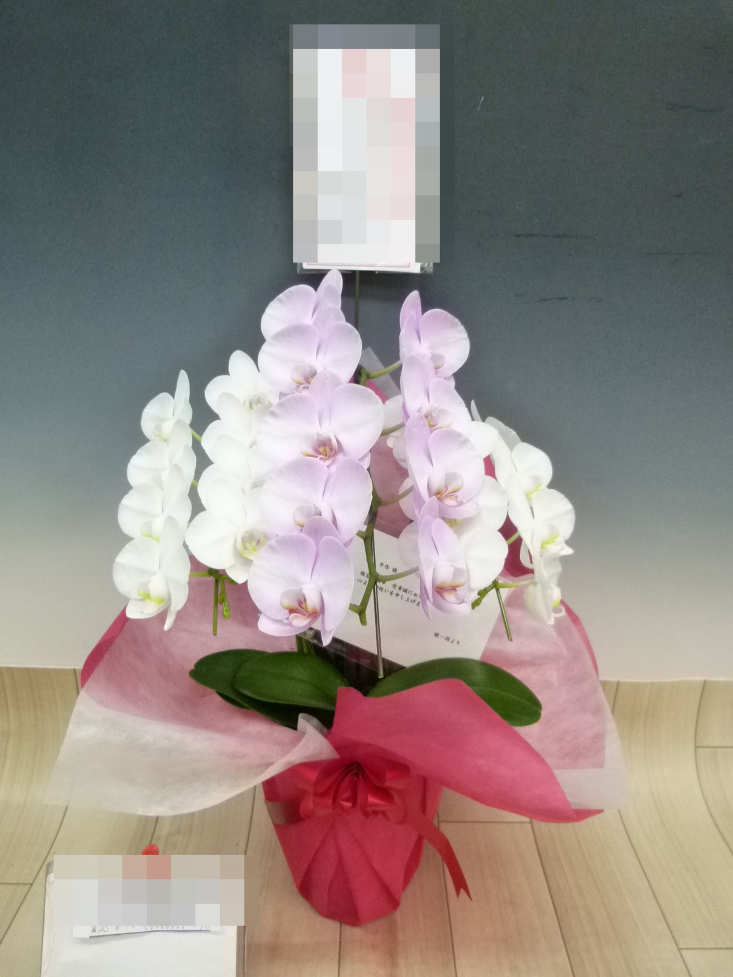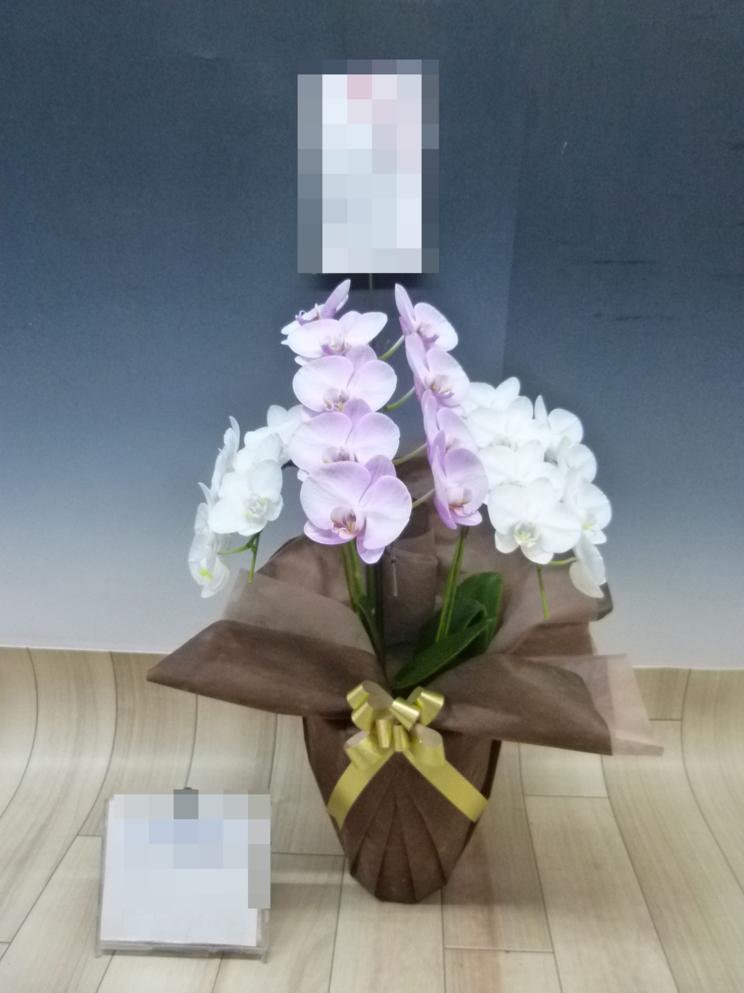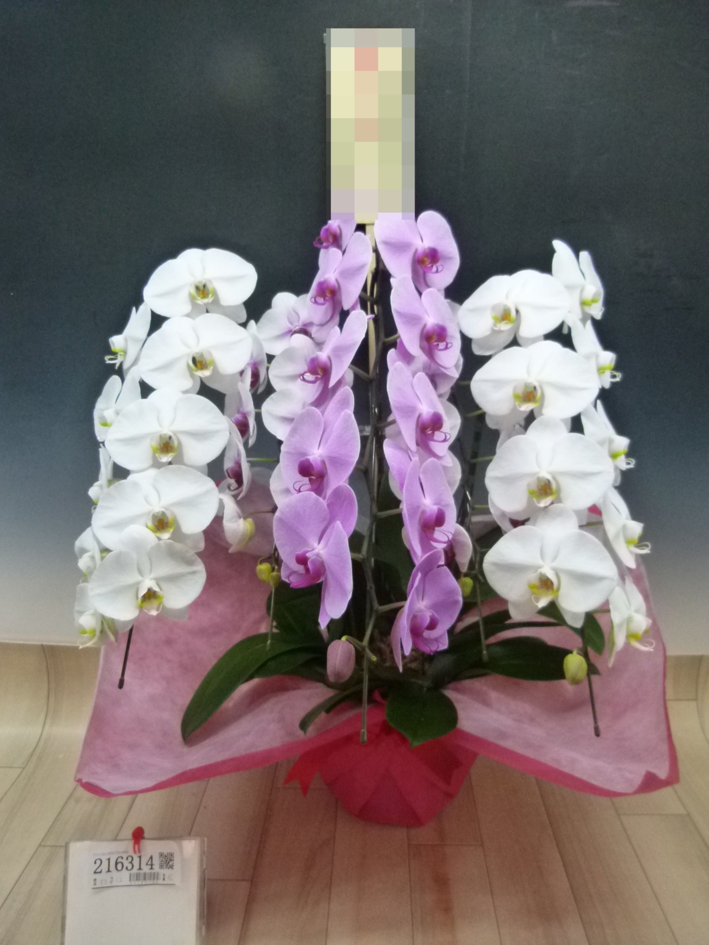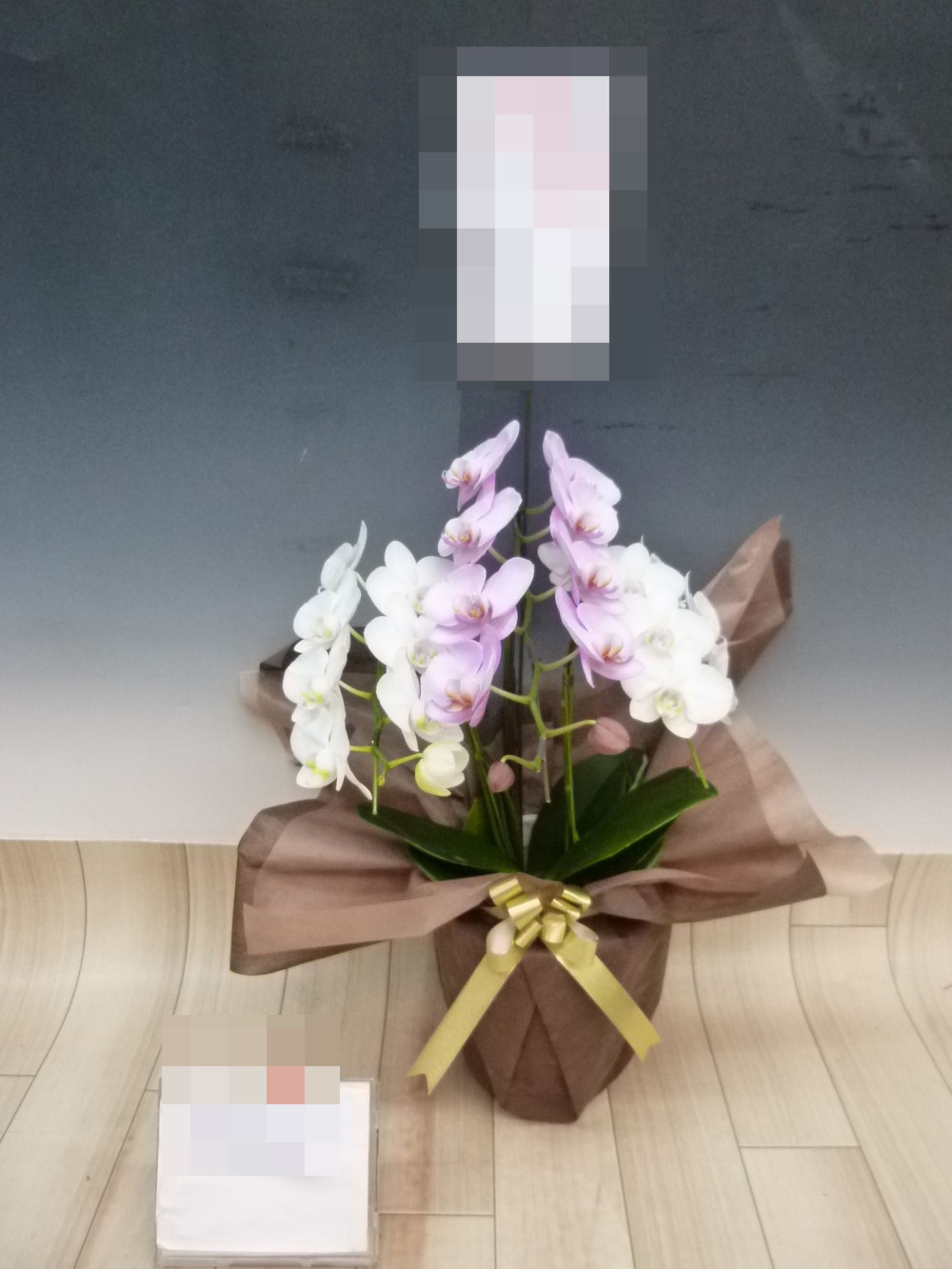 胡蝶蘭の実際にお届けした写真です。花秘書では発送前に写真をメールで送信致しますので安心して大切な顧客や取引様へのギフトにご利用頂けます。