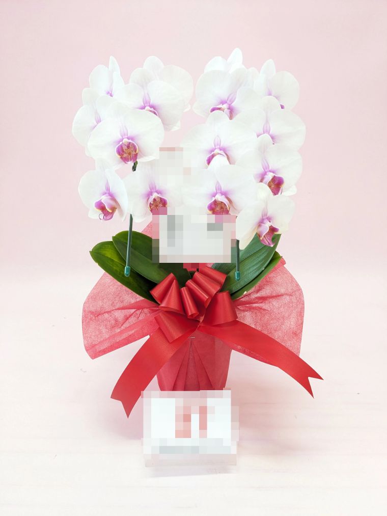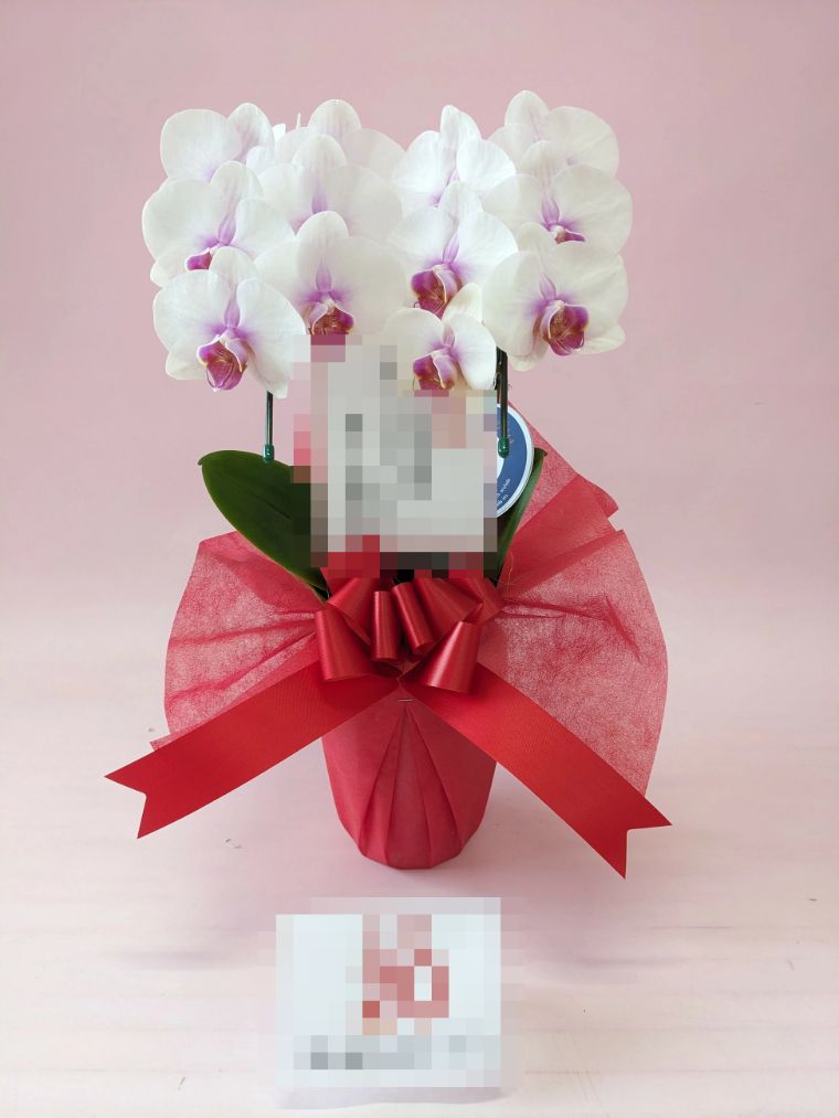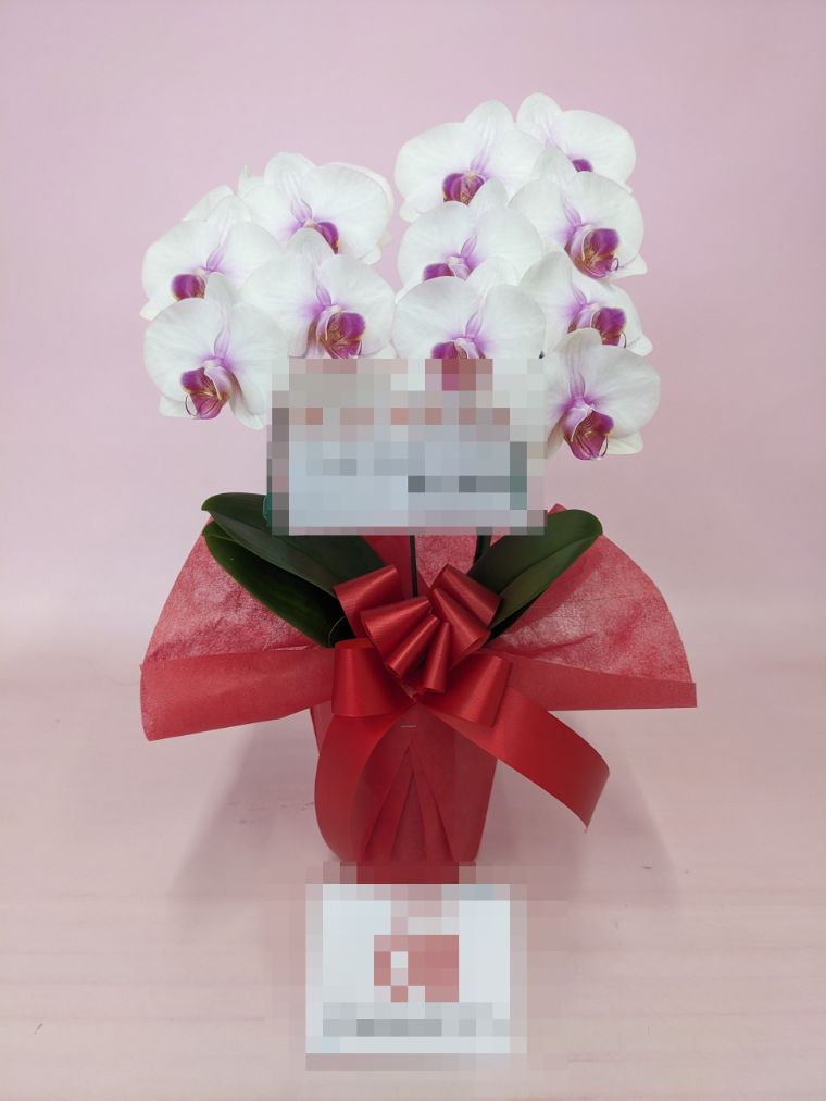 胡蝶蘭の実際にお届けした写真です。花秘書では発送前に写真をメールで送信致しますので安心して大切な顧客や取引様へのギフトにご利用頂けます。