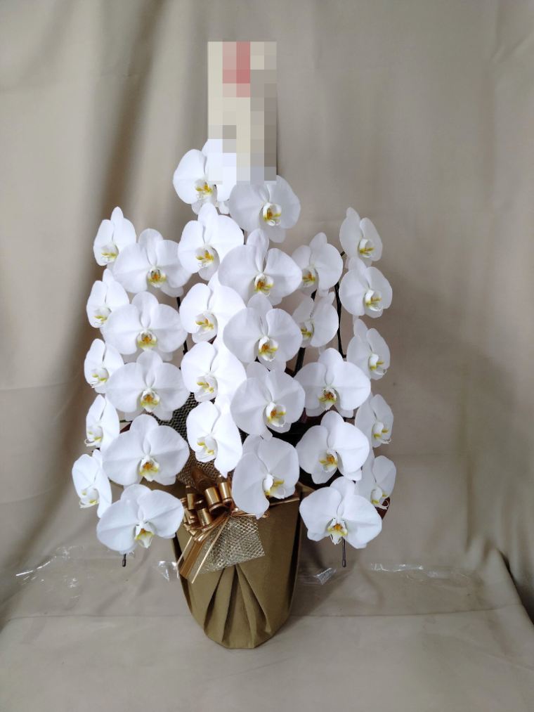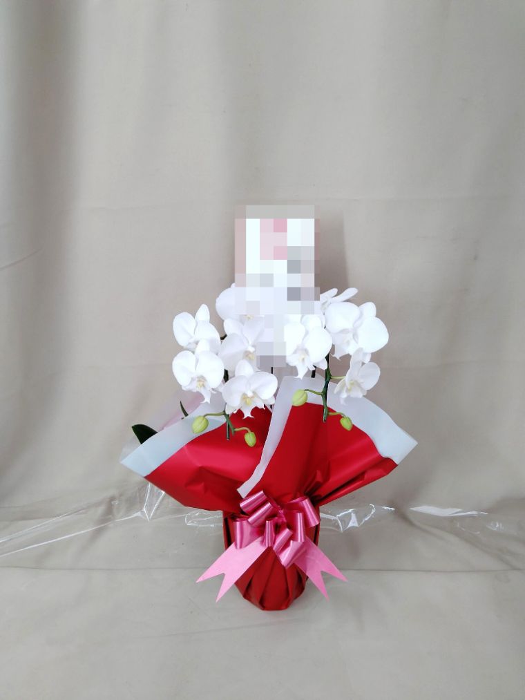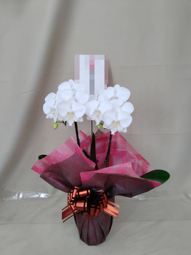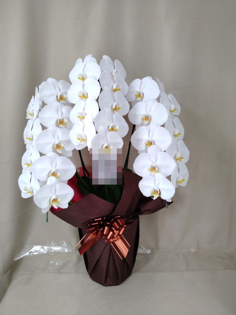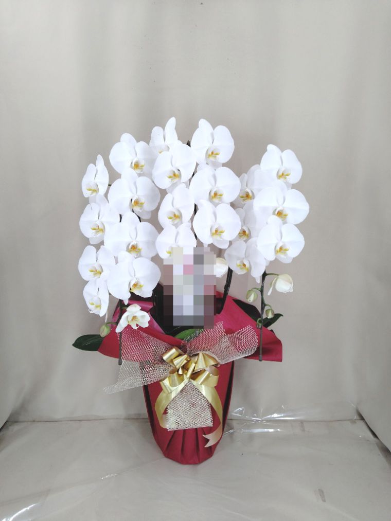 胡蝶蘭の実際にお届けした写真です。花秘書では発送前に写真をメールで送信致しますので安心して大切な顧客や取引様へのギフトにご利用頂けます。