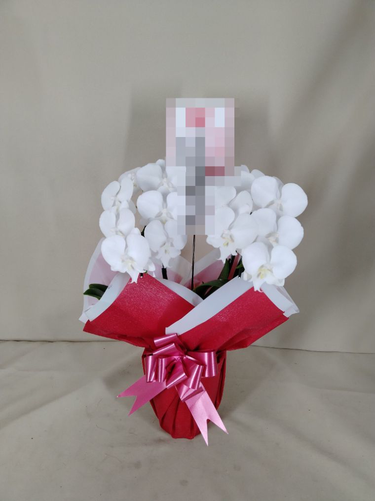 胡蝶蘭の実際にお届けした写真です。花秘書では発送前に写真をメールで送信致しますので安心して大切な顧客や取引様へのギフトにご利用頂けます。