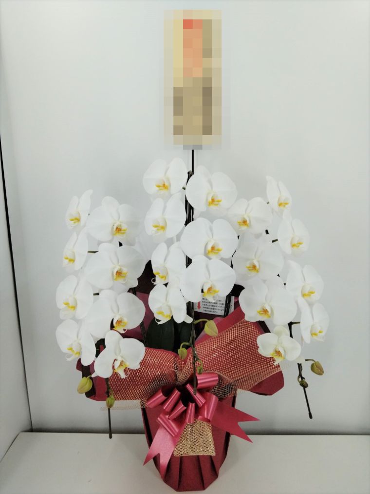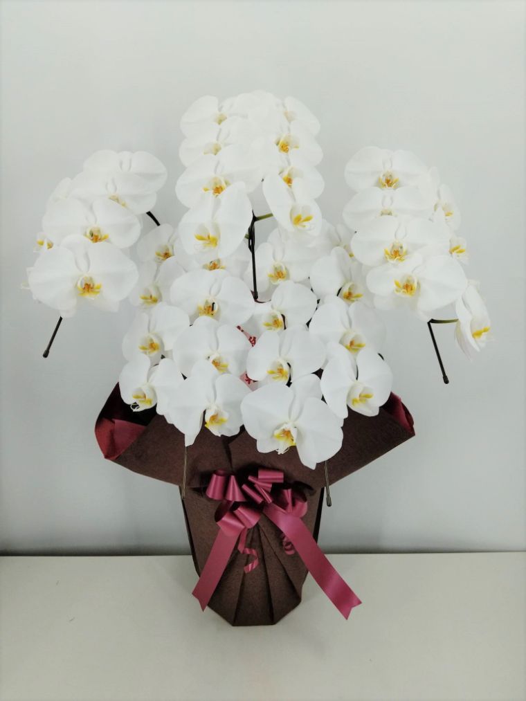 胡蝶蘭の実際にお届けした写真です。花秘書では発送前に写真をメールで送信致しますので安心して大切な顧客や取引様へのギフトにご利用頂けます。