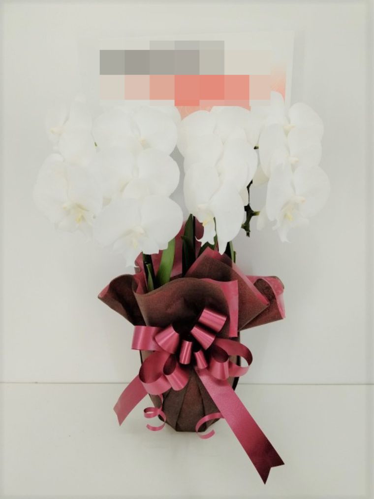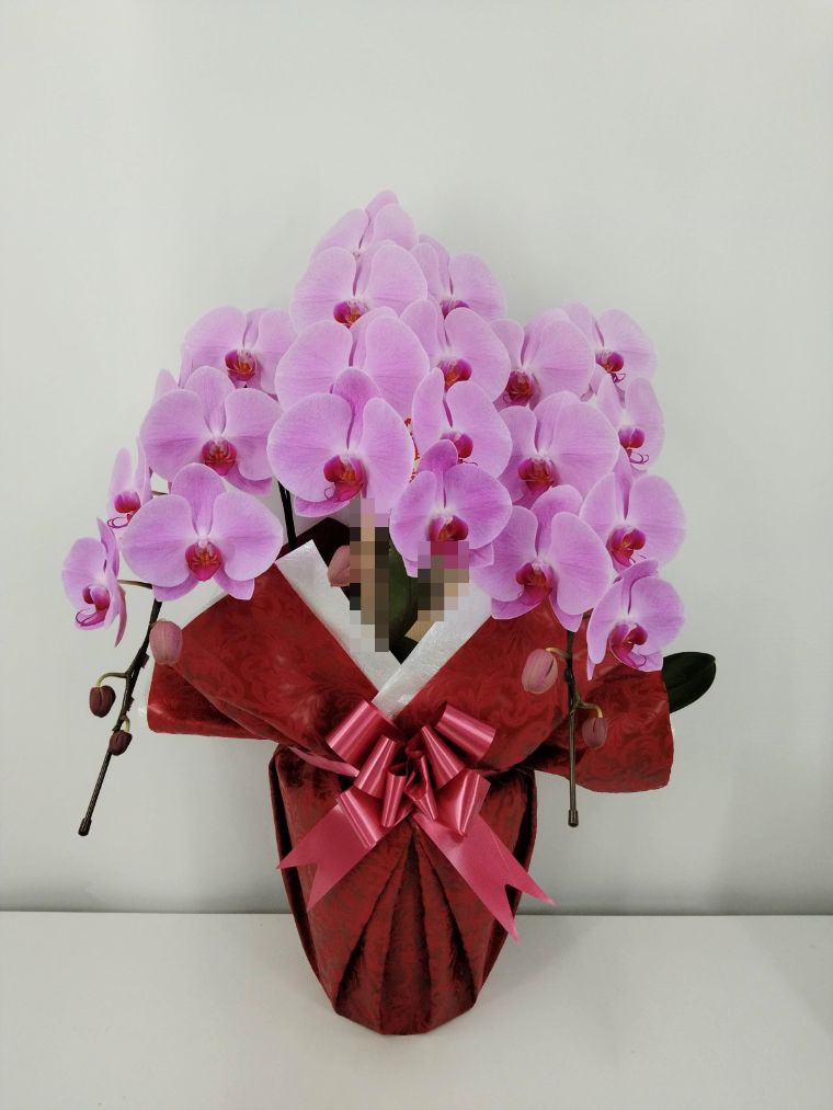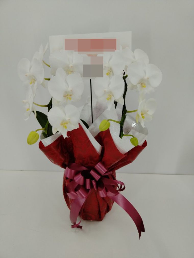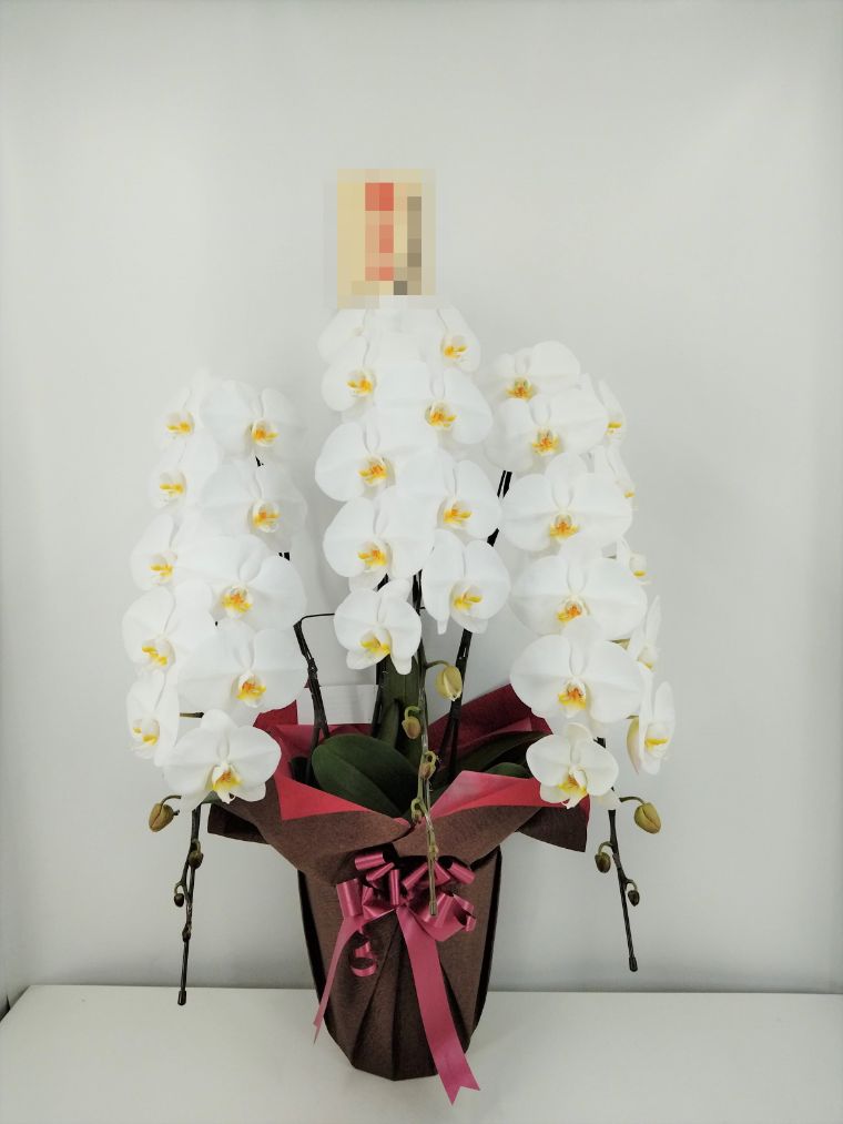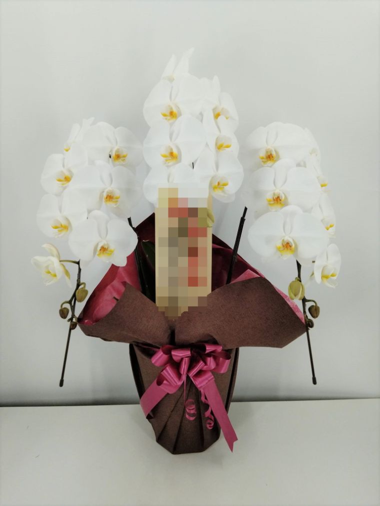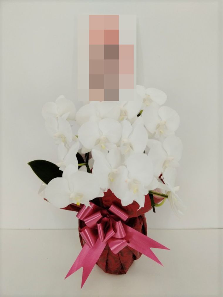 胡蝶蘭の実際にお届けした写真です。花秘書では発送前に写真をメールで送信致しますので安心して大切な顧客や取引様へのギフトにご利用頂けます。