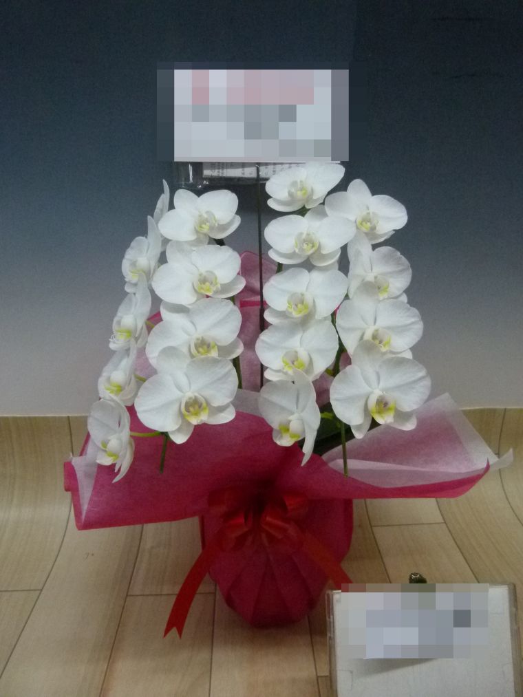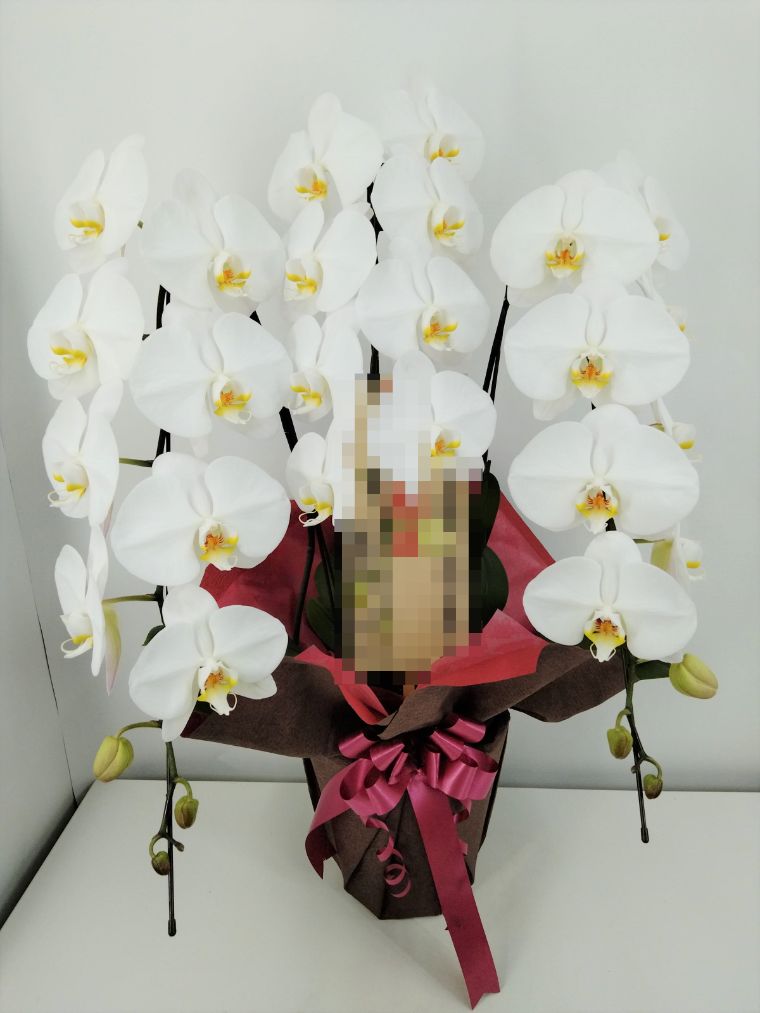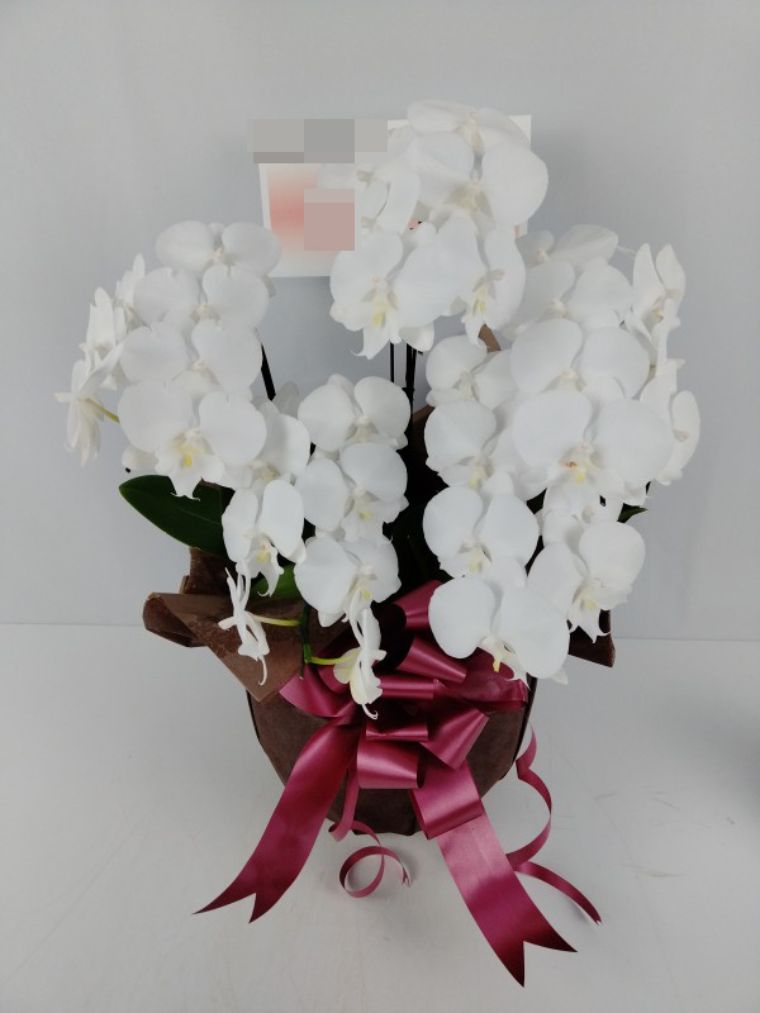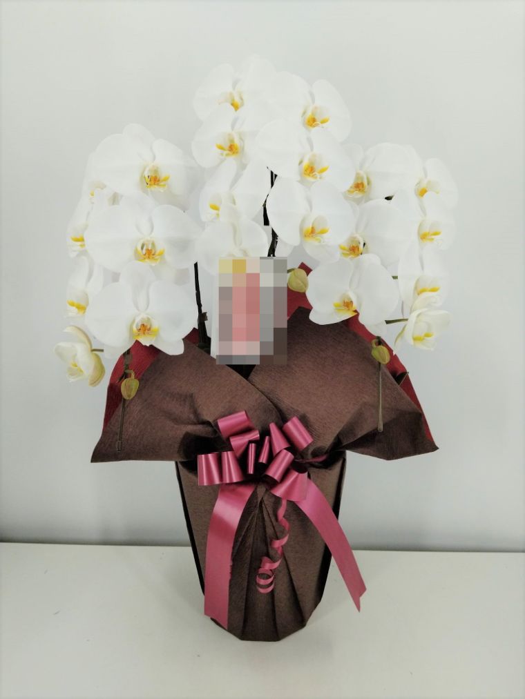 胡蝶蘭の実際にお届けした写真です。花秘書では発送前に写真をメールで送信致しますので安心して大切な顧客や取引様へのギフトにご利用頂けます。