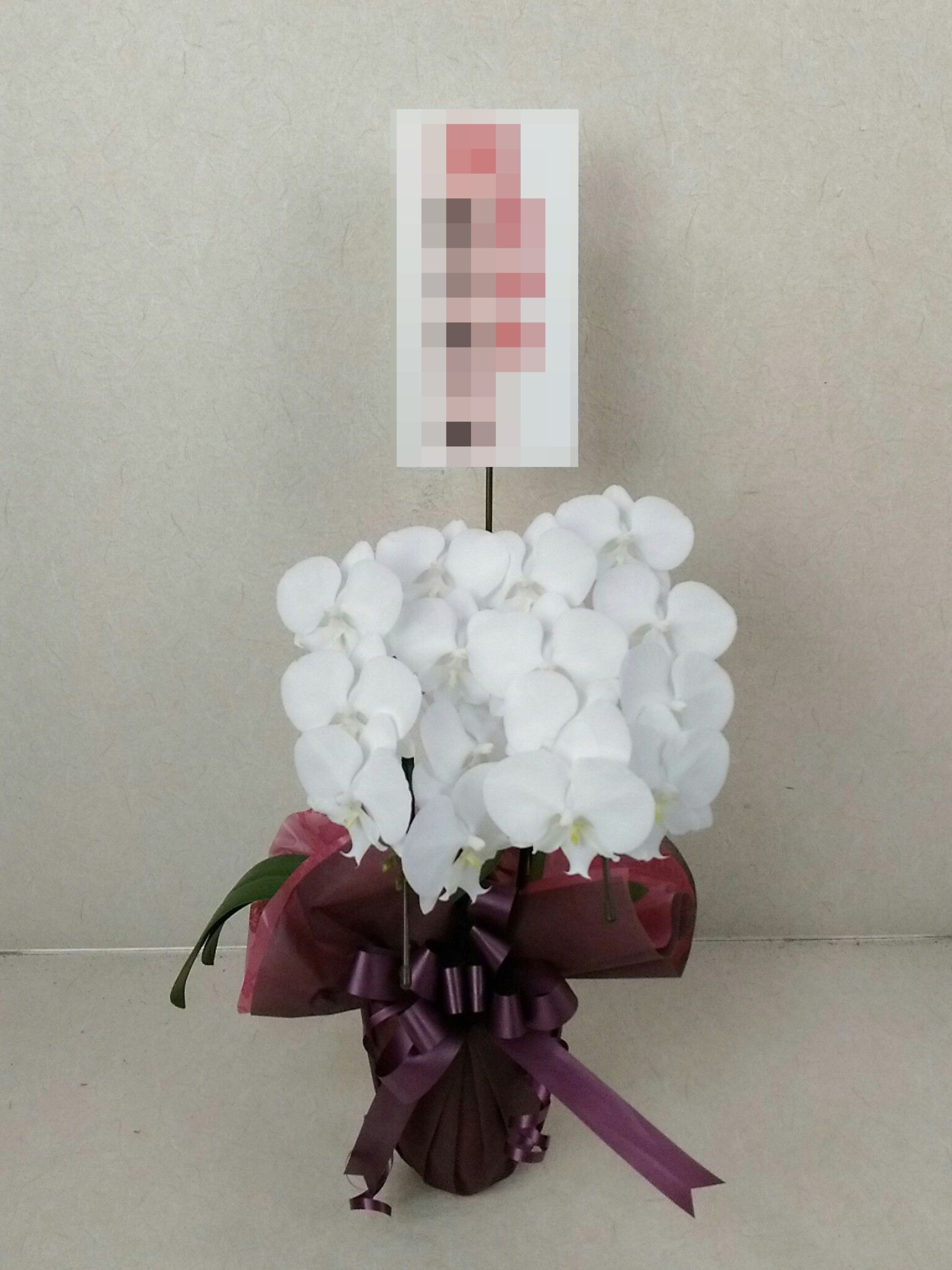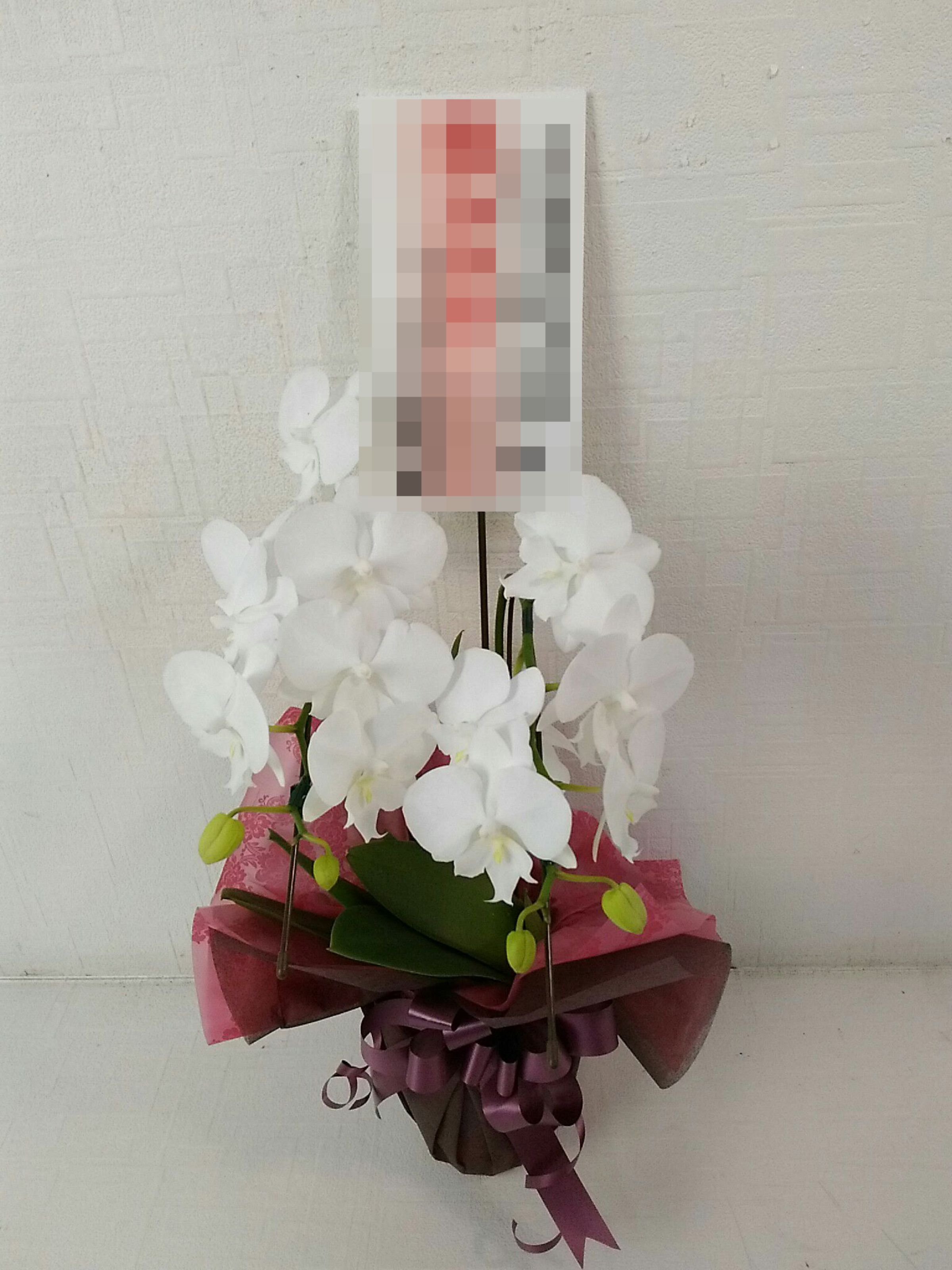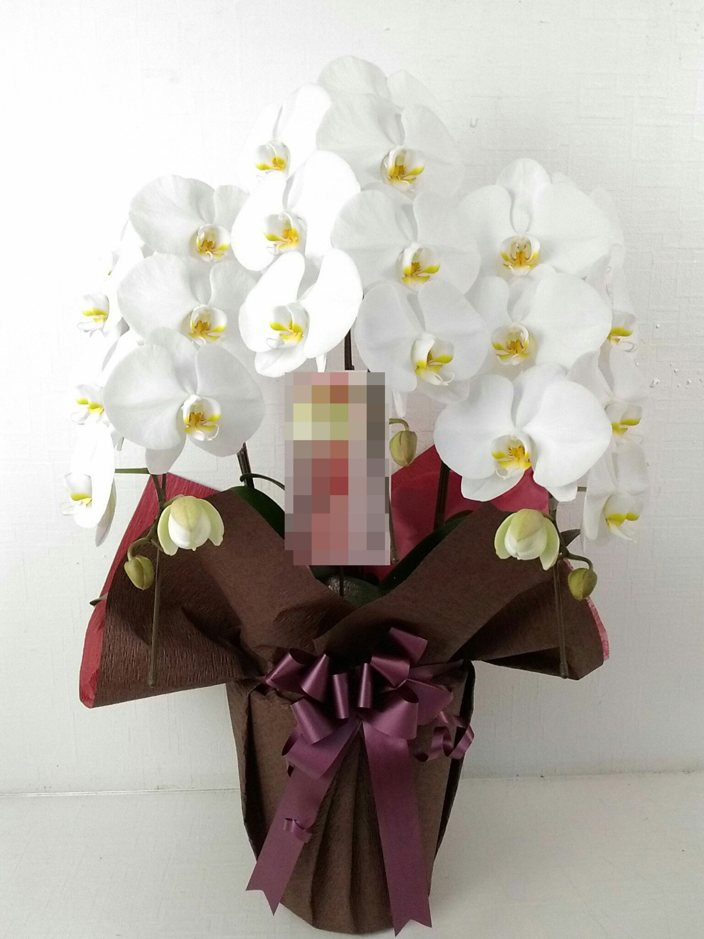 胡蝶蘭の実際にお届けした写真です。花秘書では発送前に写真をメールで送信致しますので安心して大切な顧客や取引様へのギフトにご利用頂けます。