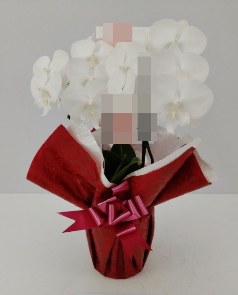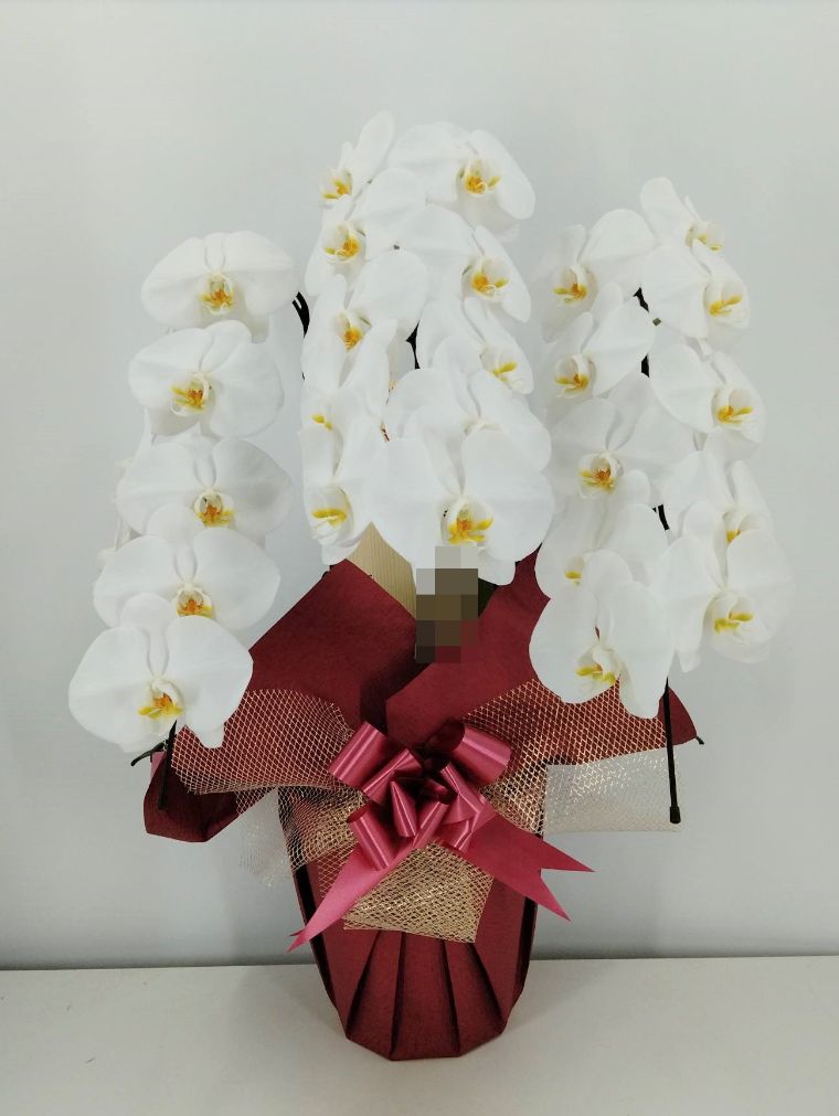 胡蝶蘭の実際にお届けした写真です。花秘書では発送前に写真をメールで送信致しますので安心して大切な顧客や取引様へのギフトにご利用頂けます。