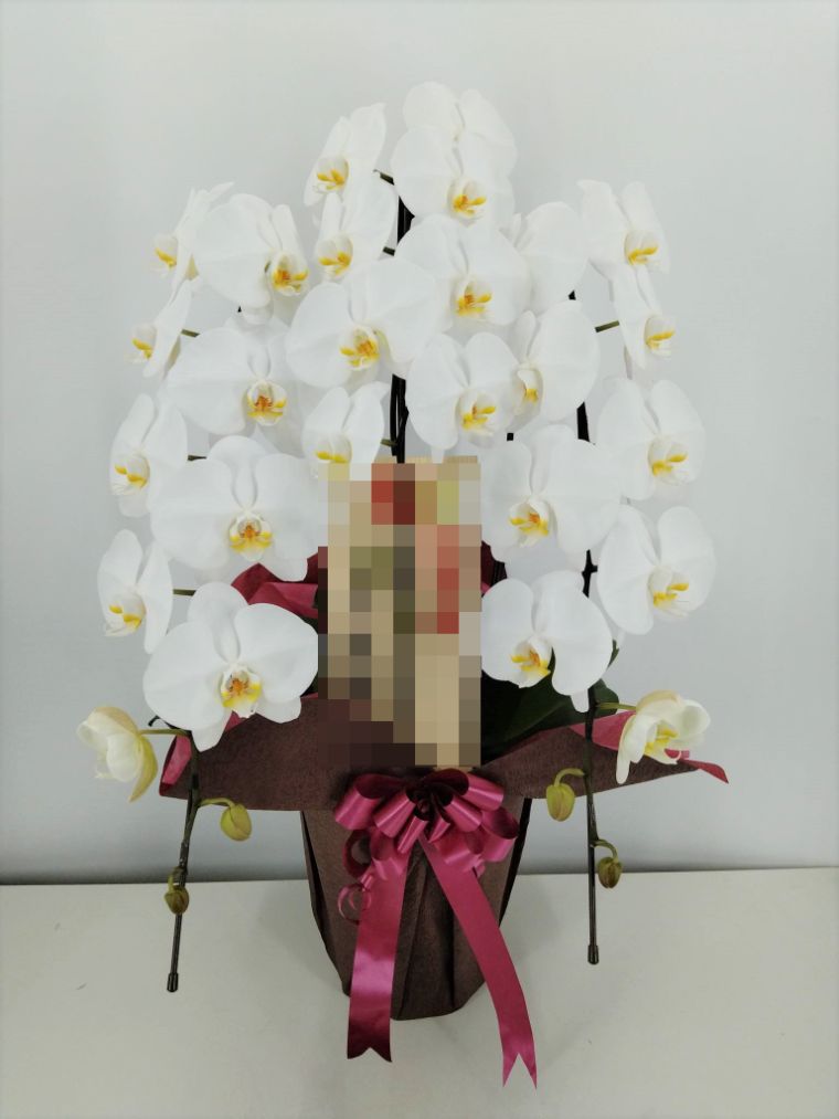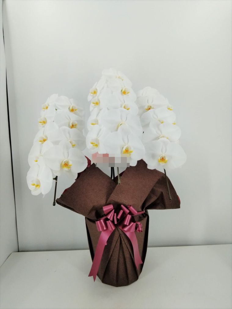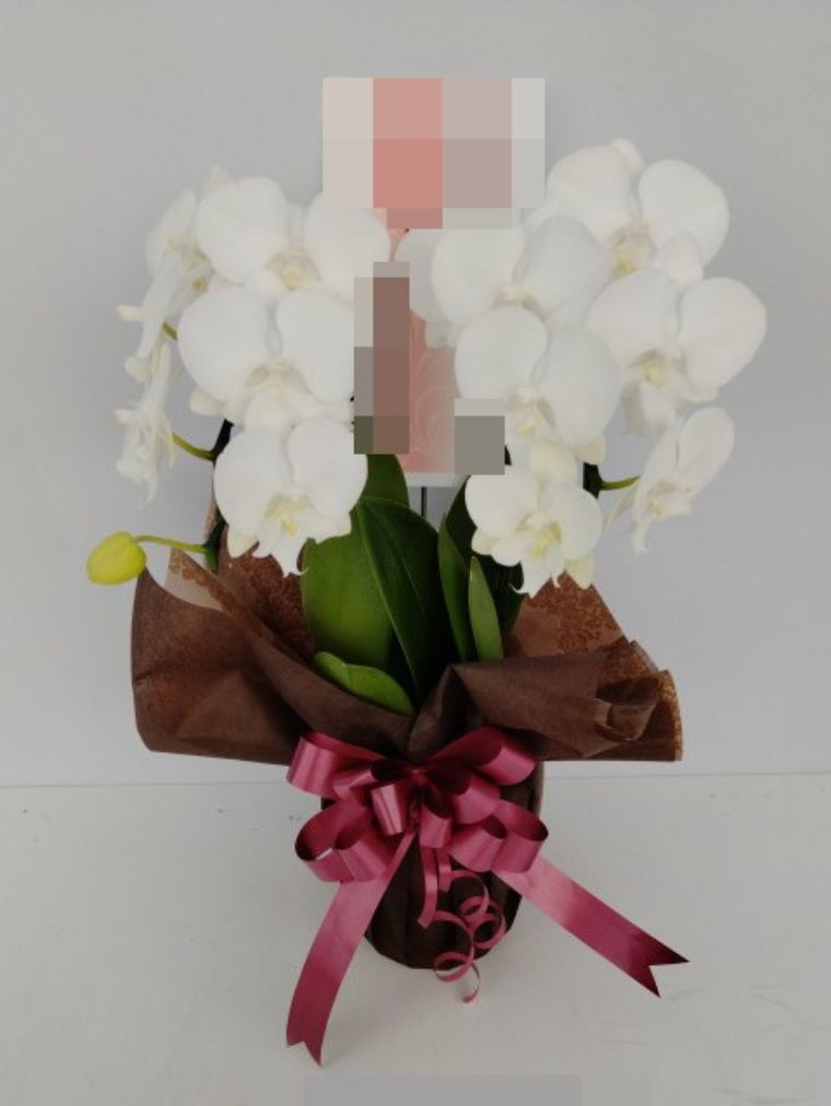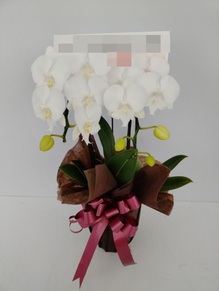 胡蝶蘭の実際にお届けした写真です。花秘書では発送前に写真をメールで送信致しますので安心して大切な顧客や取引様へのギフトにご利用頂けます。