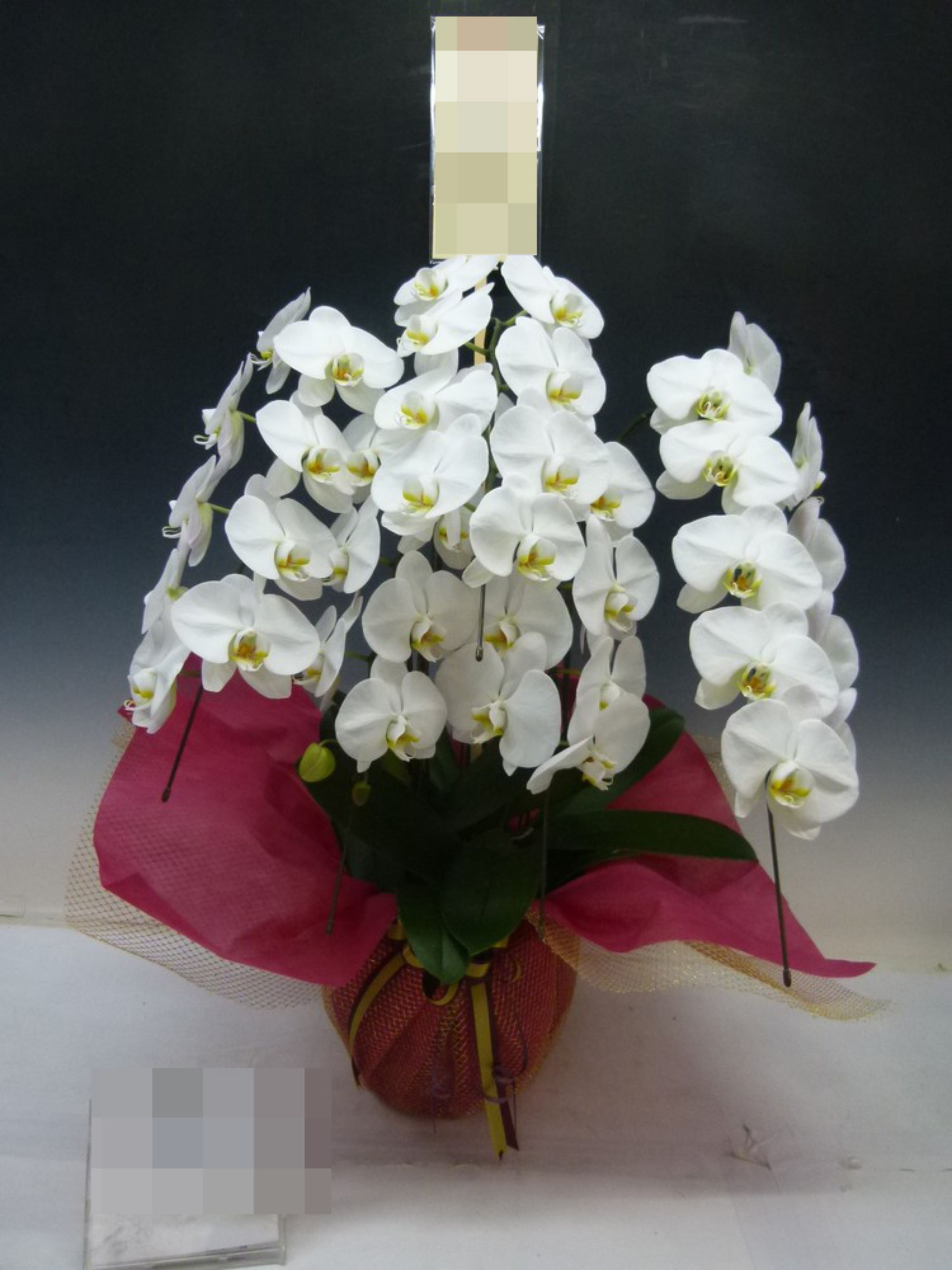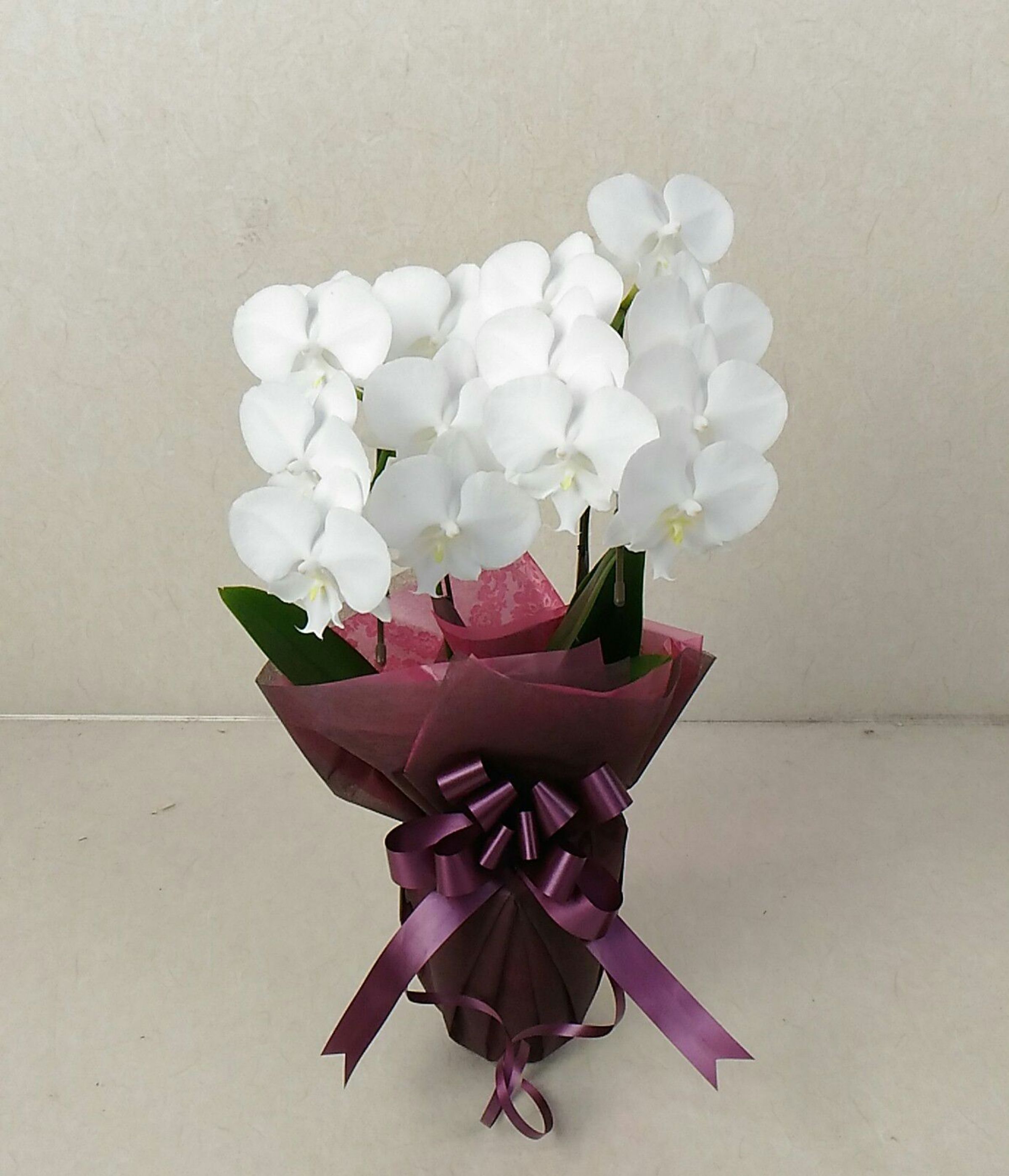 胡蝶蘭の実際にお届けした写真です。花秘書では発送前に写真をメールで送信致しますので安心して大切な顧客や取引様へのギフトにご利用頂けます。