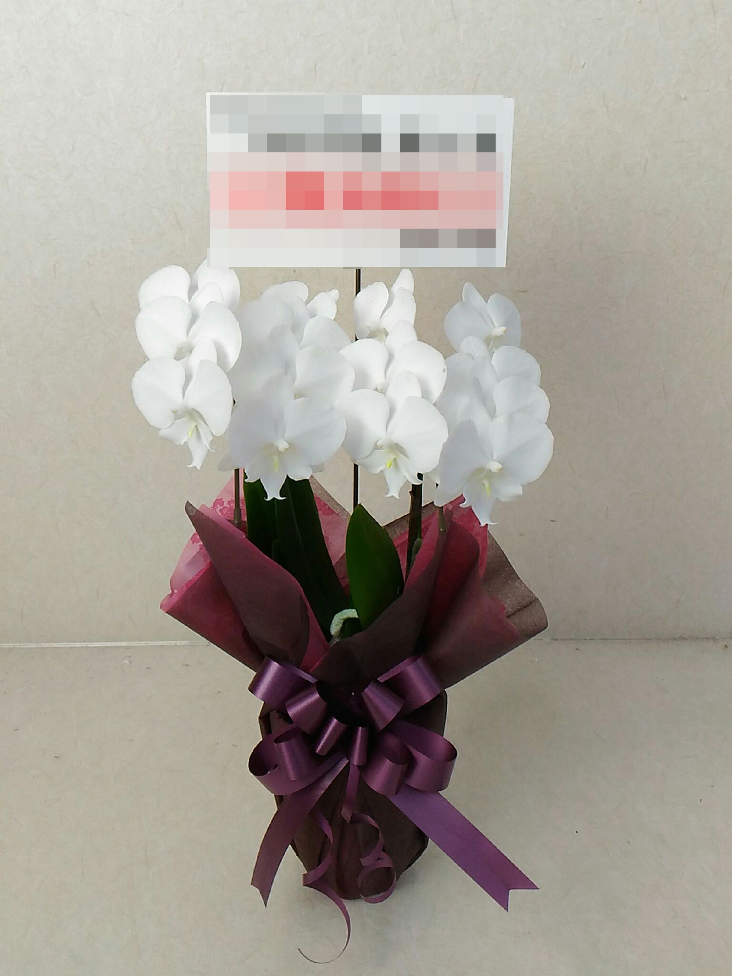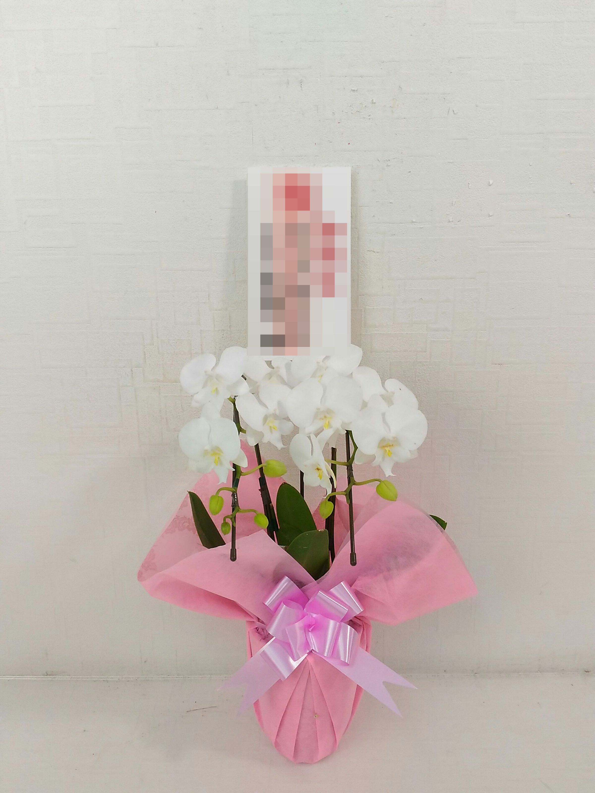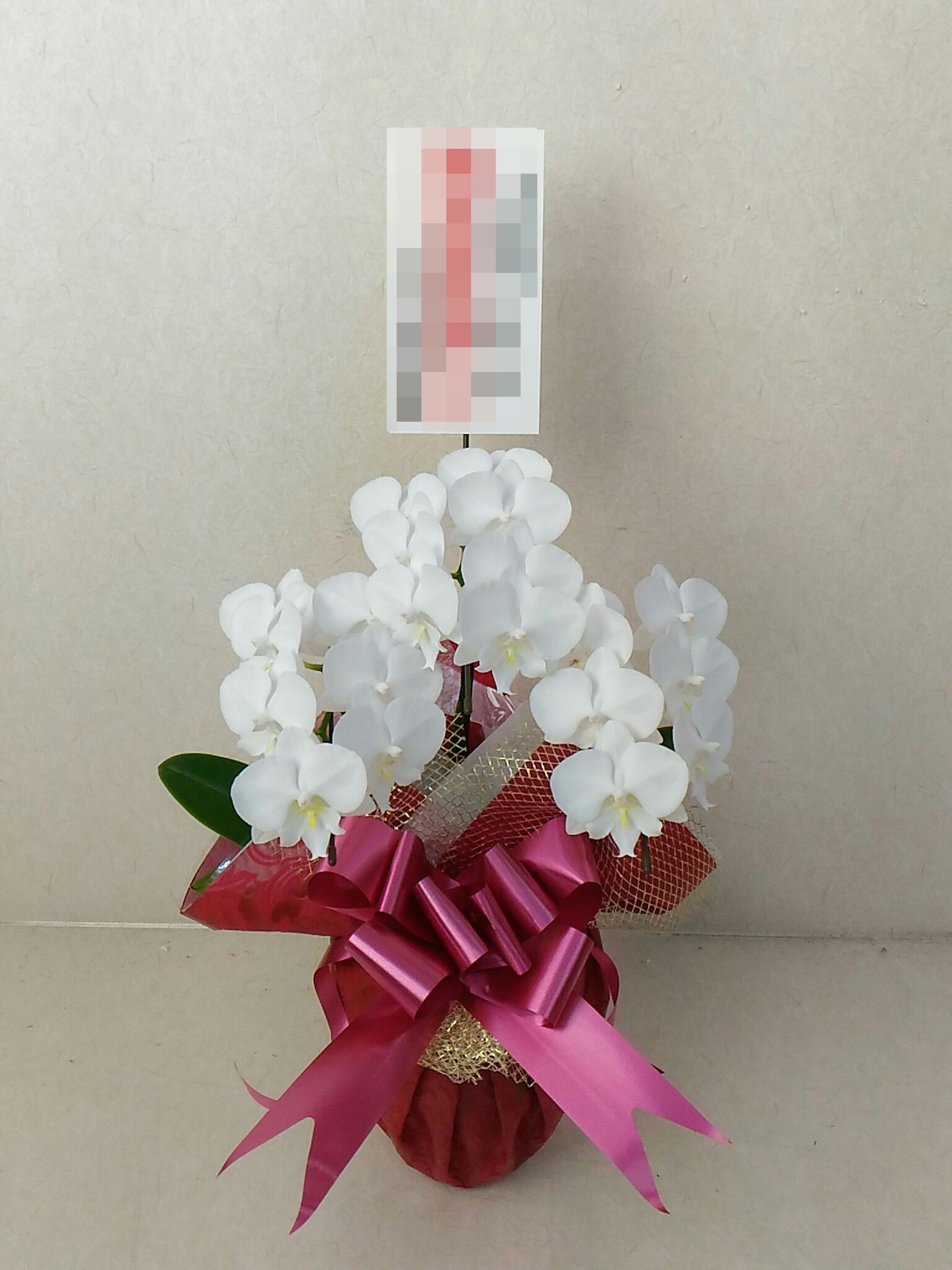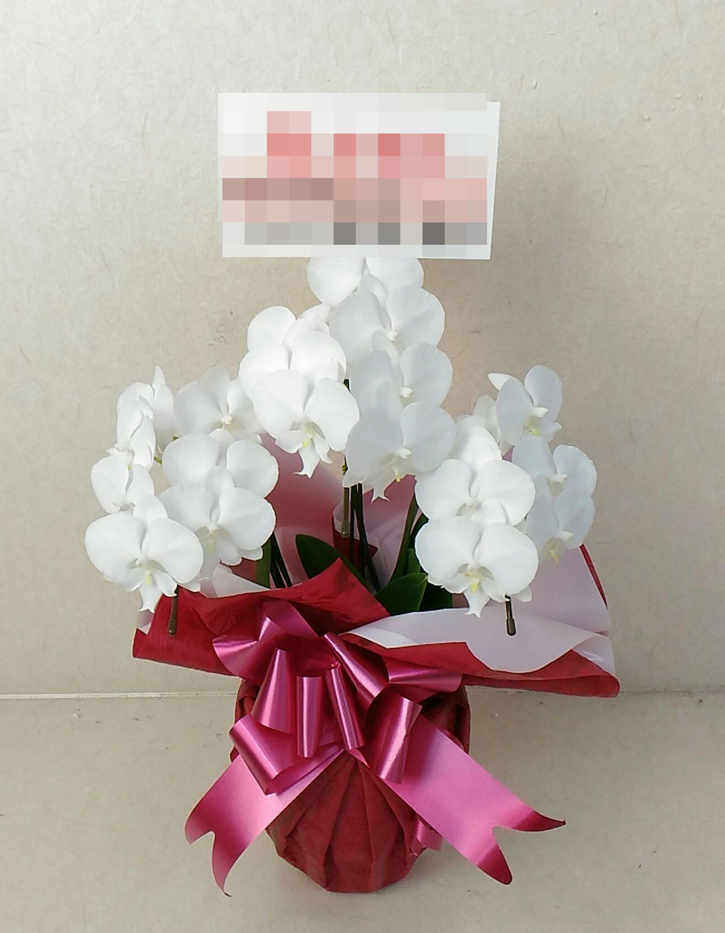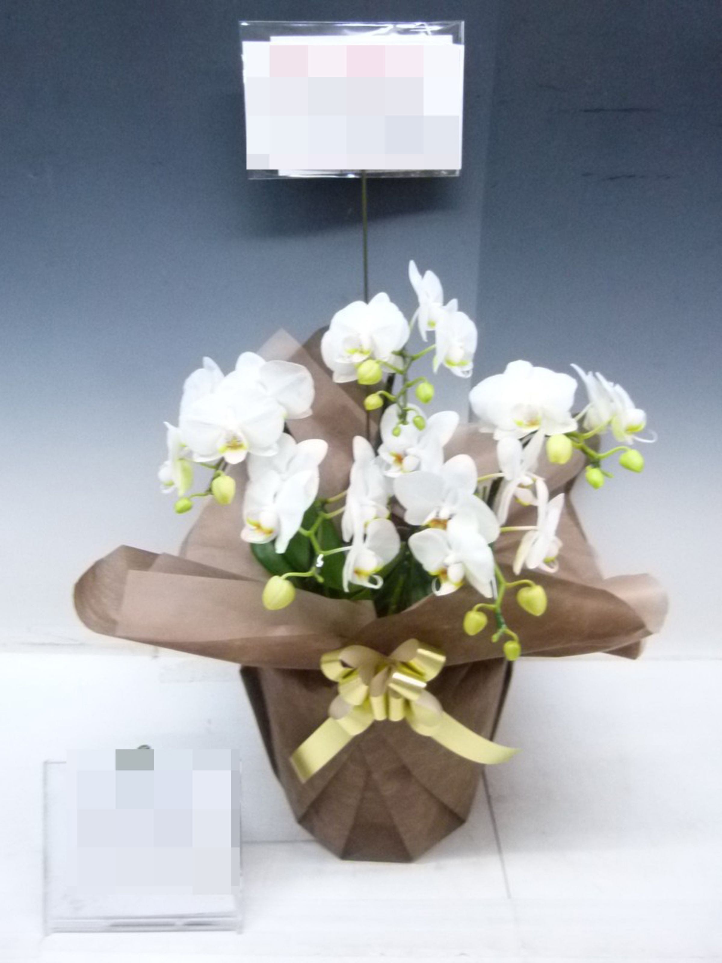 胡蝶蘭の実際にお届けした写真です。花秘書では発送前に写真をメールで送信致しますので安心して大切な顧客や取引様へのギフトにご利用頂けます。