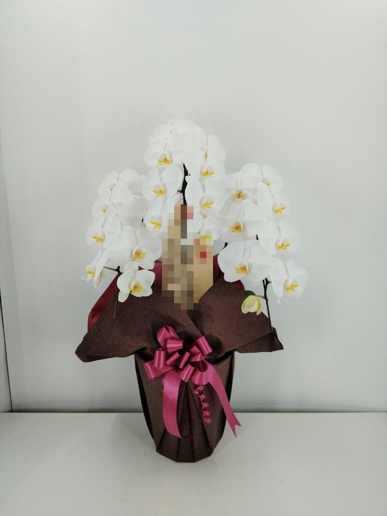 胡蝶蘭の実際にお届けした写真です。花秘書では発送前に写真をメールで送信致しますので安心して大切な顧客や取引様へのギフトにご利用頂けます。