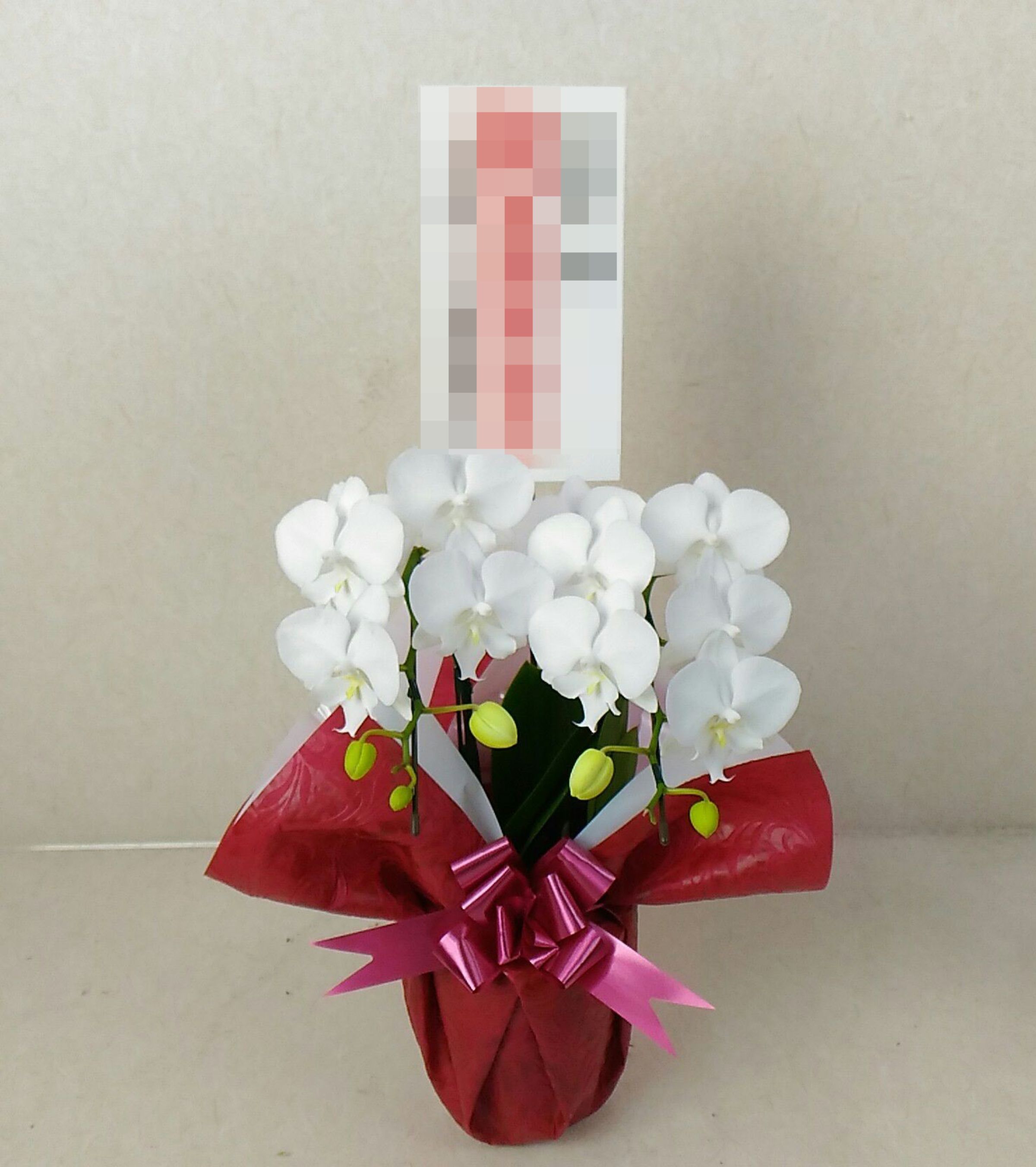 胡蝶蘭の実際にお届けした写真です。花秘書では発送前に写真をメールで送信致しますので安心して大切な顧客や取引様へのギフトにご利用頂けます。