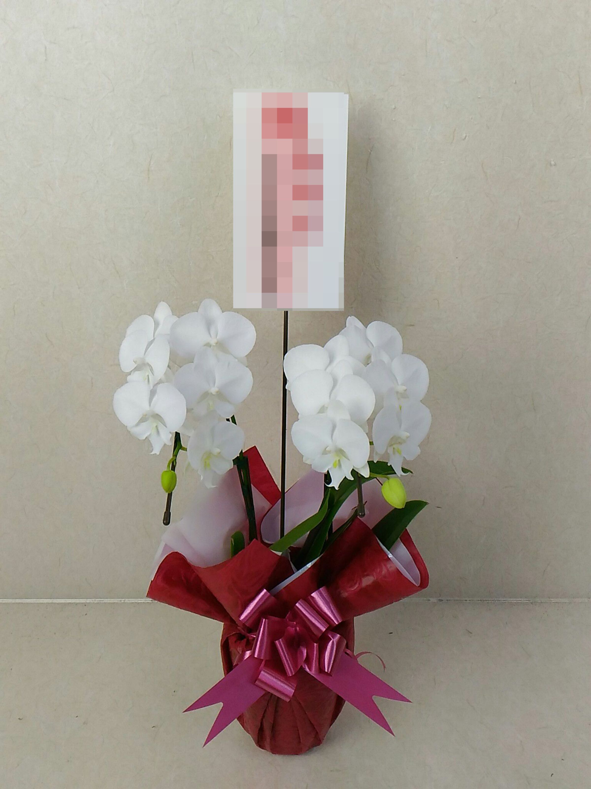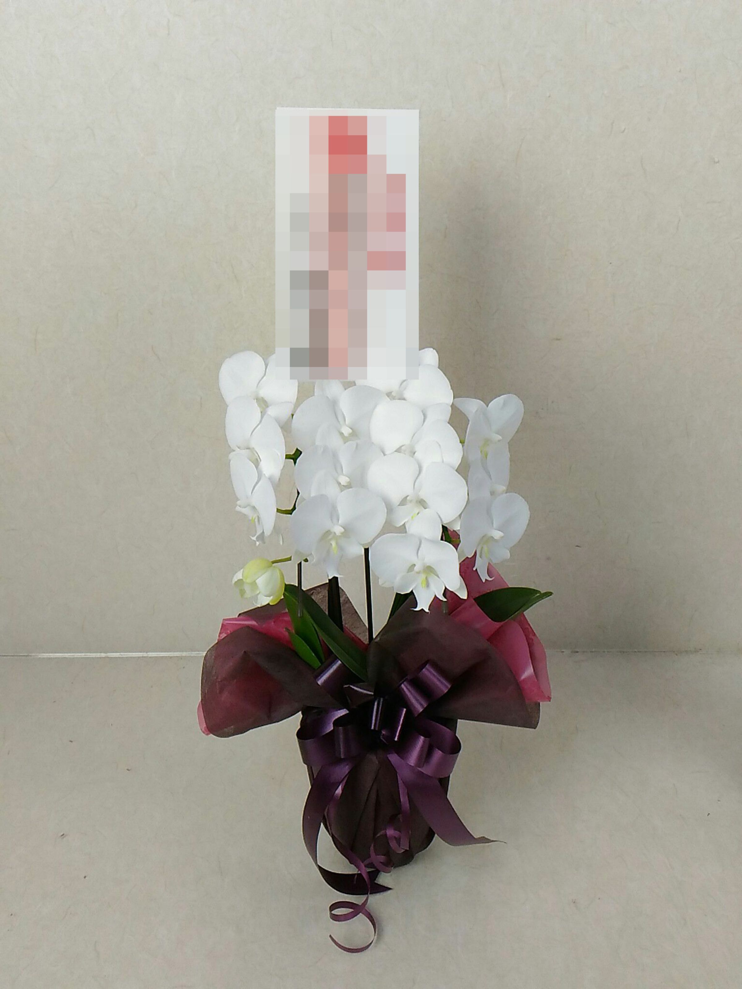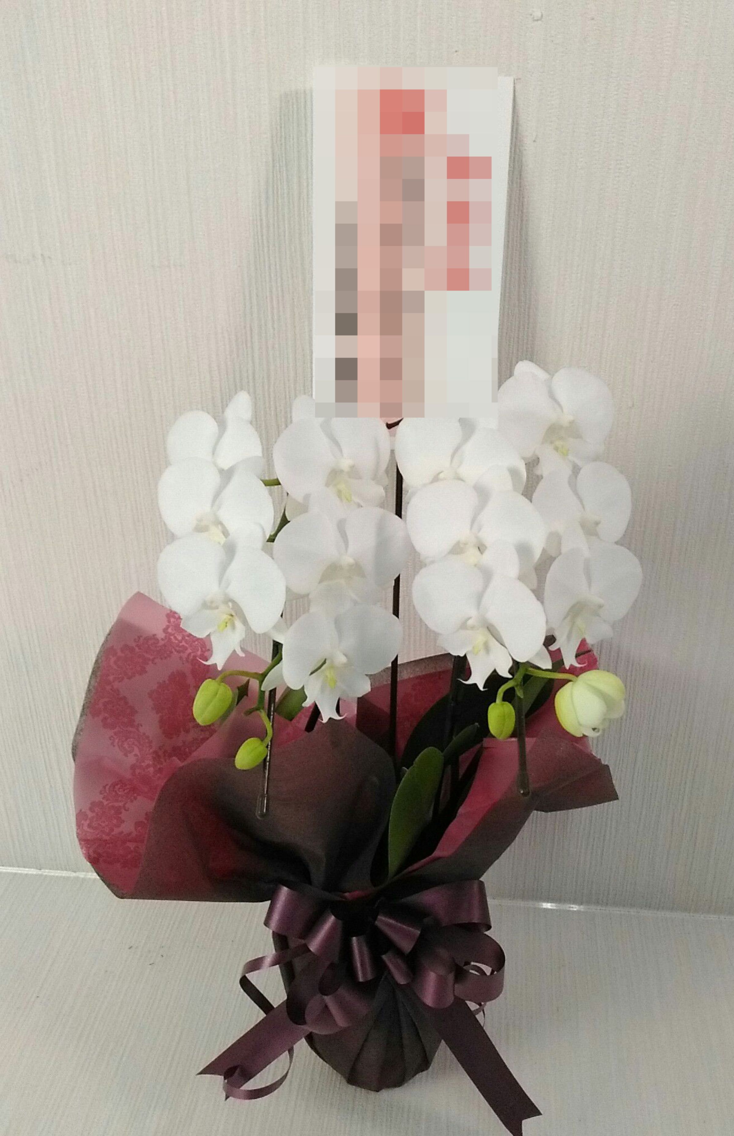 胡蝶蘭の実際にお届けした写真です。花秘書では発送前に写真をメールで送信致しますので安心して大切な顧客や取引様へのギフトにご利用頂けます。