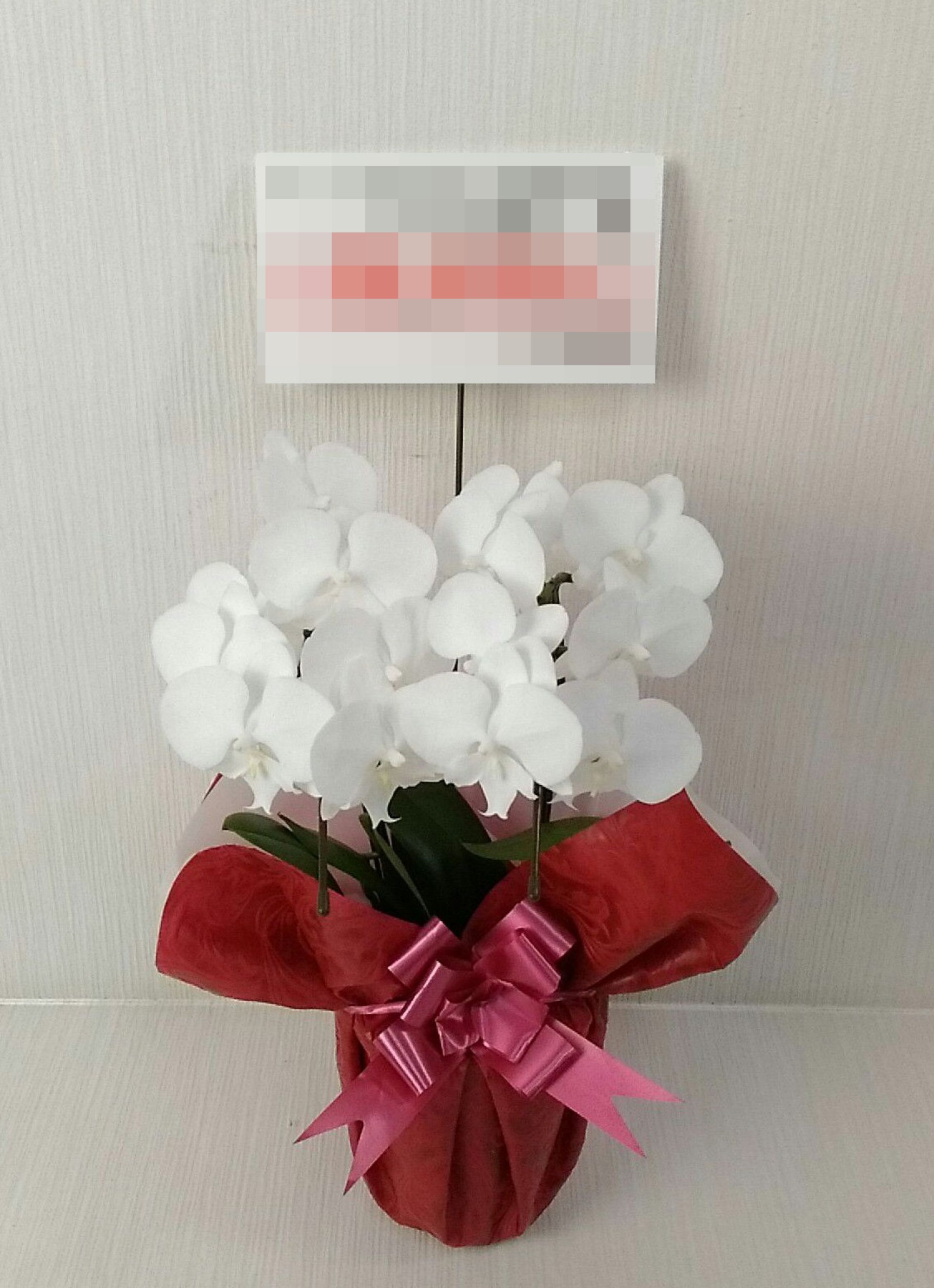 胡蝶蘭の実際にお届けした写真です。花秘書では発送前に写真をメールで送信致しますので安心して大切な顧客や取引様へのギフトにご利用頂けます。